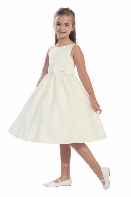 Knee-Length Tiered Bowed Sequins&Satin Flower Girl Dress With Sash