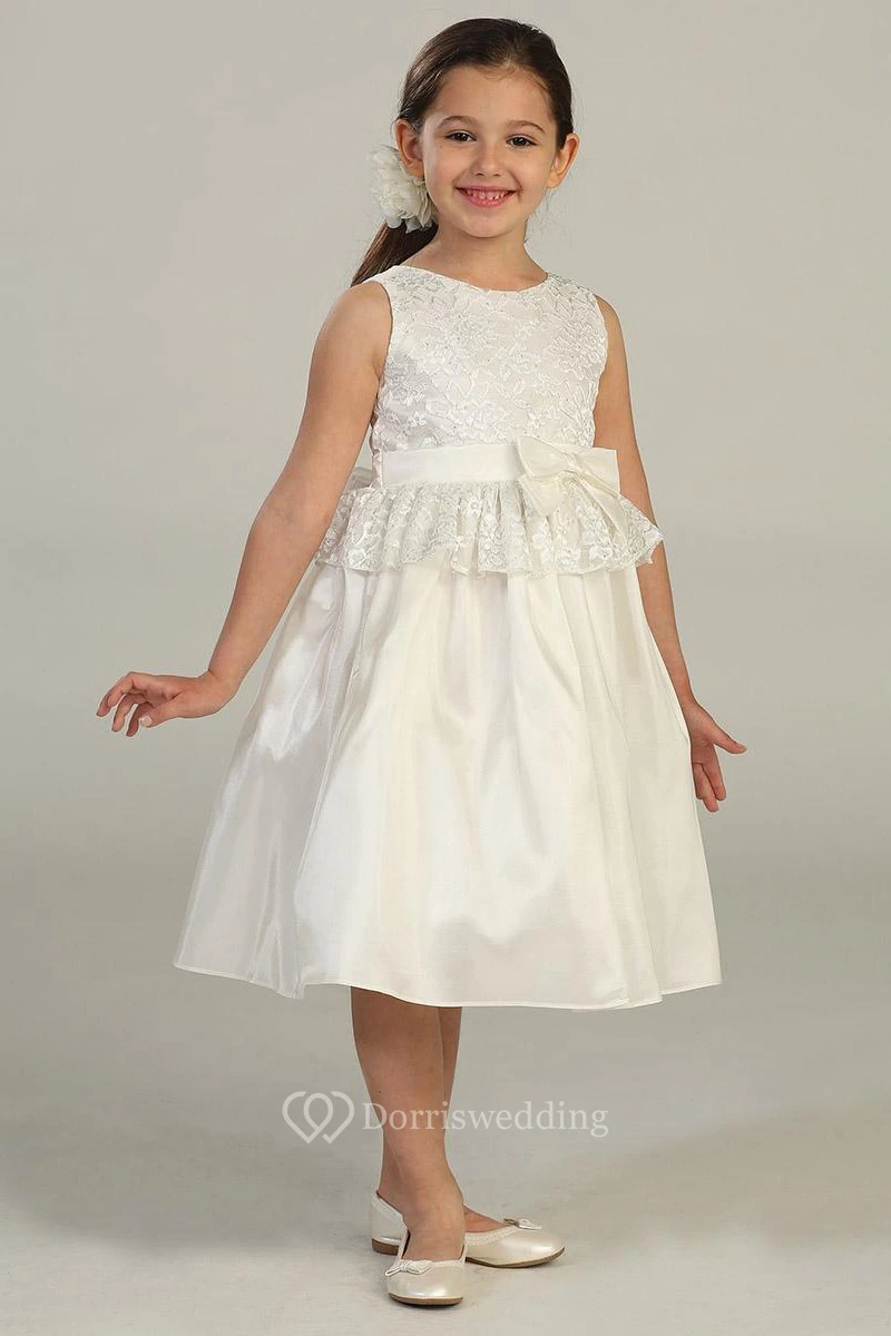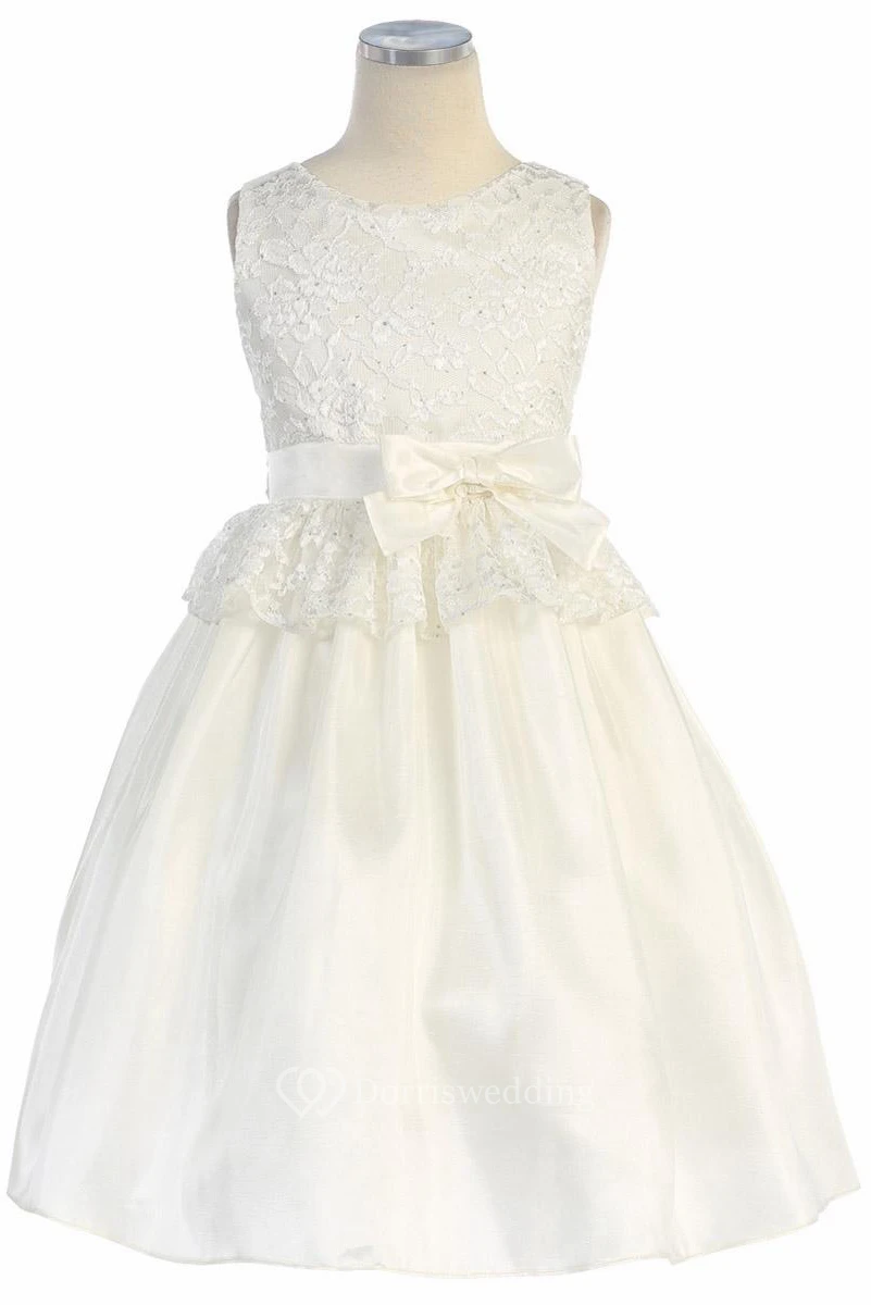 Knee-Length Tiered Lace&Taffeta Flower Girl Dress With Peplum