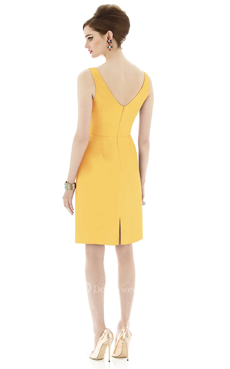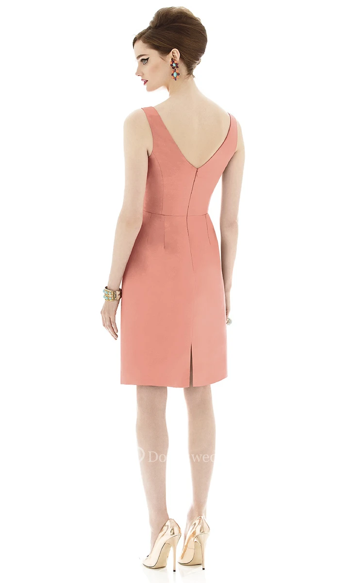 Knee-Length V-Back Satin Dress with V-Neck and Side Ruching