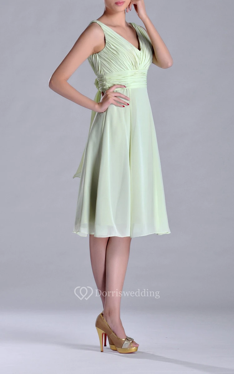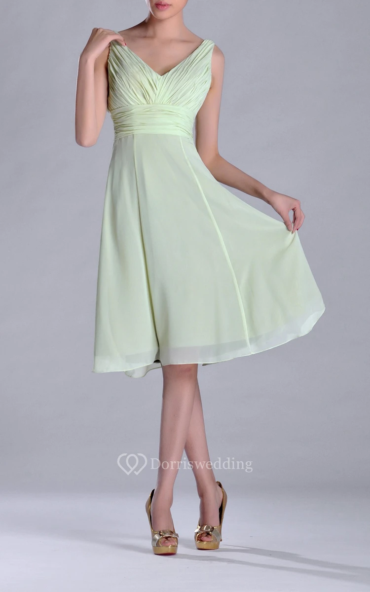 Knee-length V-Neckline Empire Chiffon Bridesmaid Dress With Deep-V Back Style