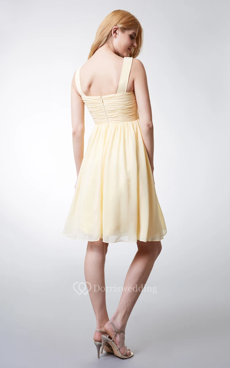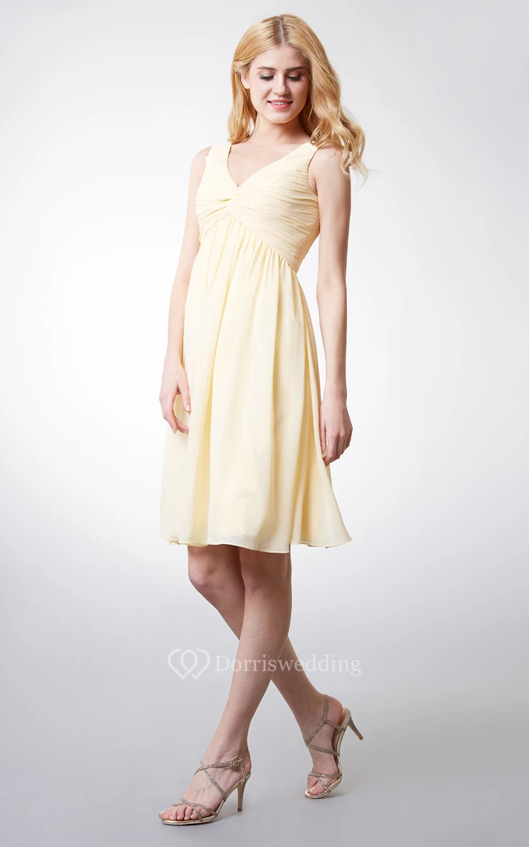 Knee-length V-Neckline Empire Ruched and Pleated Chiffon Bridesmaid Dress