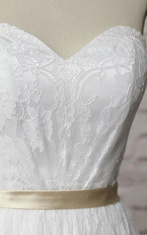 Lace A-Line Sweetheart Long Dress With Satin Waistbelt