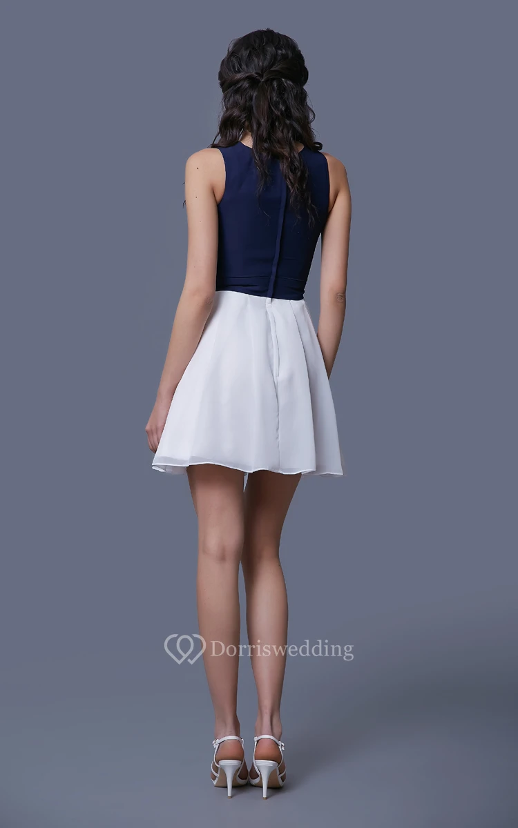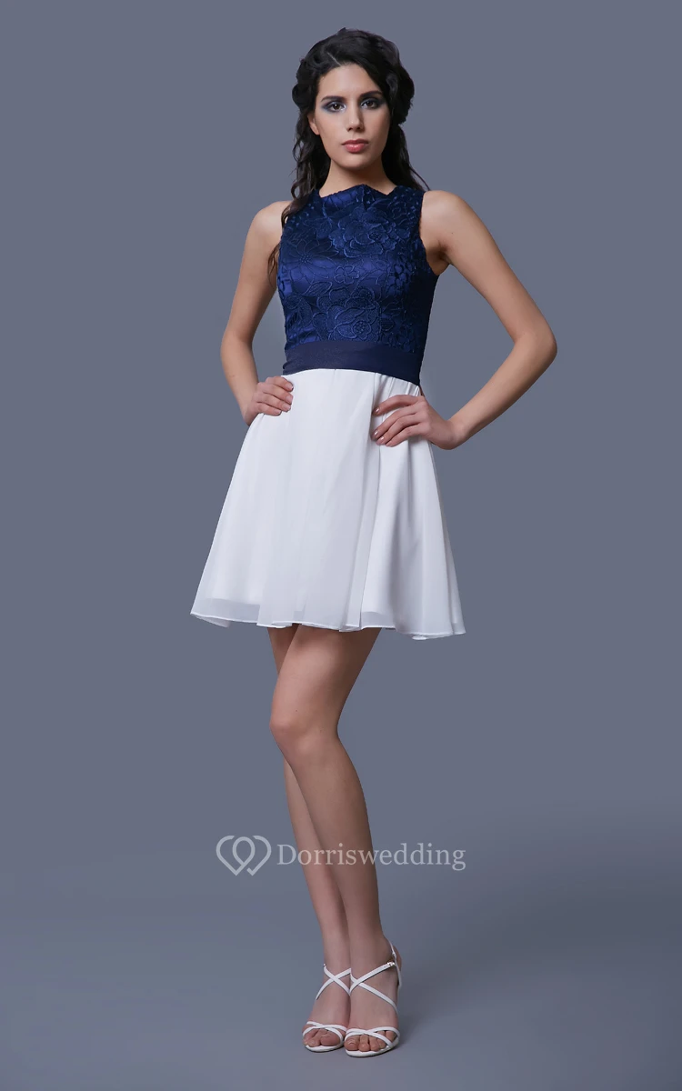 Lace and Chiffon Short A-Line Sleeveless Dress