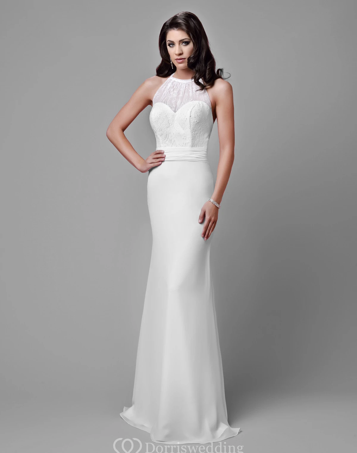 Lace And Chiffon Sleeveless Wedding Dress With Halter And Open Back