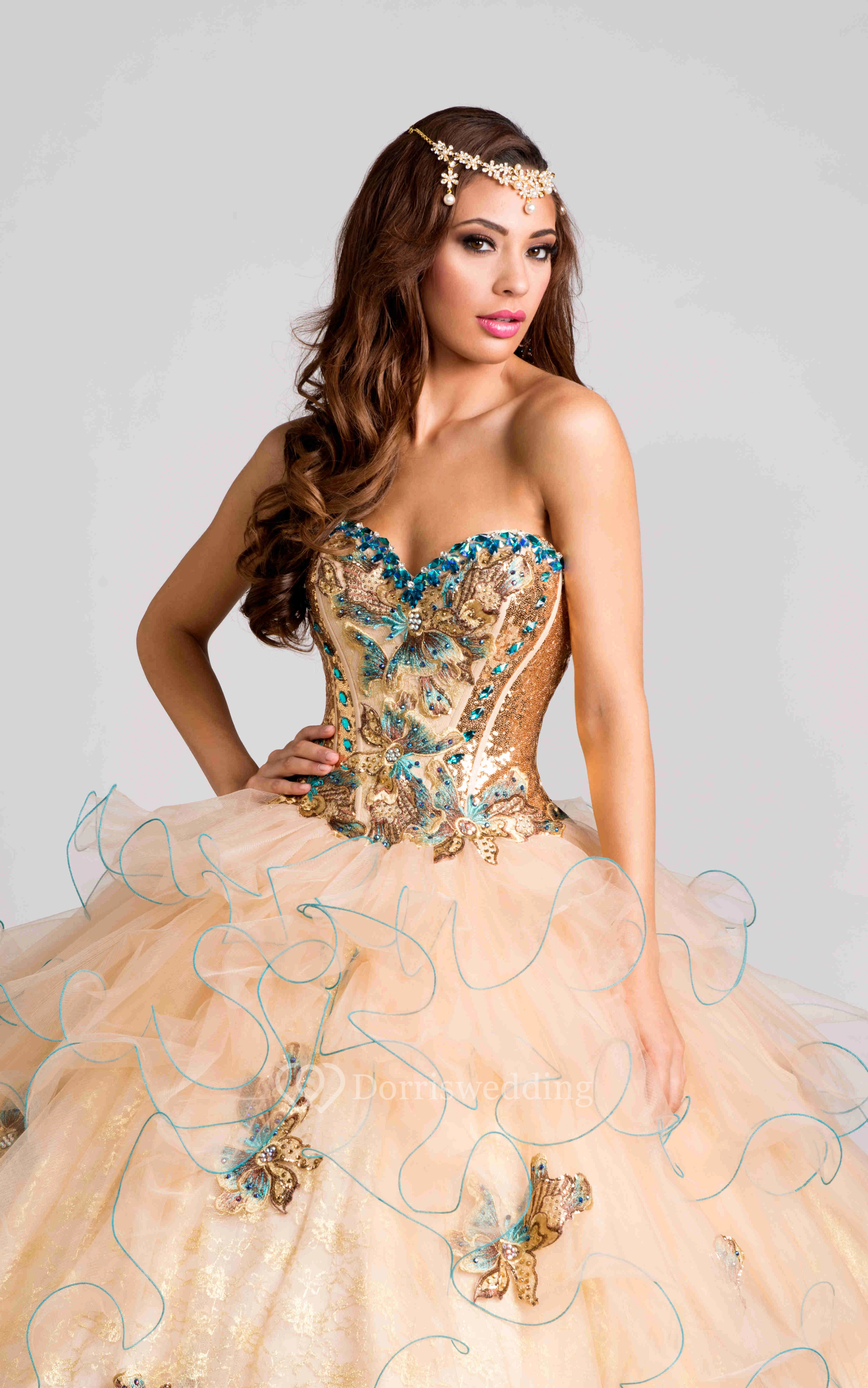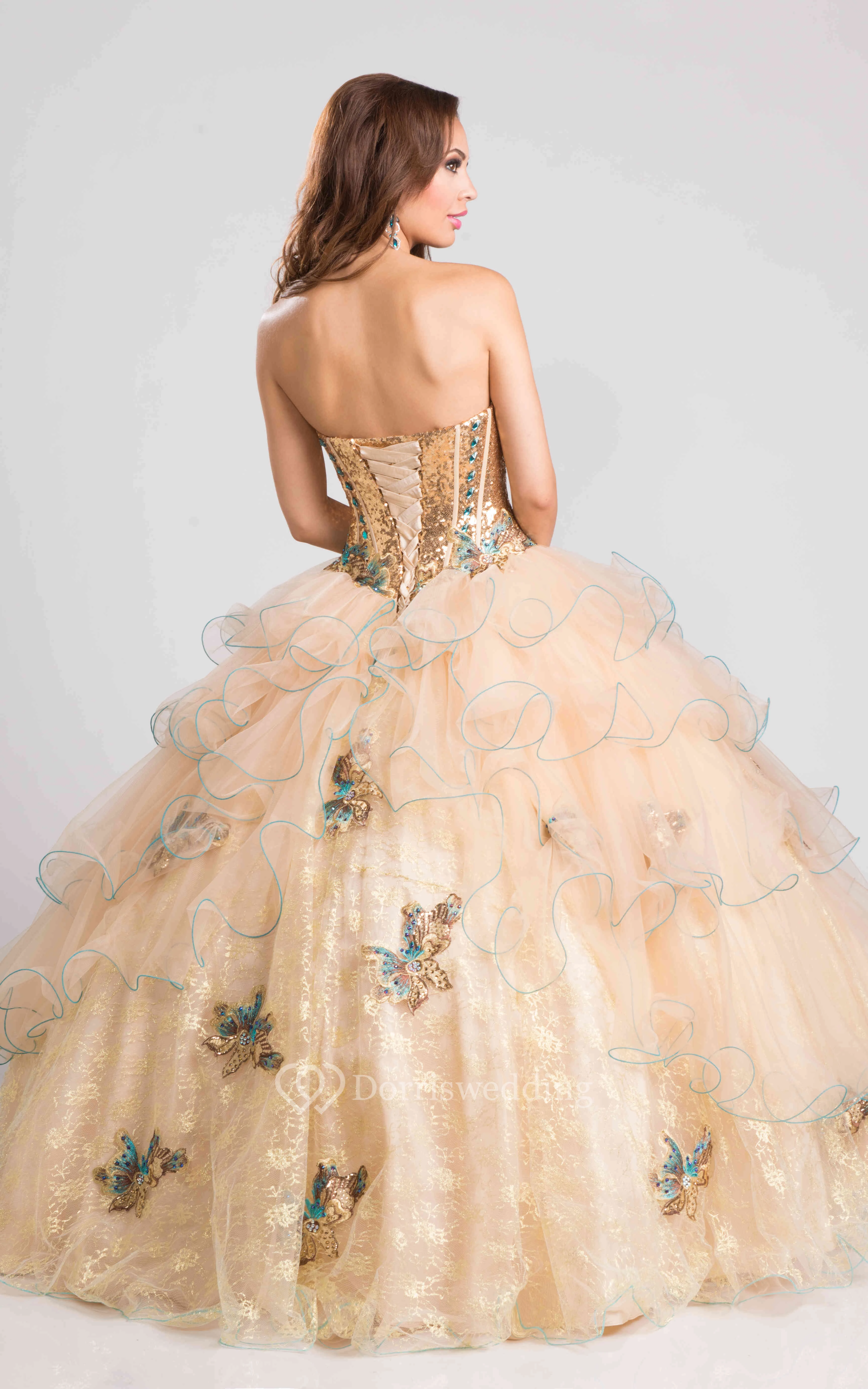 Lace And Organza Ball Gown With Ruffles And Beaded Flowers