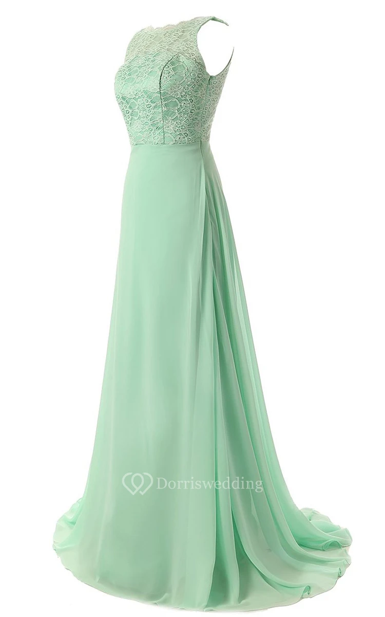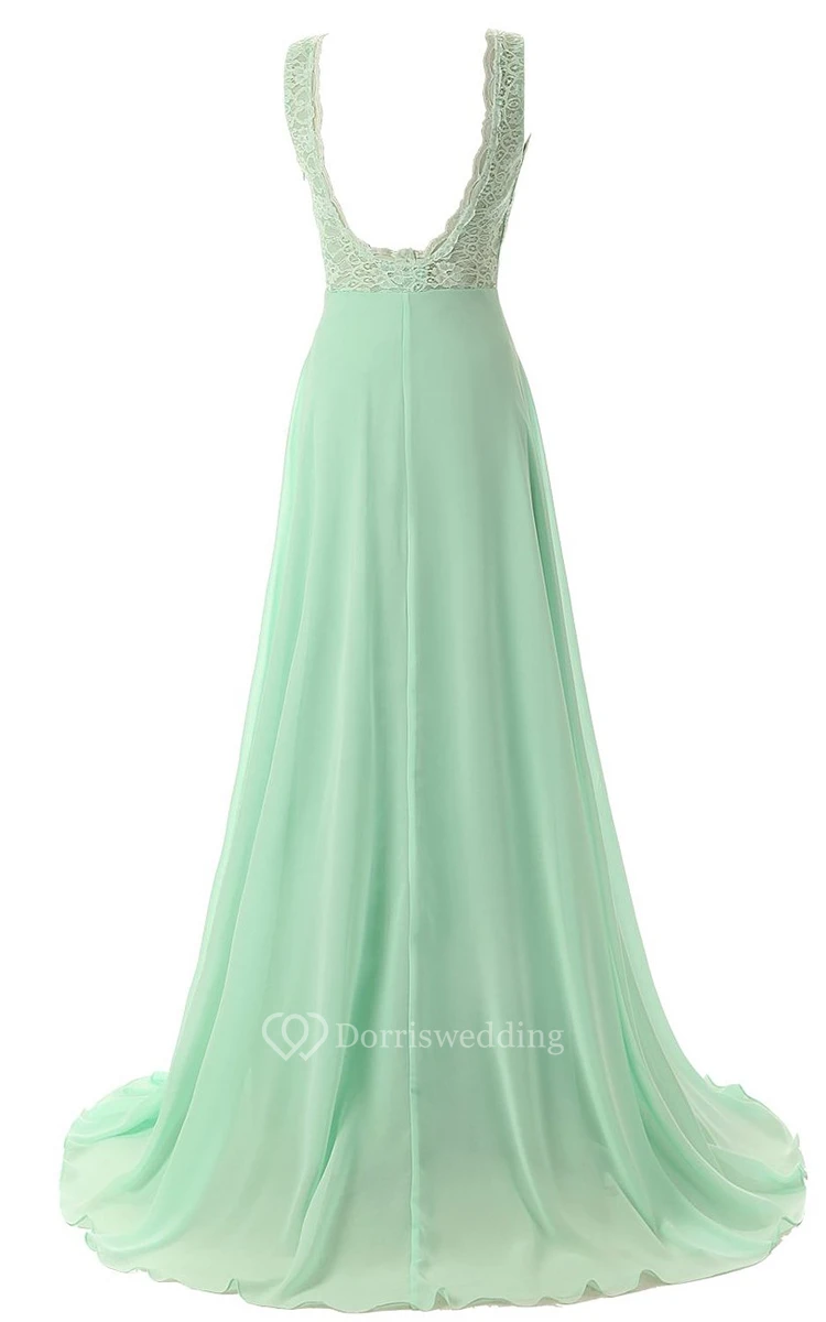Lace Appliqued Bodice A-line Gown With Deep-v Back