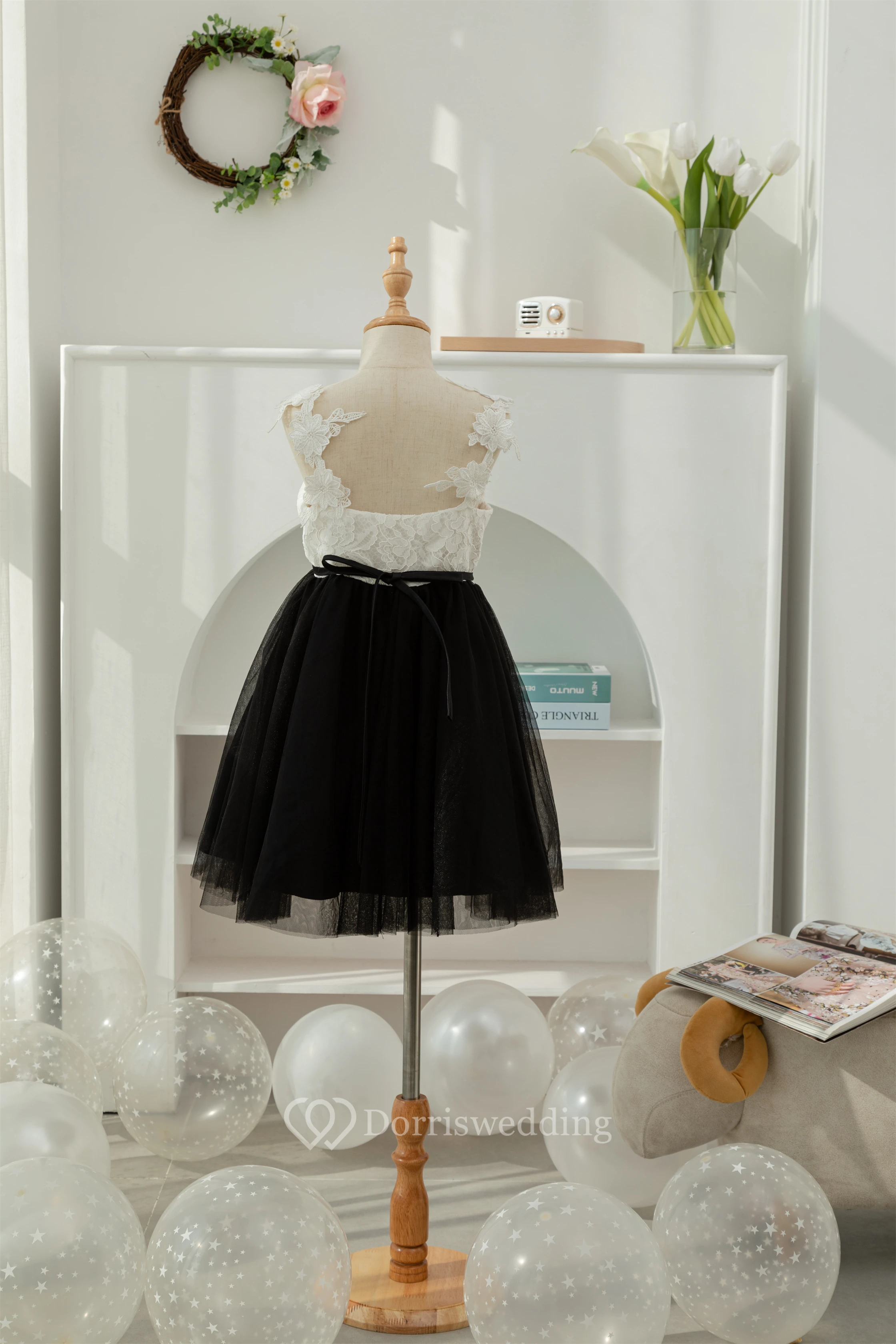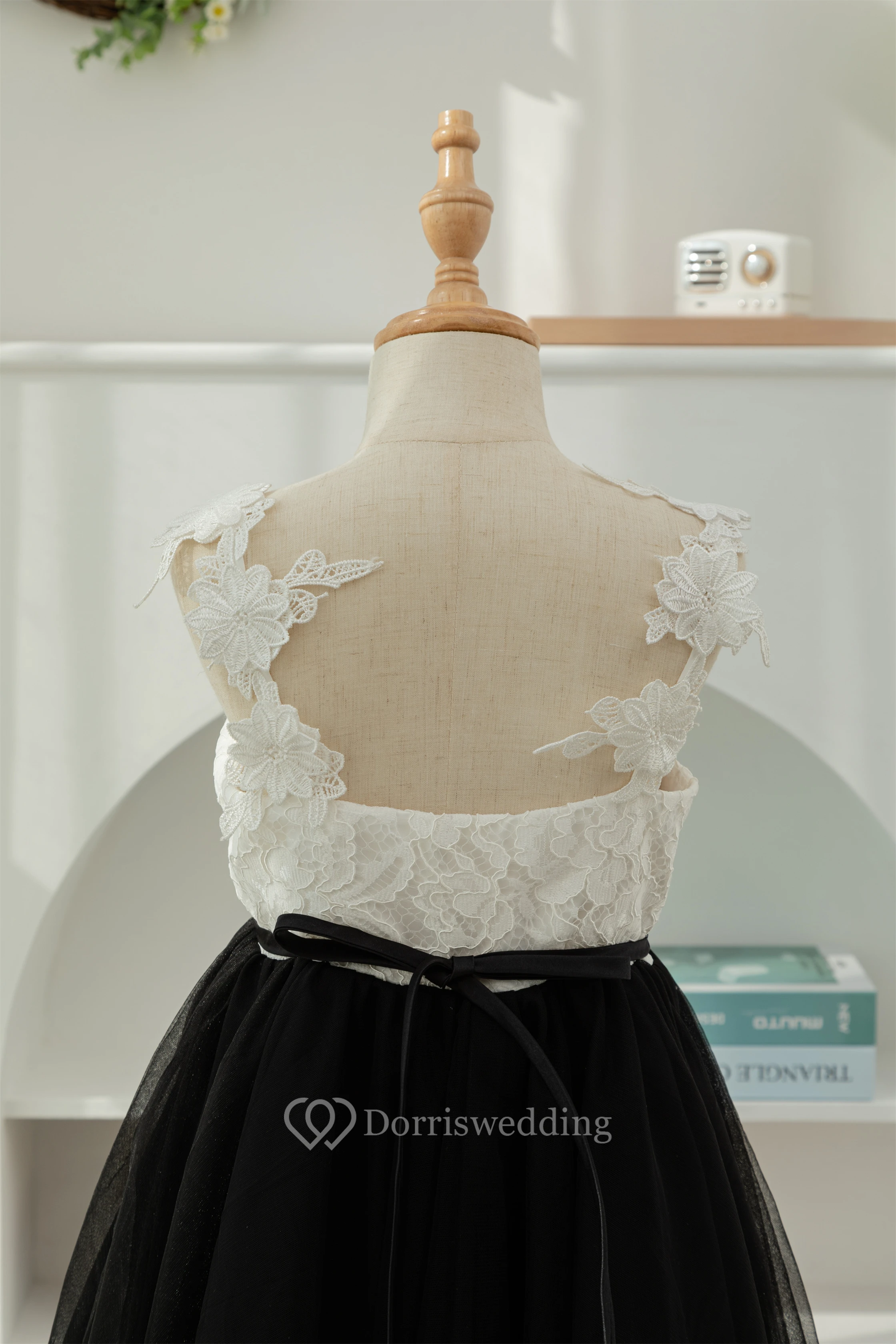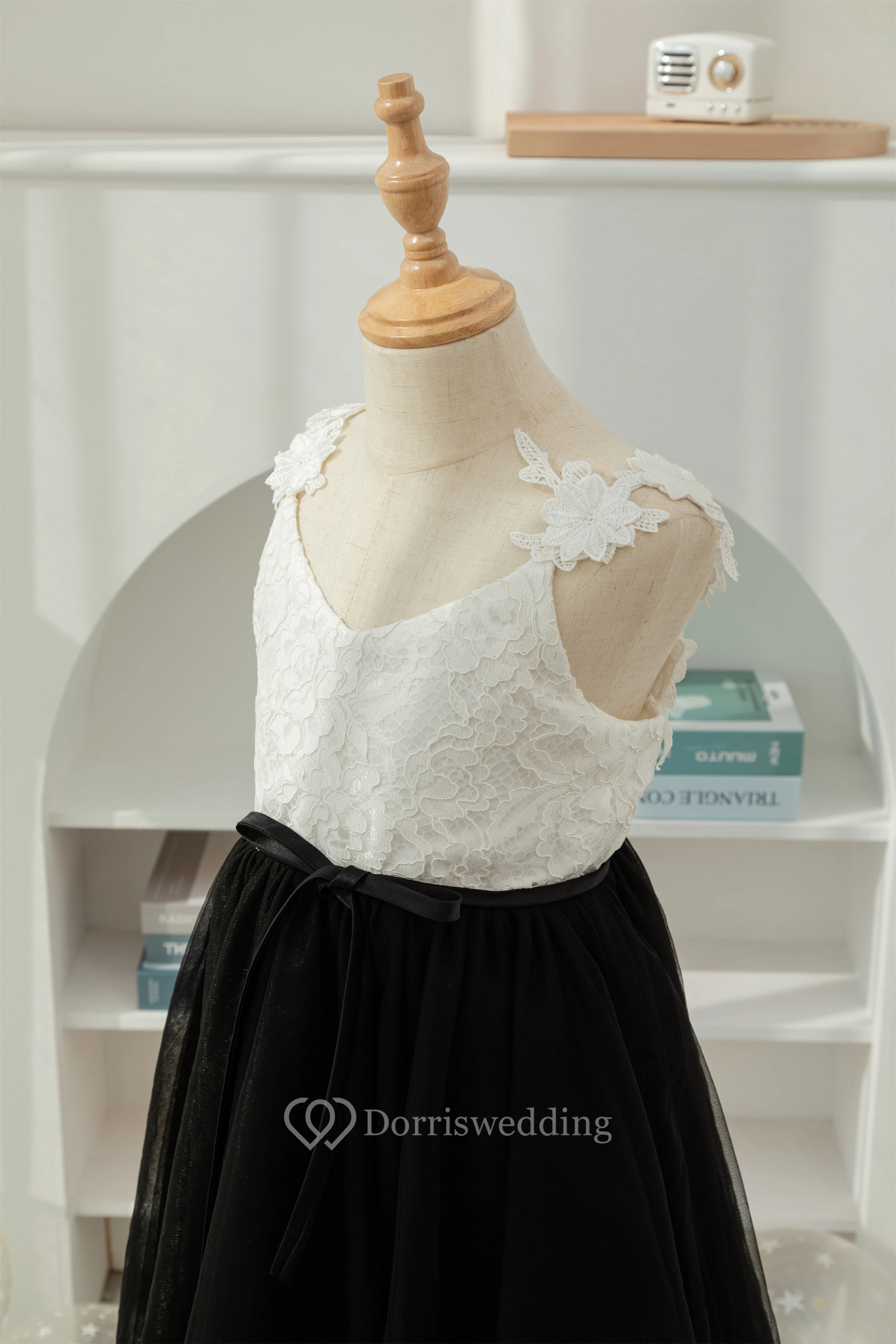 Lace Black and White Short A-line Tulle Flowergirl Dress
