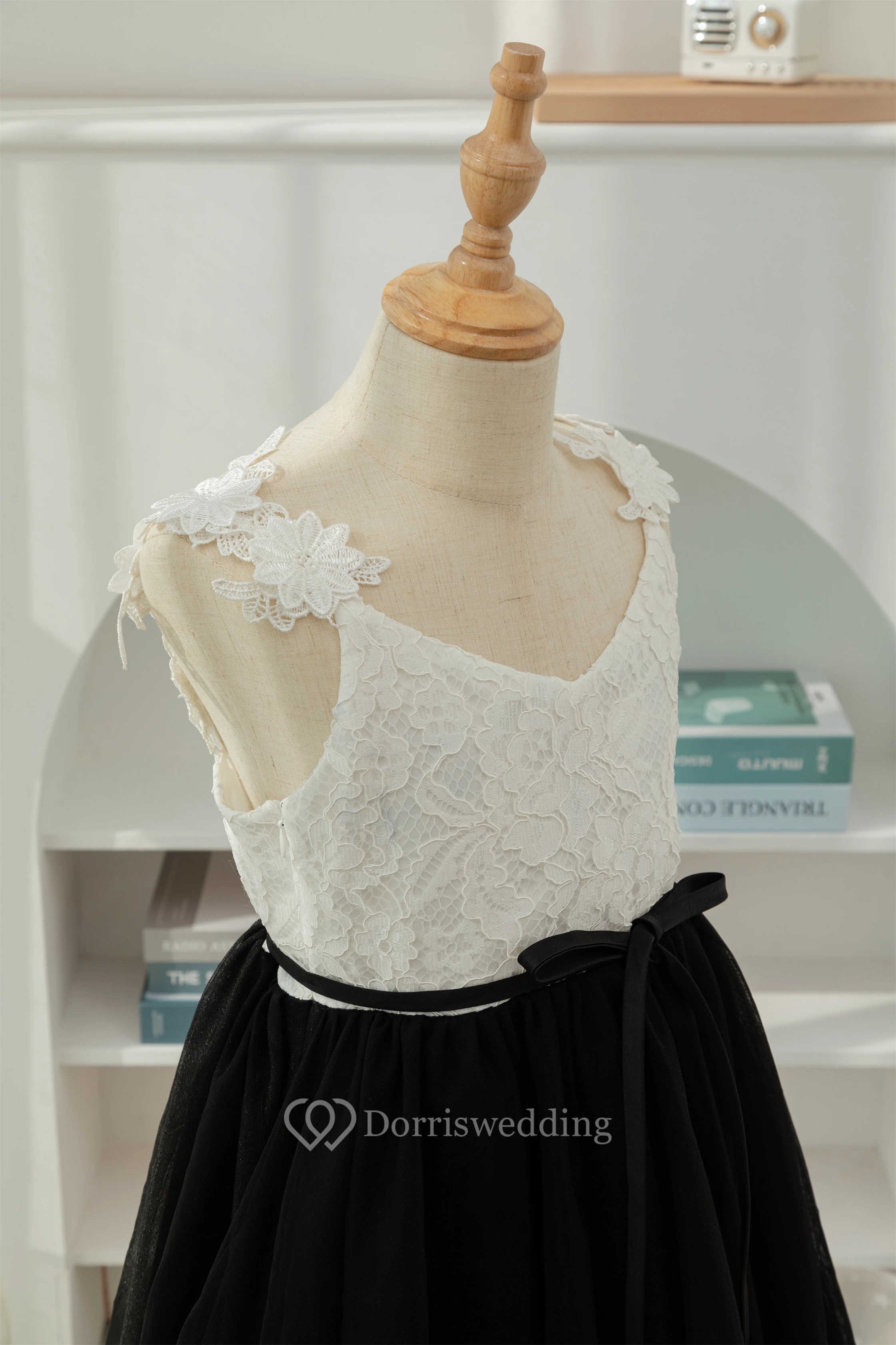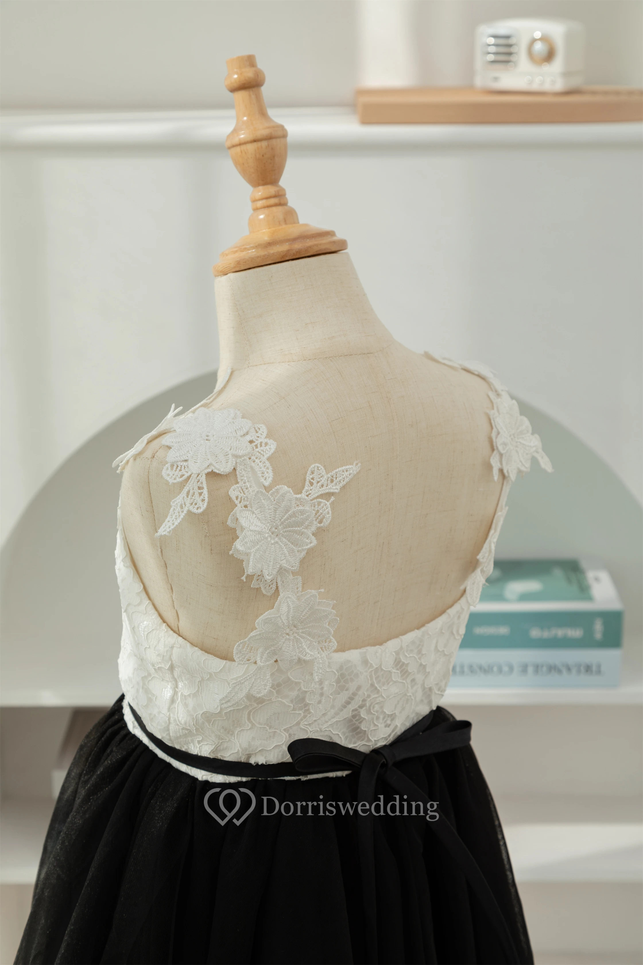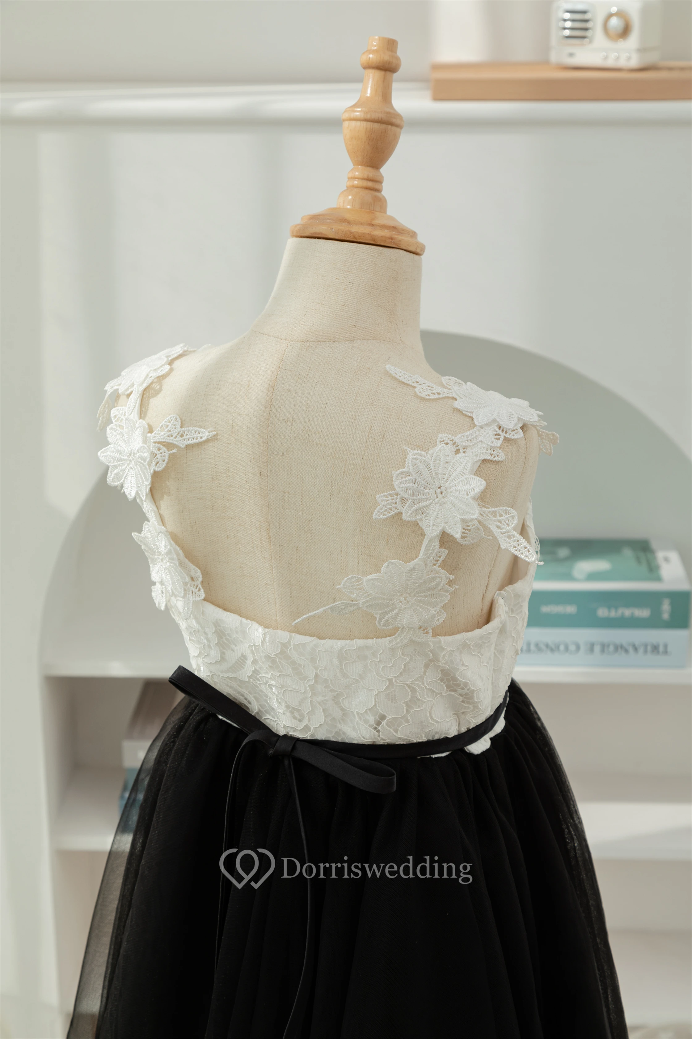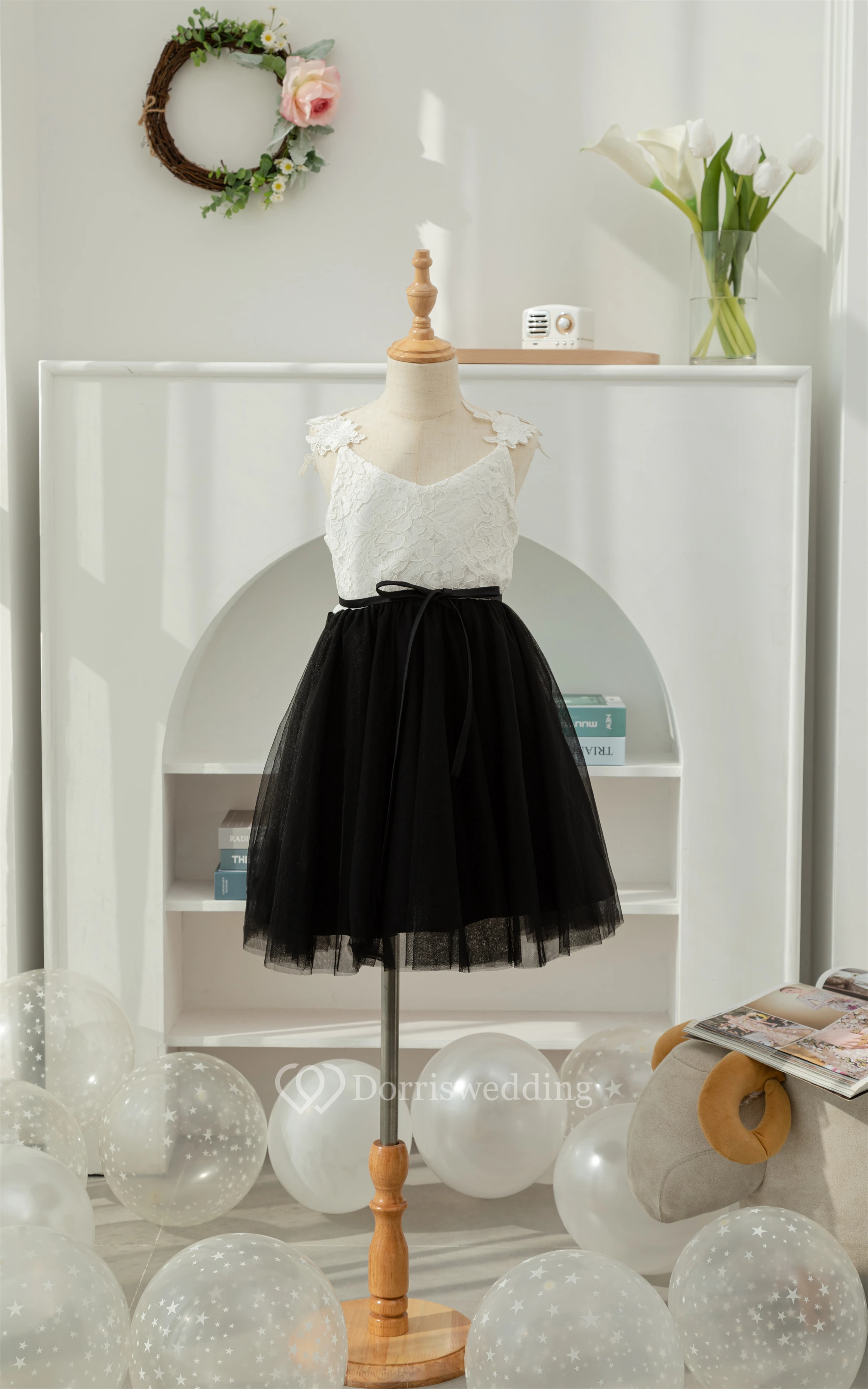 Lace Black and White Short A-line Tulle Flowergirl Dress