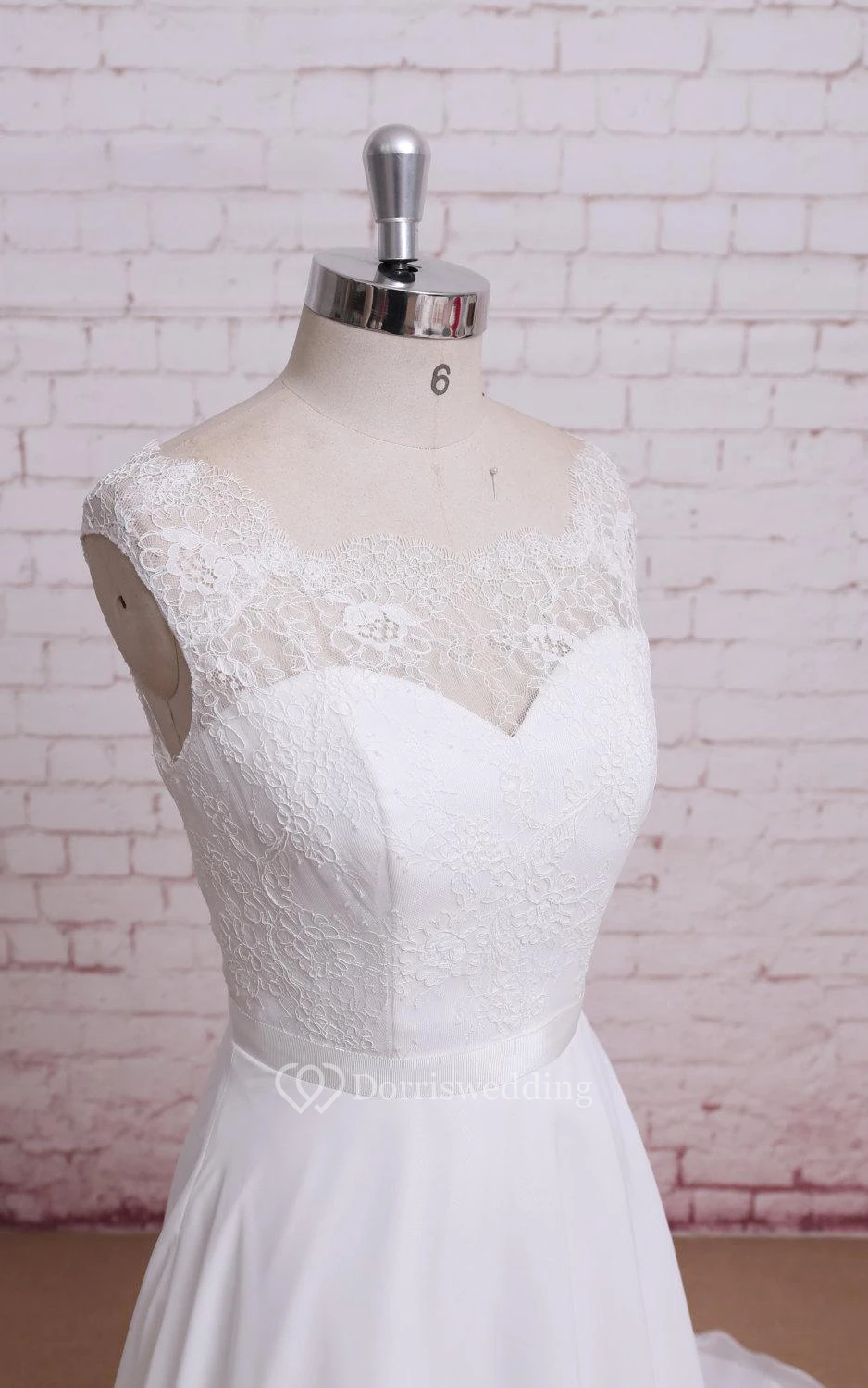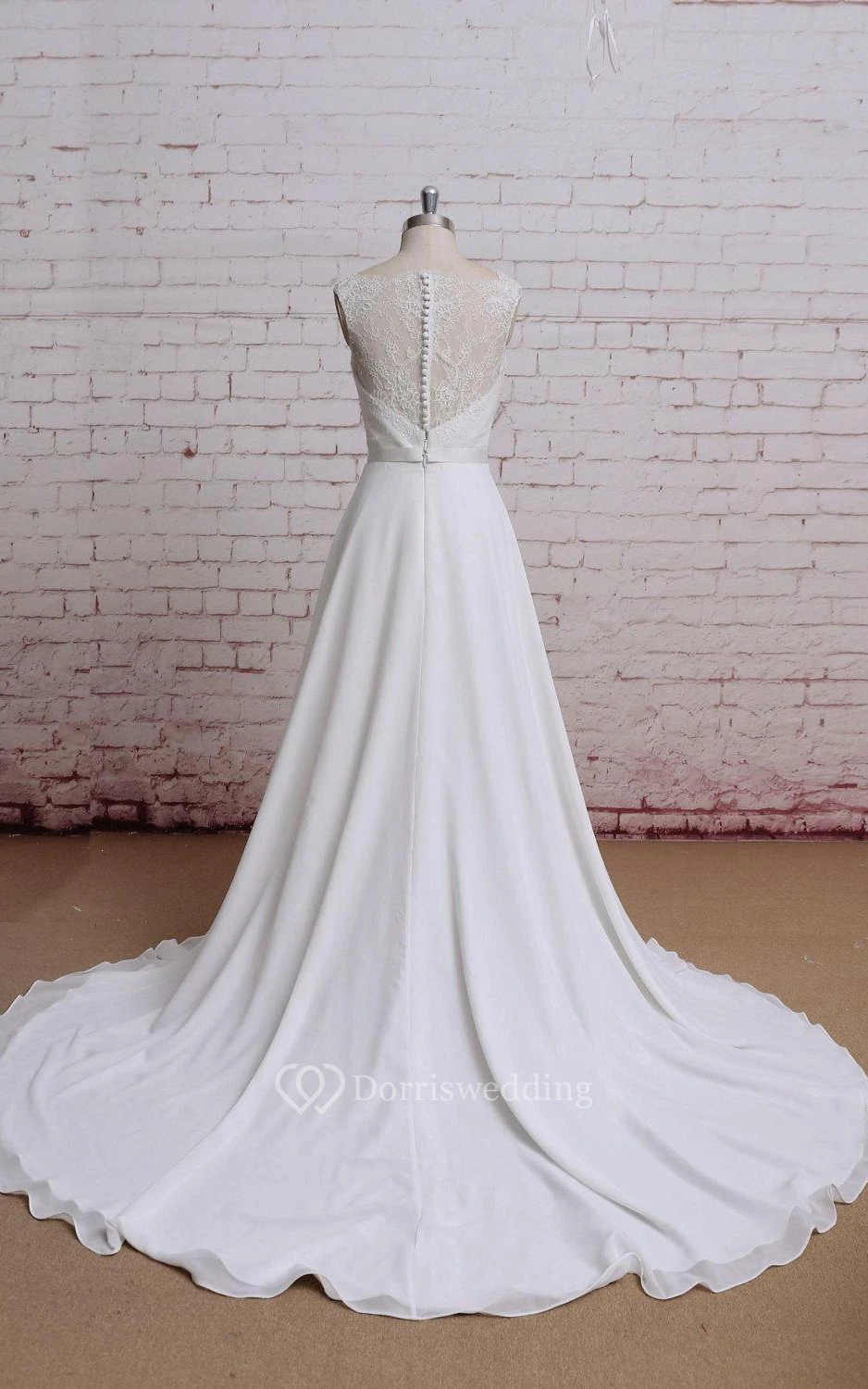Lace Bodice A-Line Sleeveless Chiffon Dress With Illusion Back