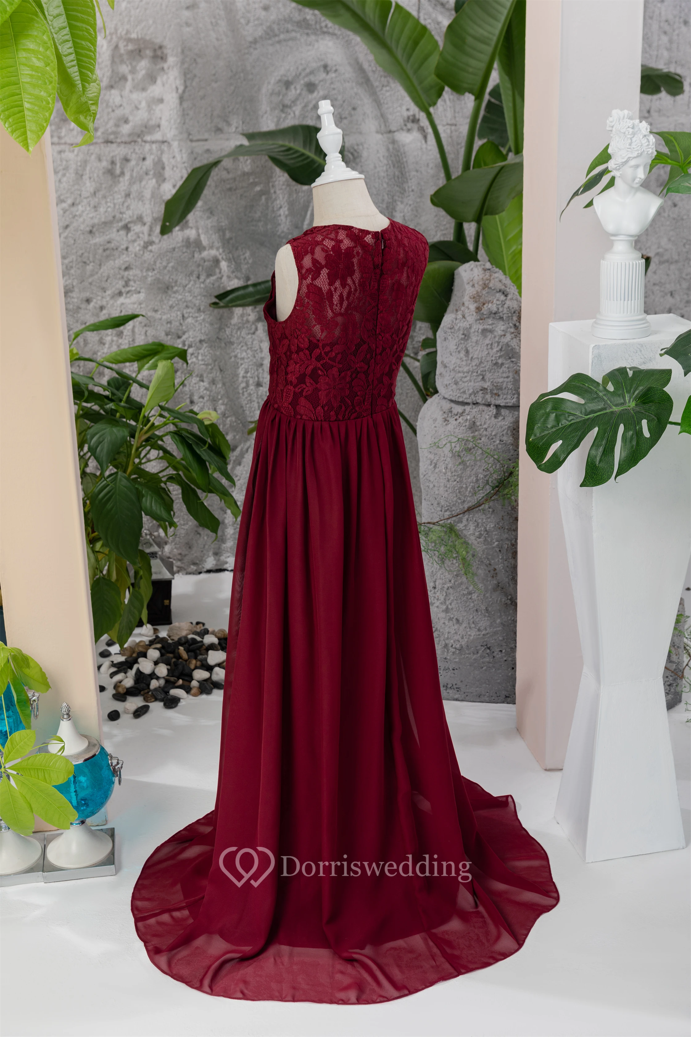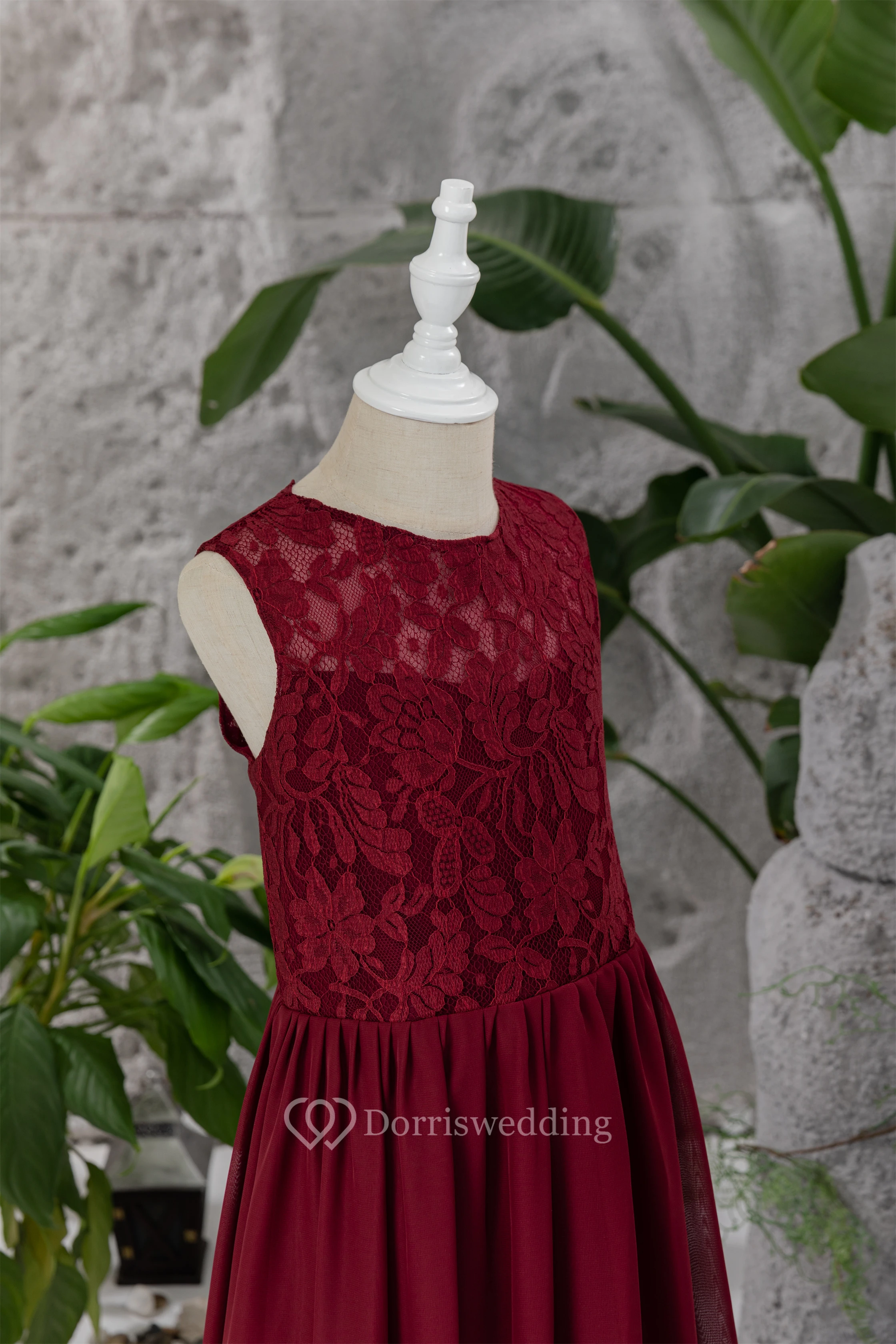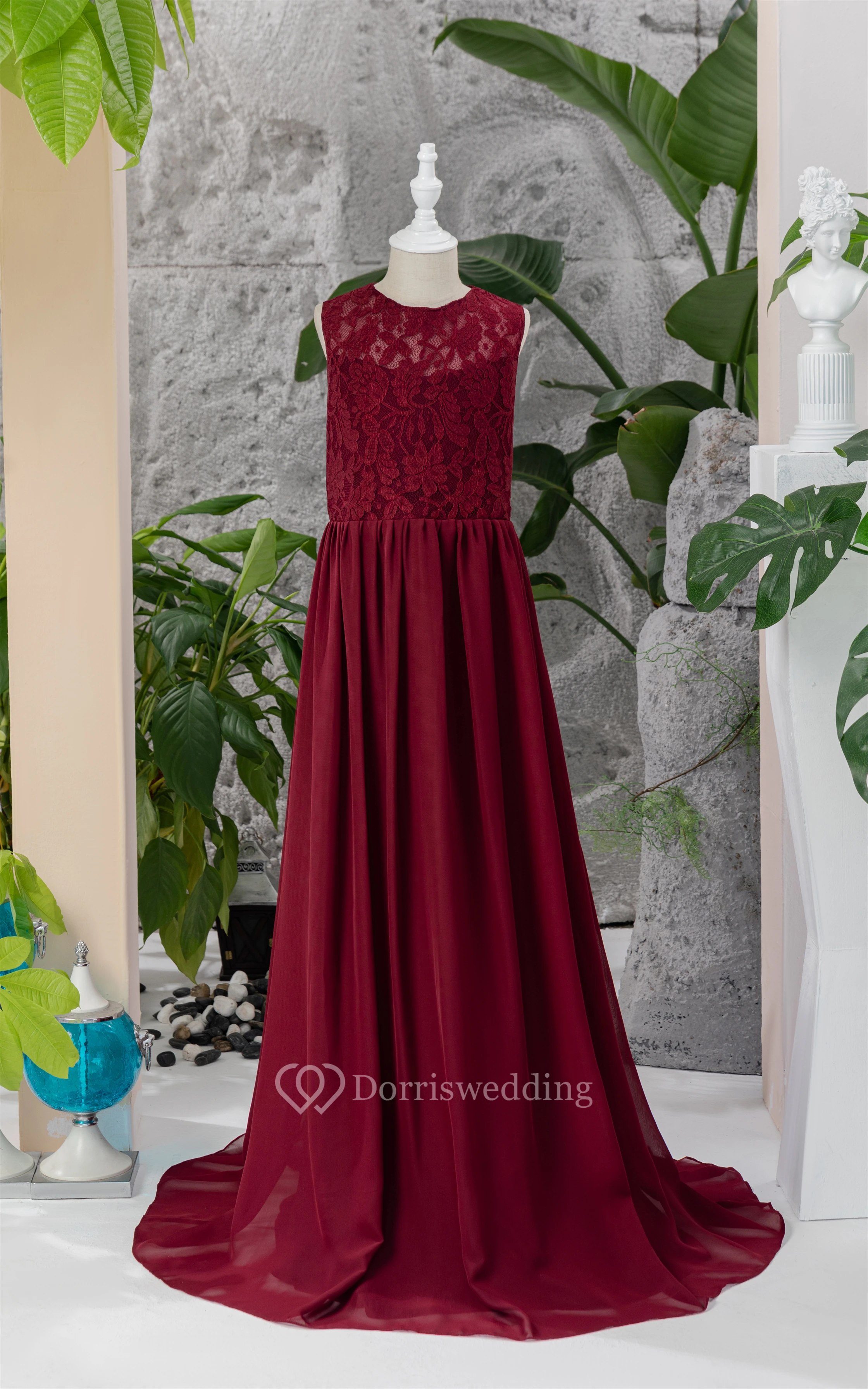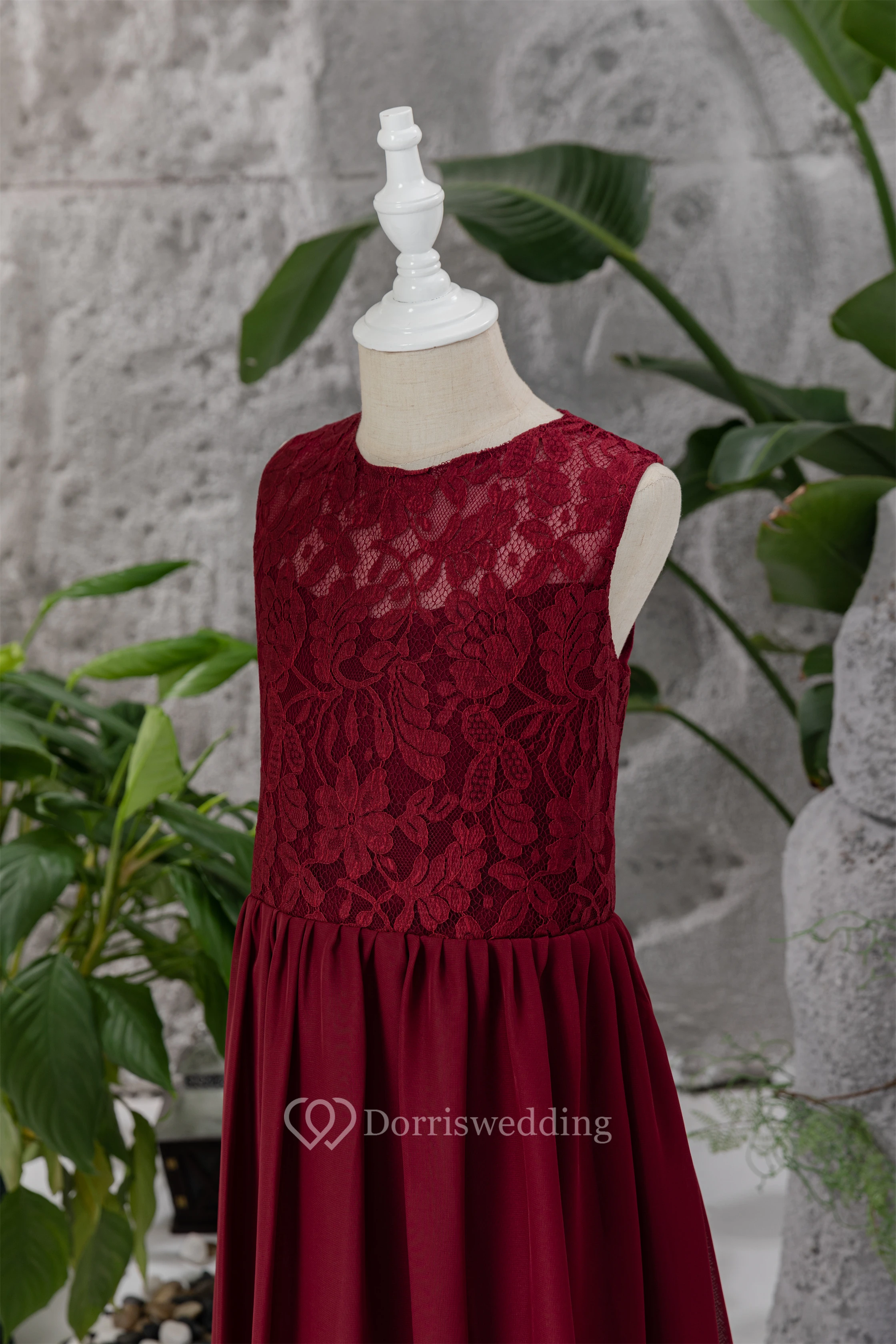 Lace Burgundy Chiffon Floor-length Sleeveless Flowergirl Dress