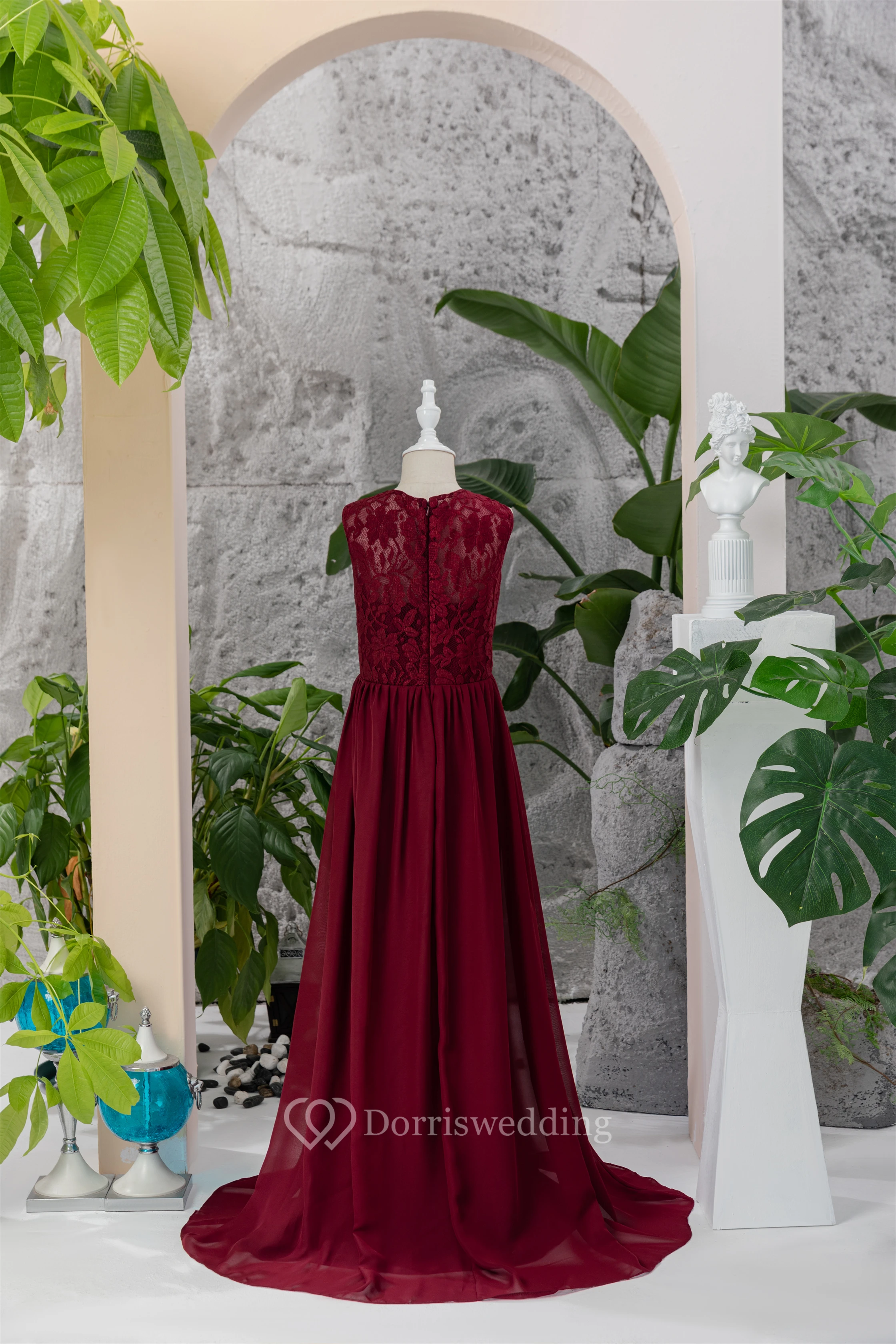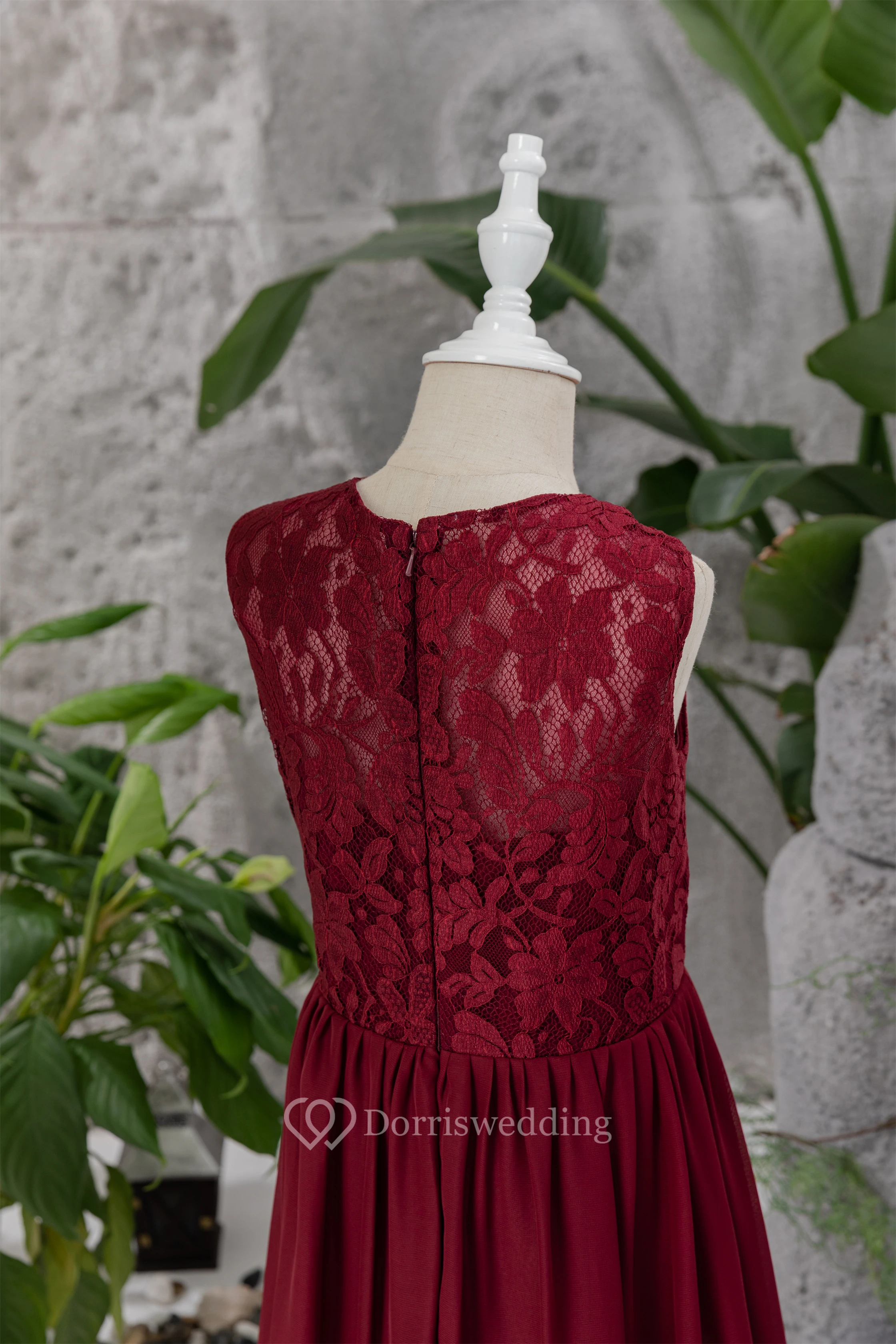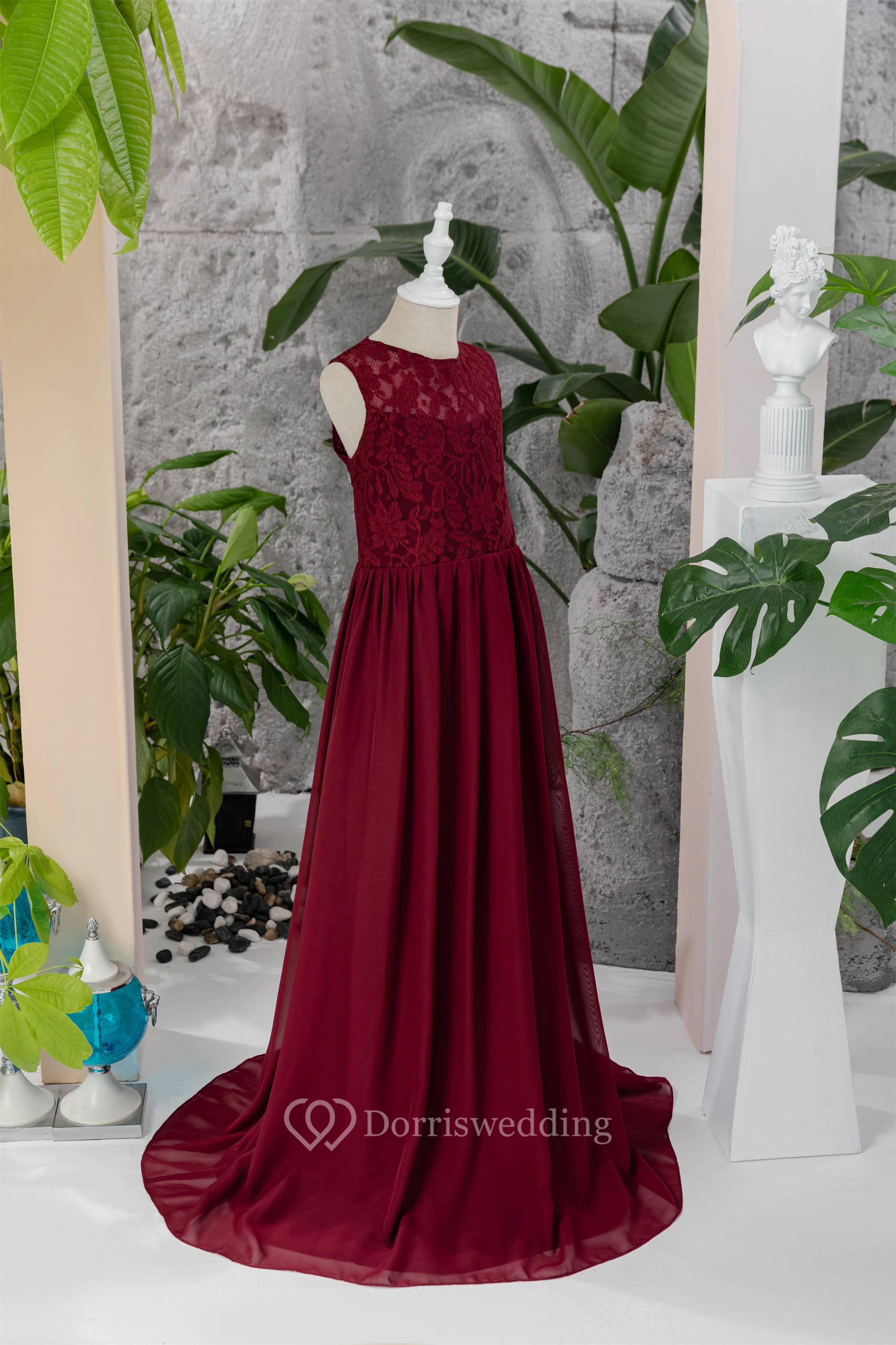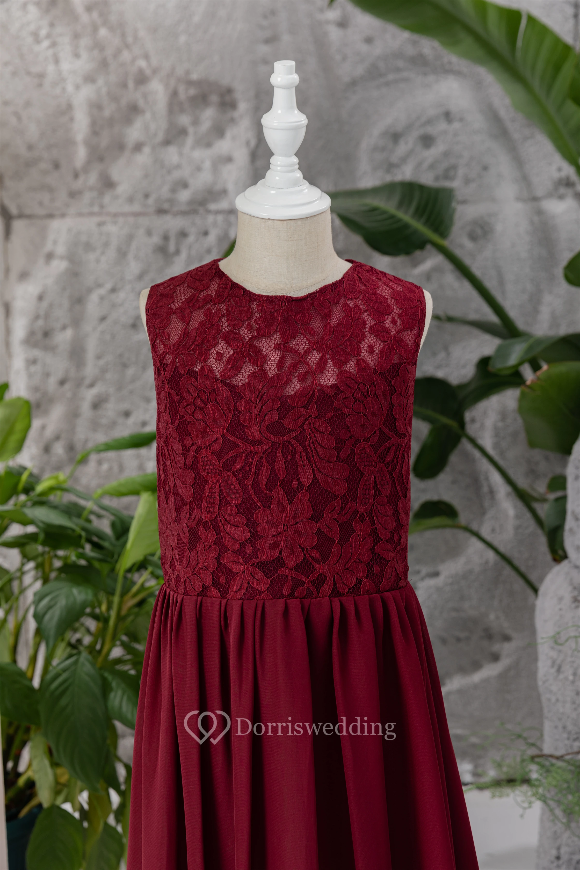 Lace Burgundy Chiffon Floor-length Sleeveless Flowergirl Dress