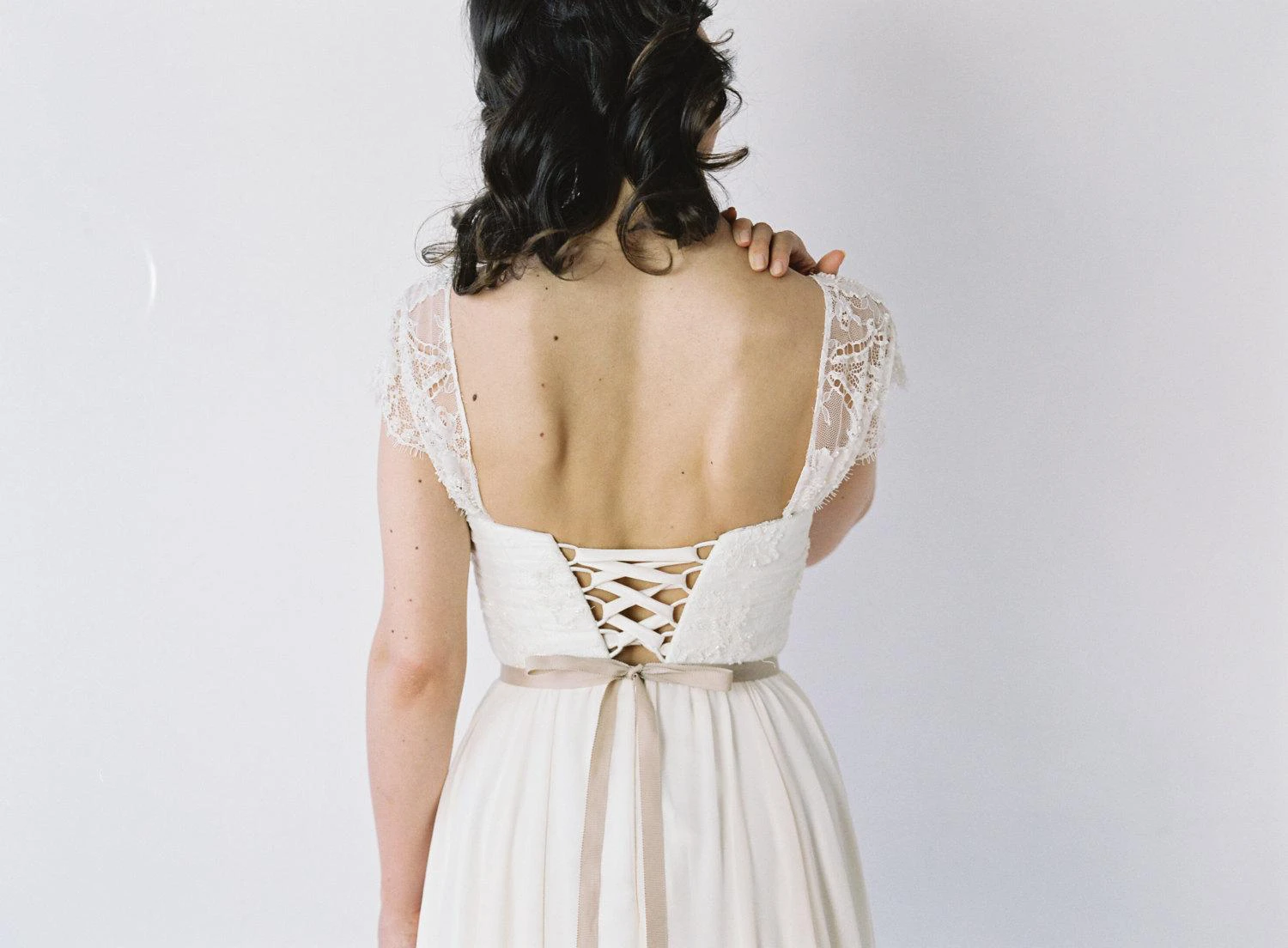 Lace Cap Sleeve V-Neck A-Line Chiffon Dress With Square Open Back