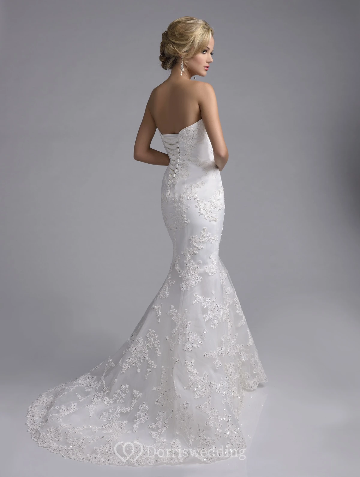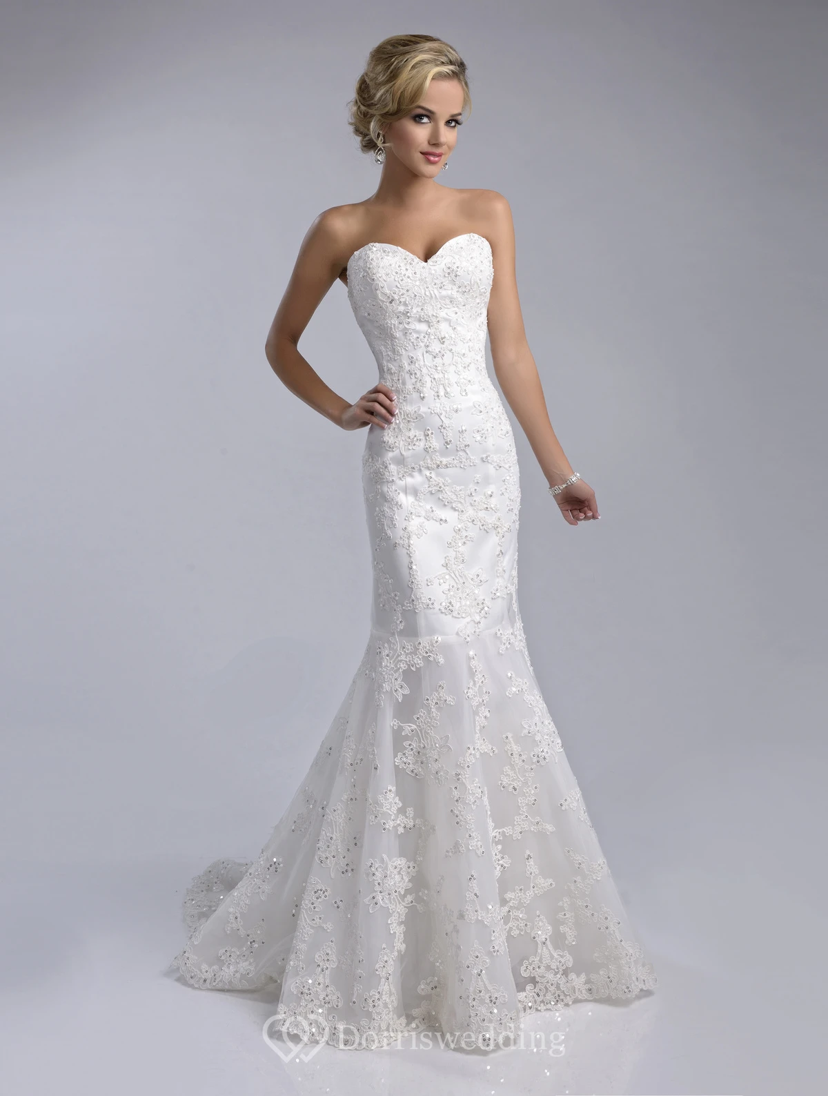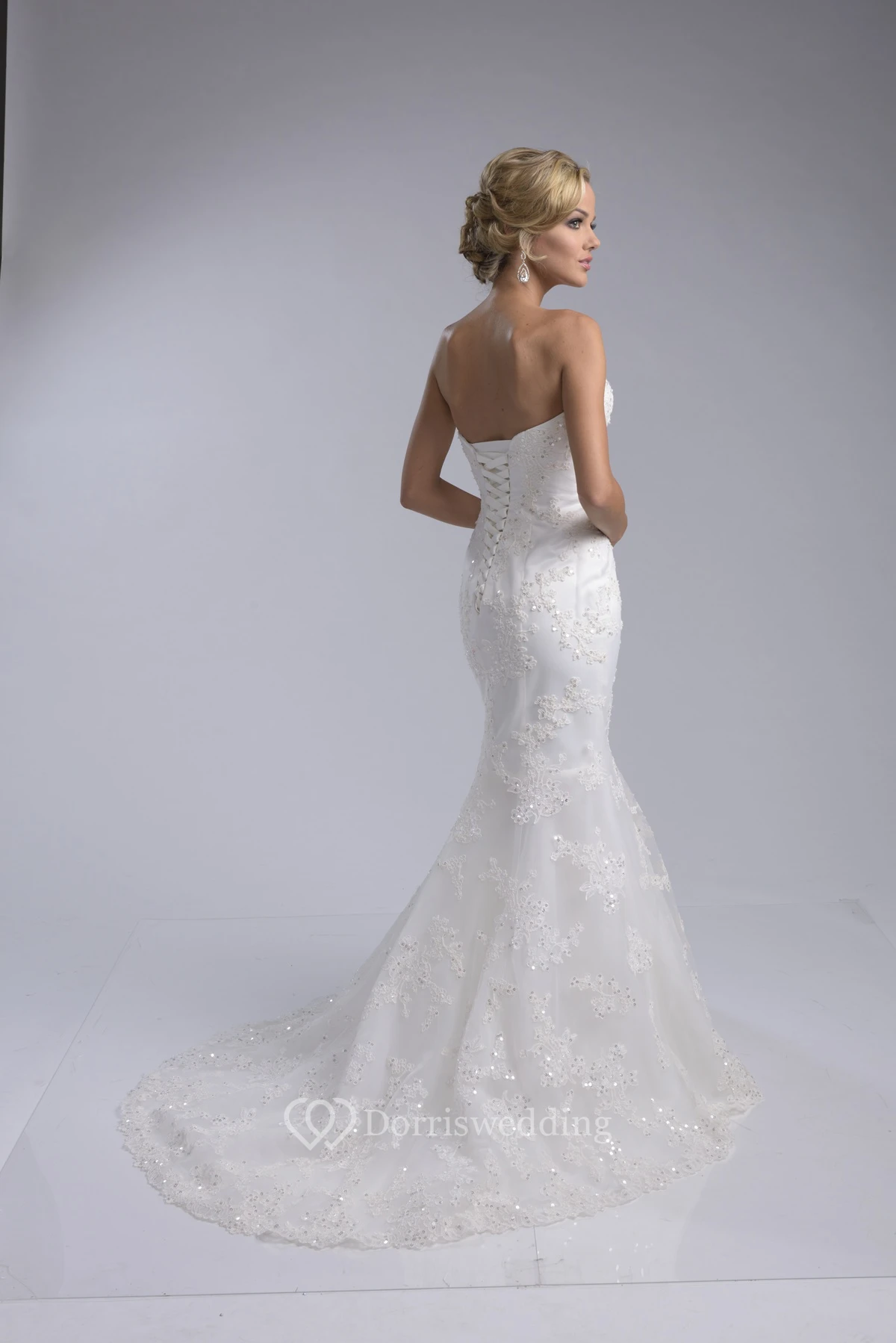 Lace Fit And Flare Lace-Up Back Wedding Dress With Sweetheart Neckline
