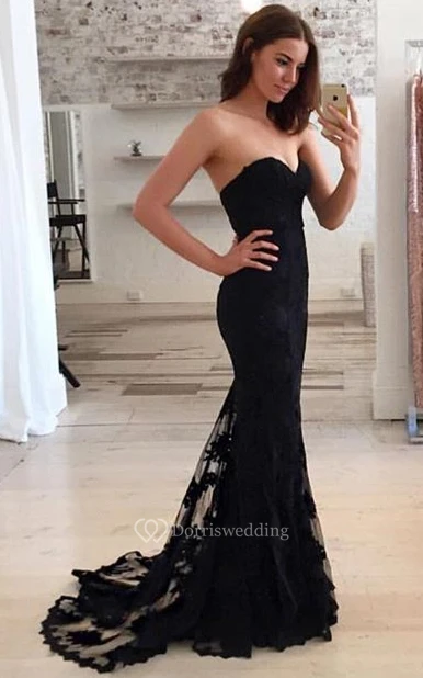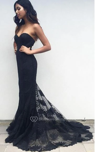Lace Floor-length Sweep Train Trumpet Sleeveless Sexy Prom Dress