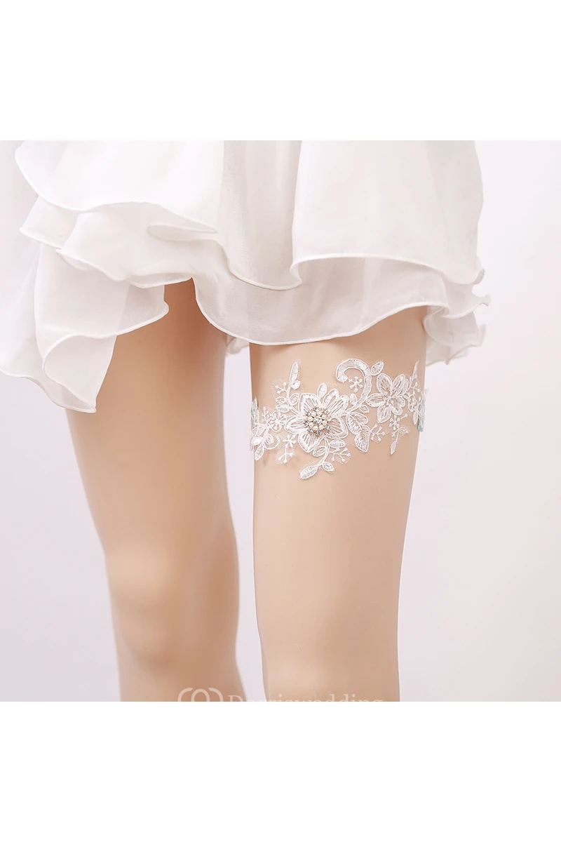 Lace Handmade Beaded Lace Elastic Garter Within 16-23inch