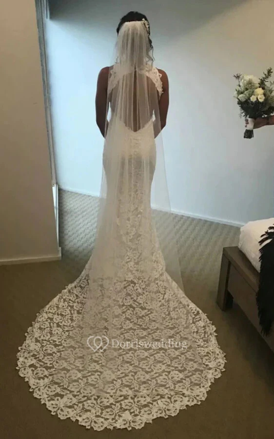 This dress features a beautiful satin liner and an elegant lace overlay that offers a tailored fit for a classic look. It has limited stretch.