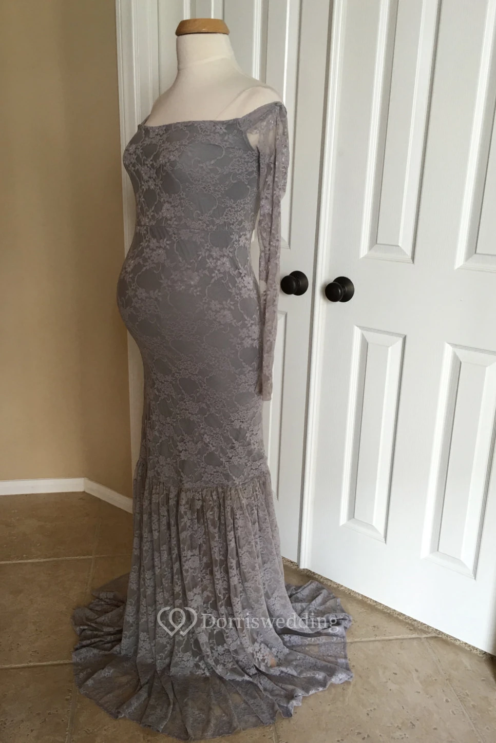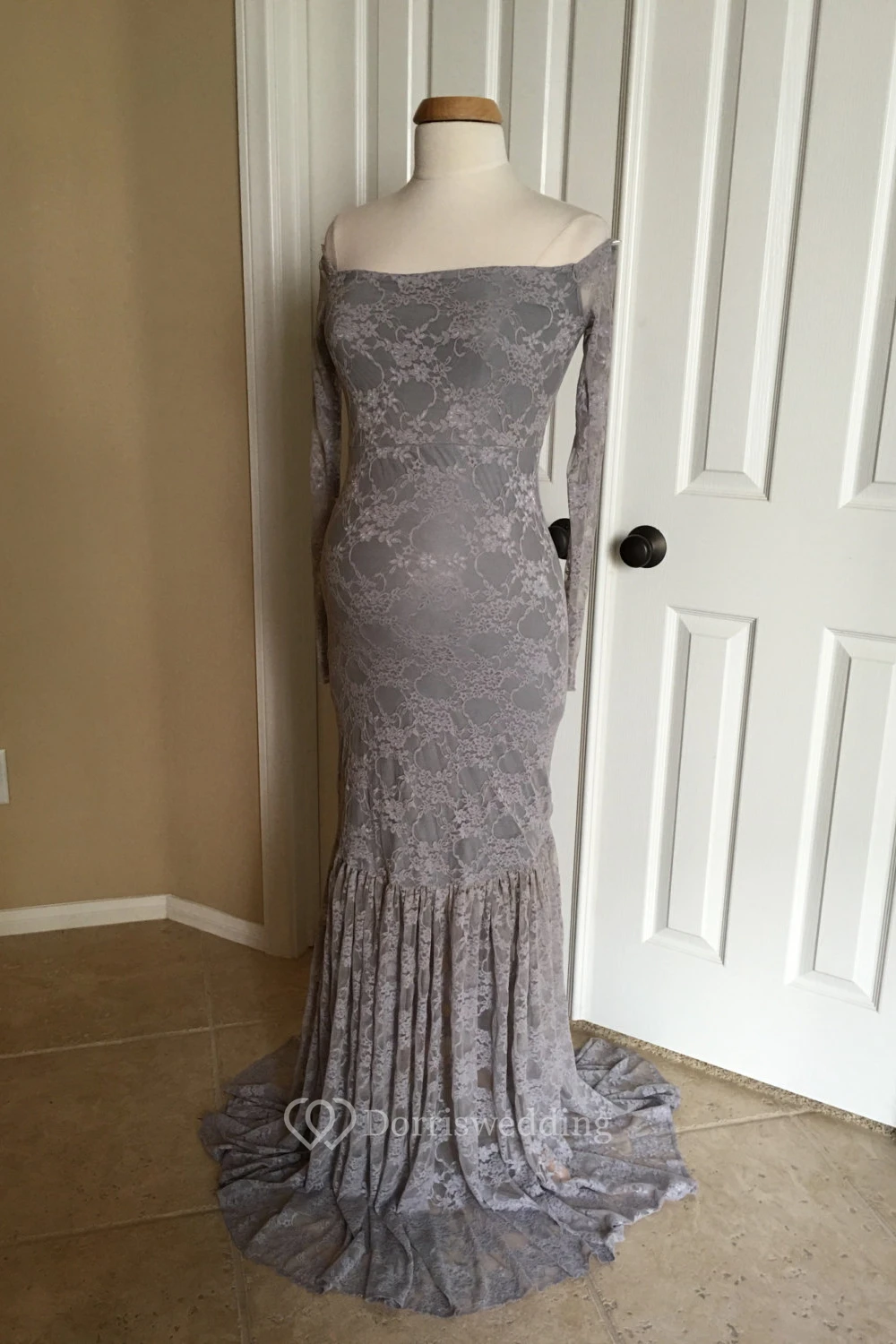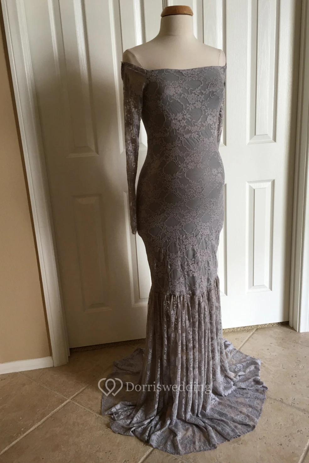 Lace Mermaid Illusion Long Sleeve Off-the-shoulder Dress