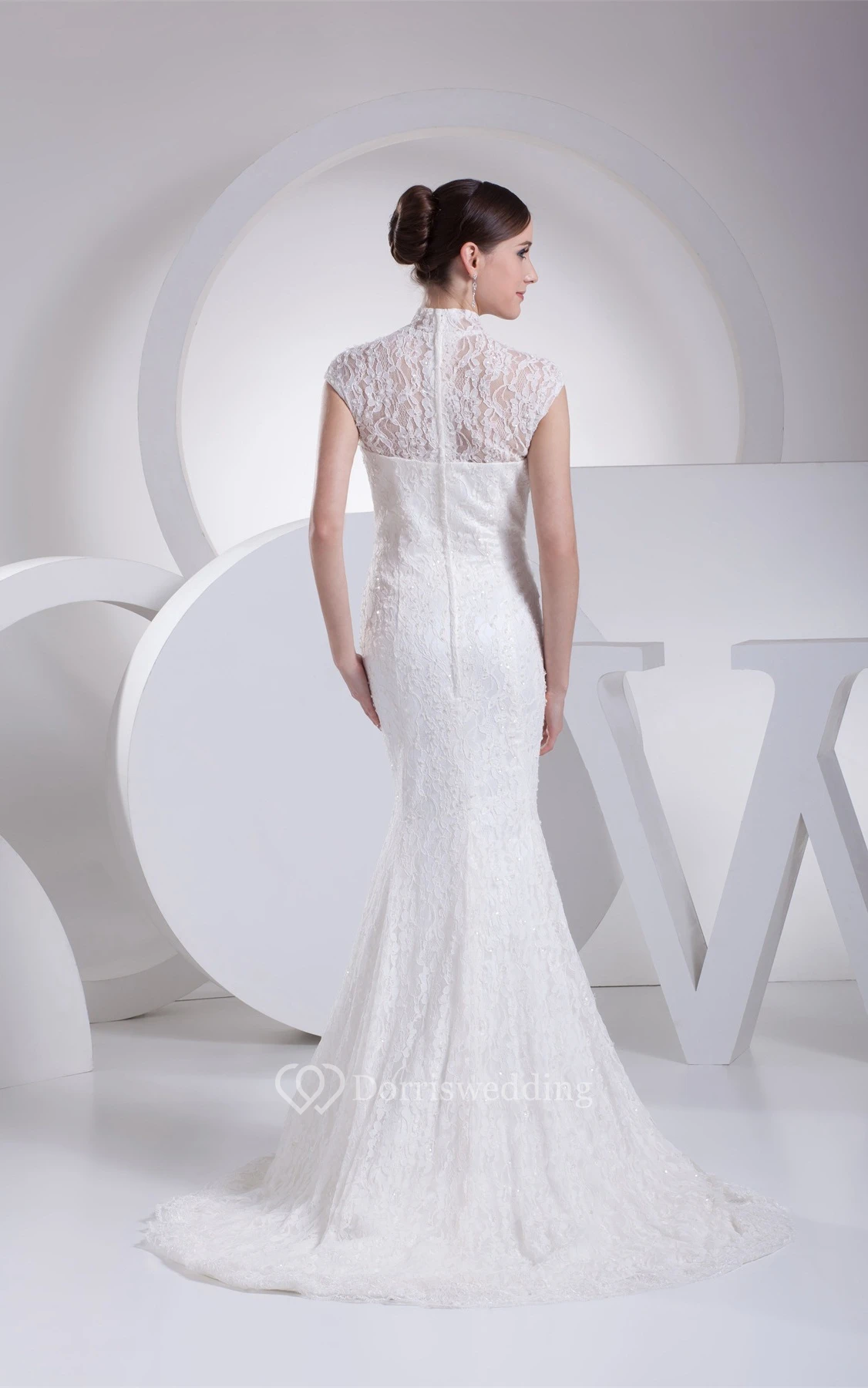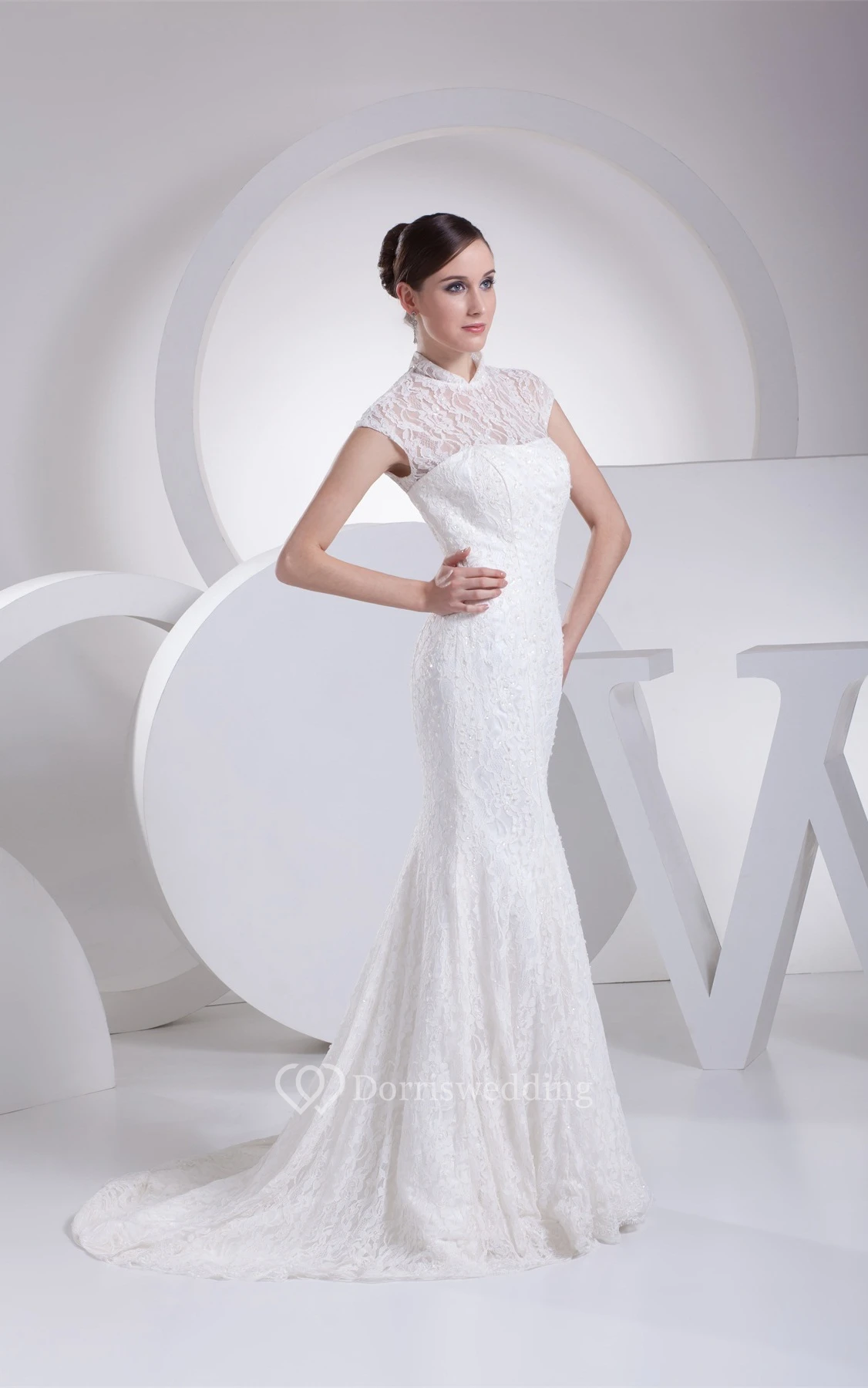 Lace Pleated Mermaid Sweep Train and Dress With Illusion Neckline