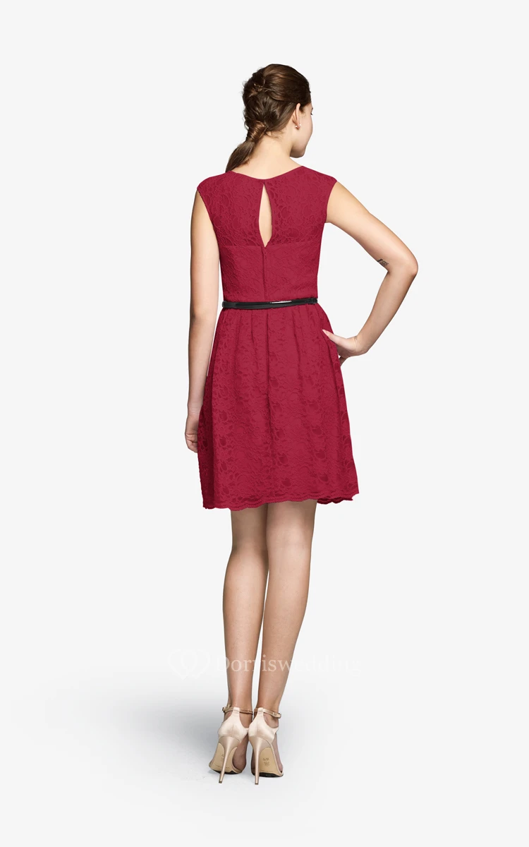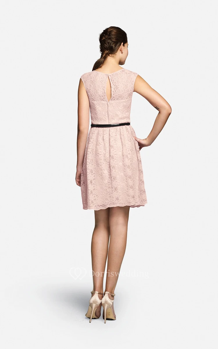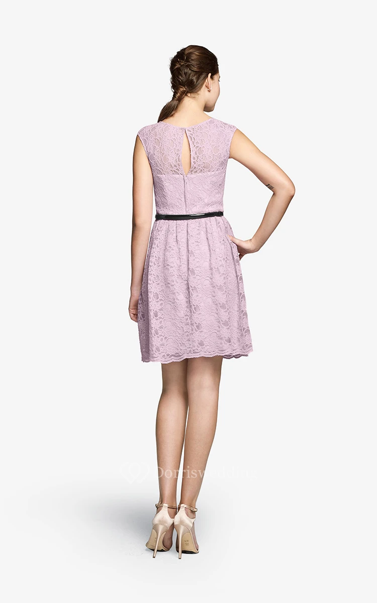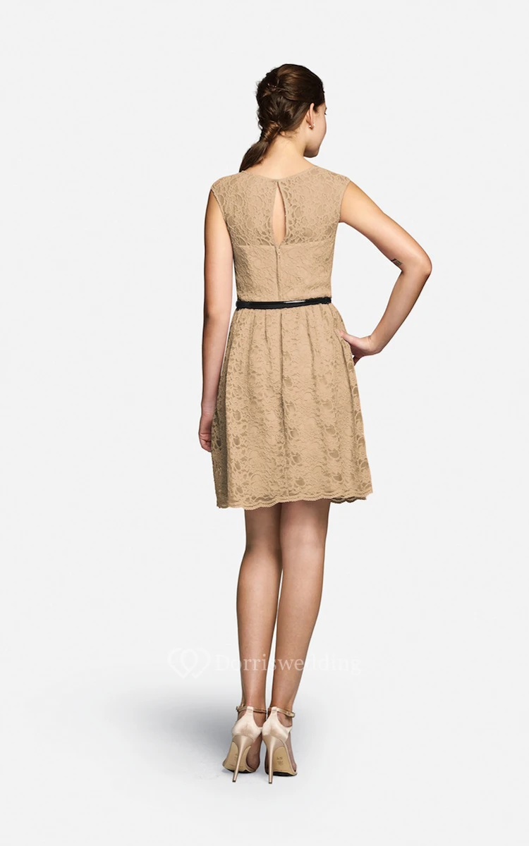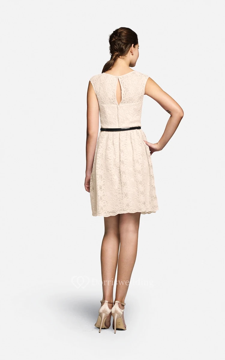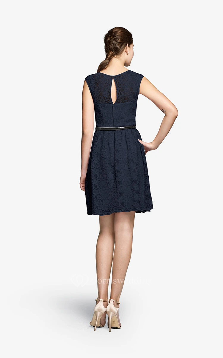 Lace Short Cap-Sleeved Dress With Keyhole Back