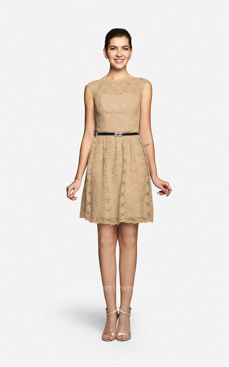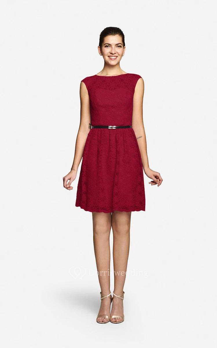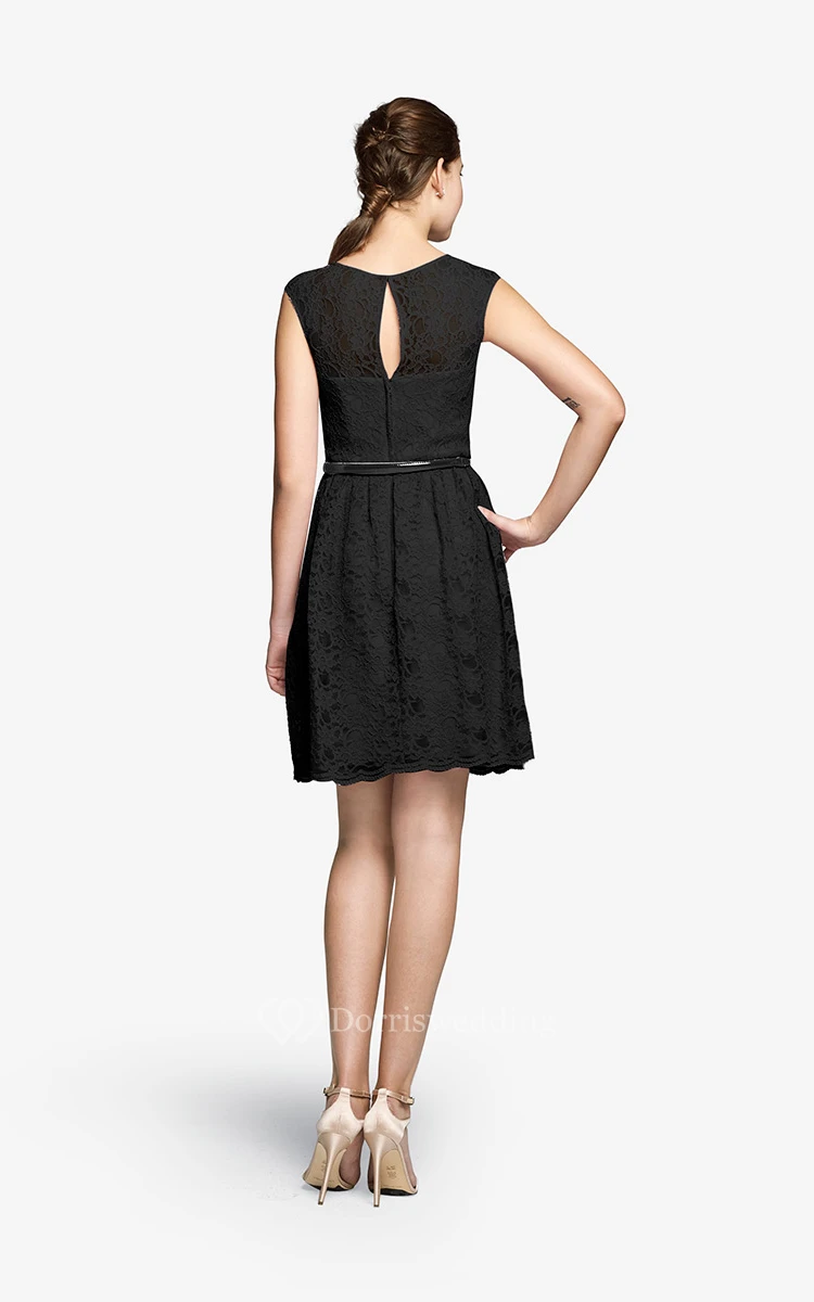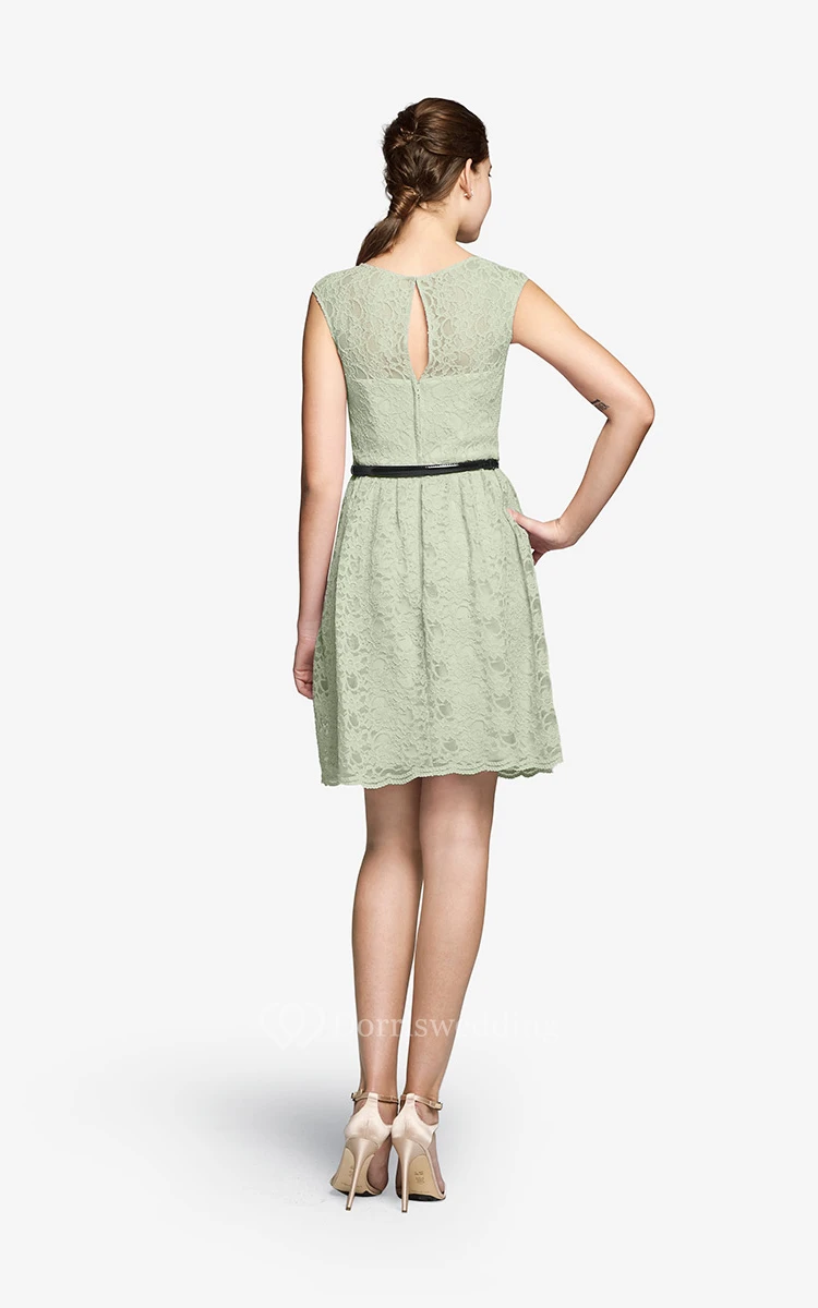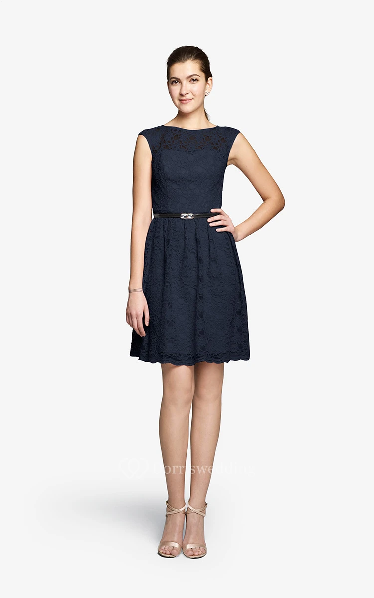 Lace Short Cap-Sleeved Dress With Keyhole Back