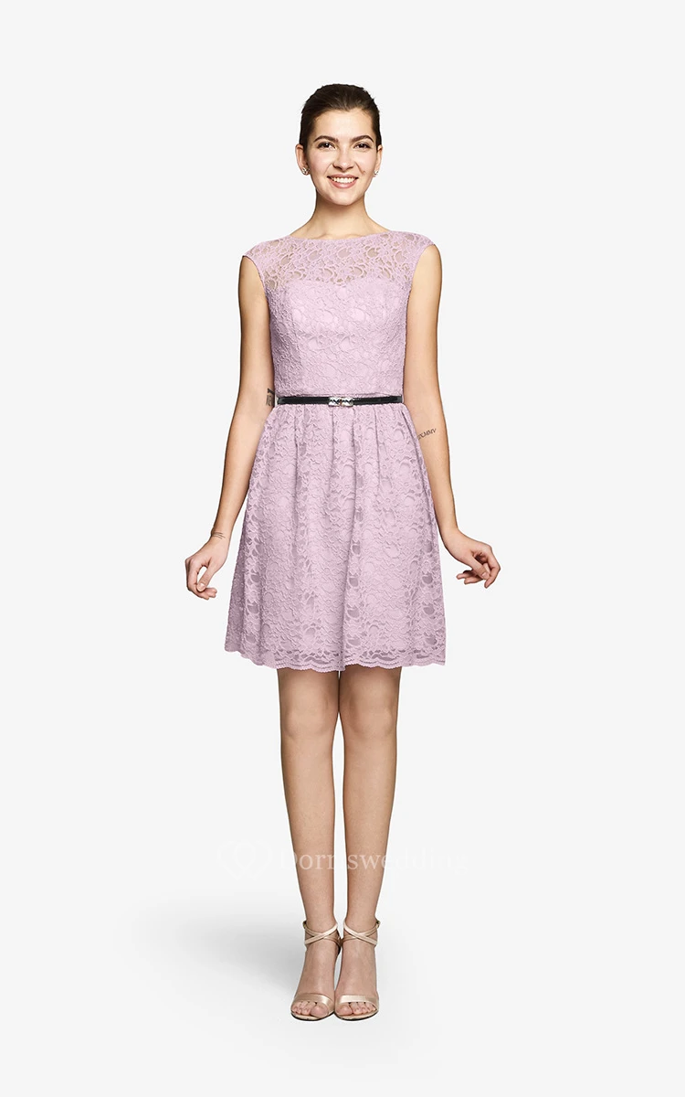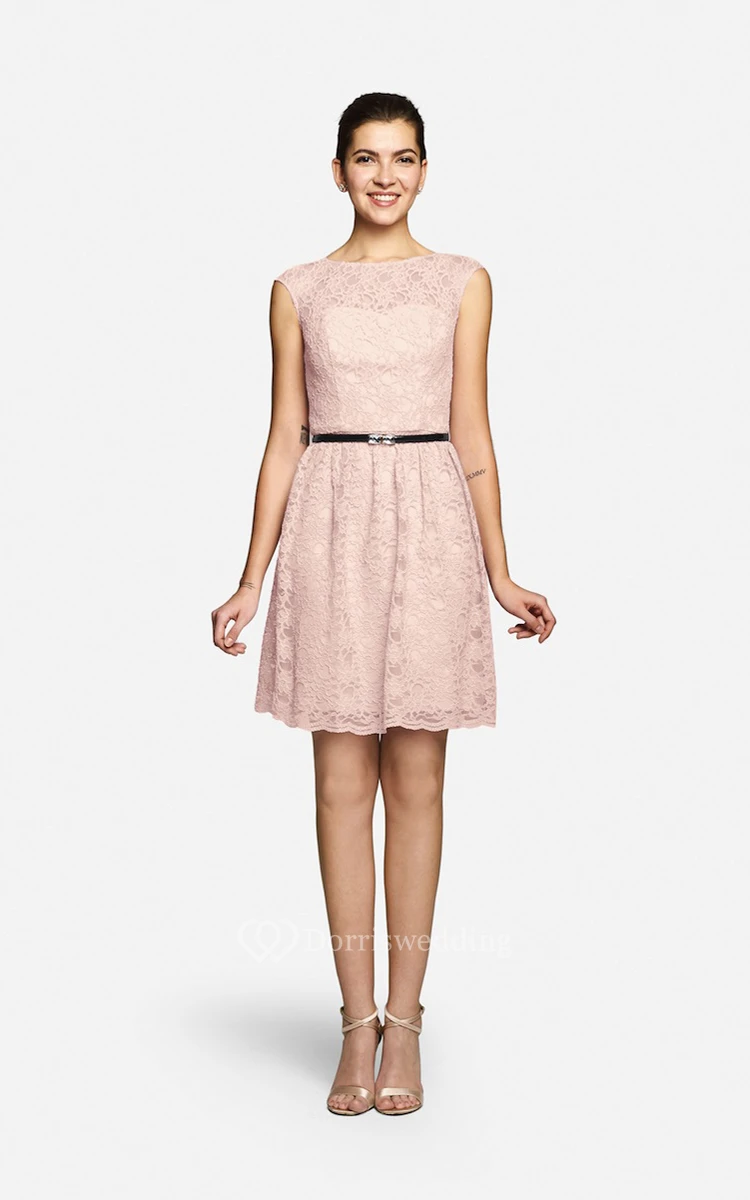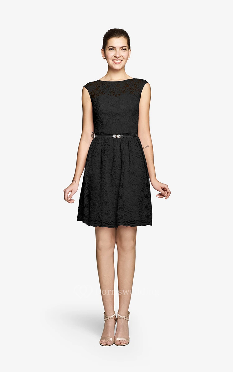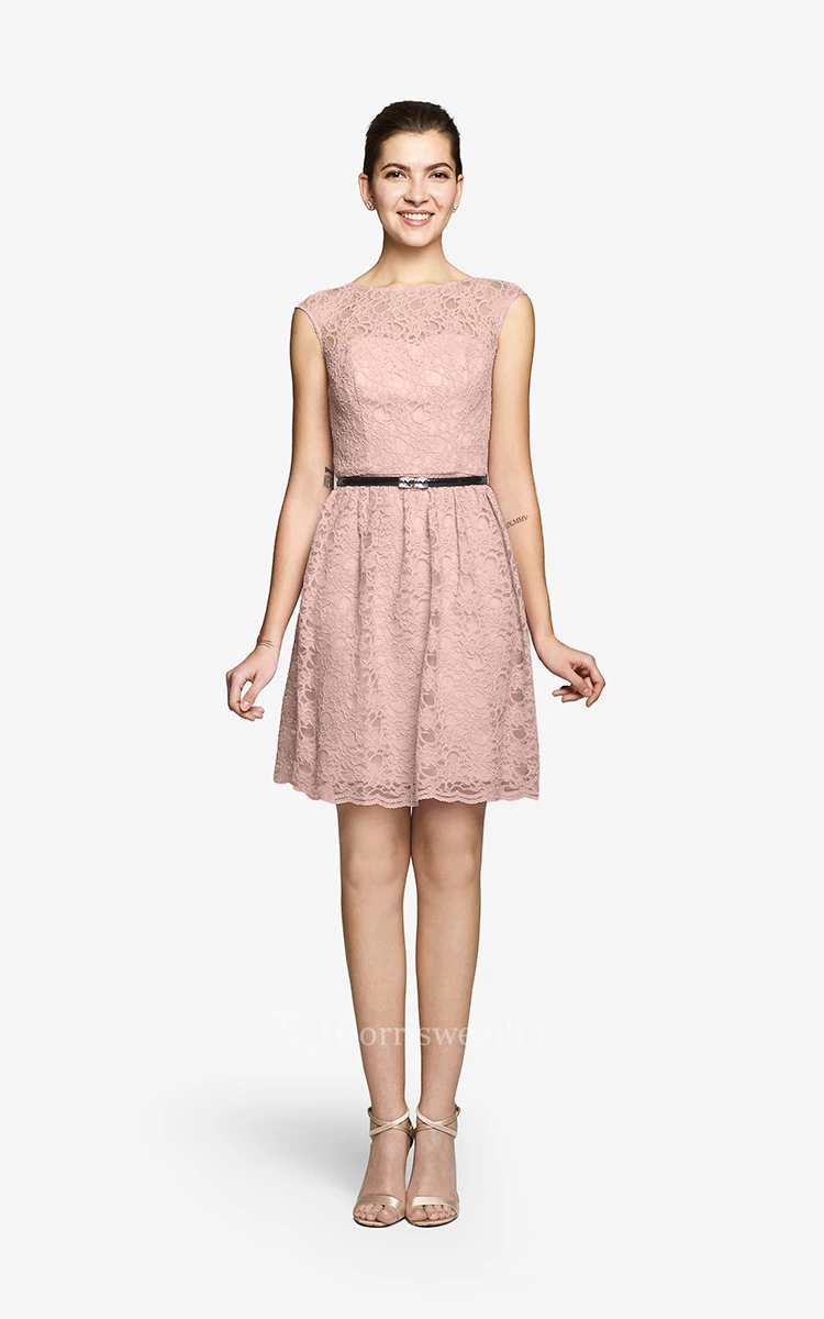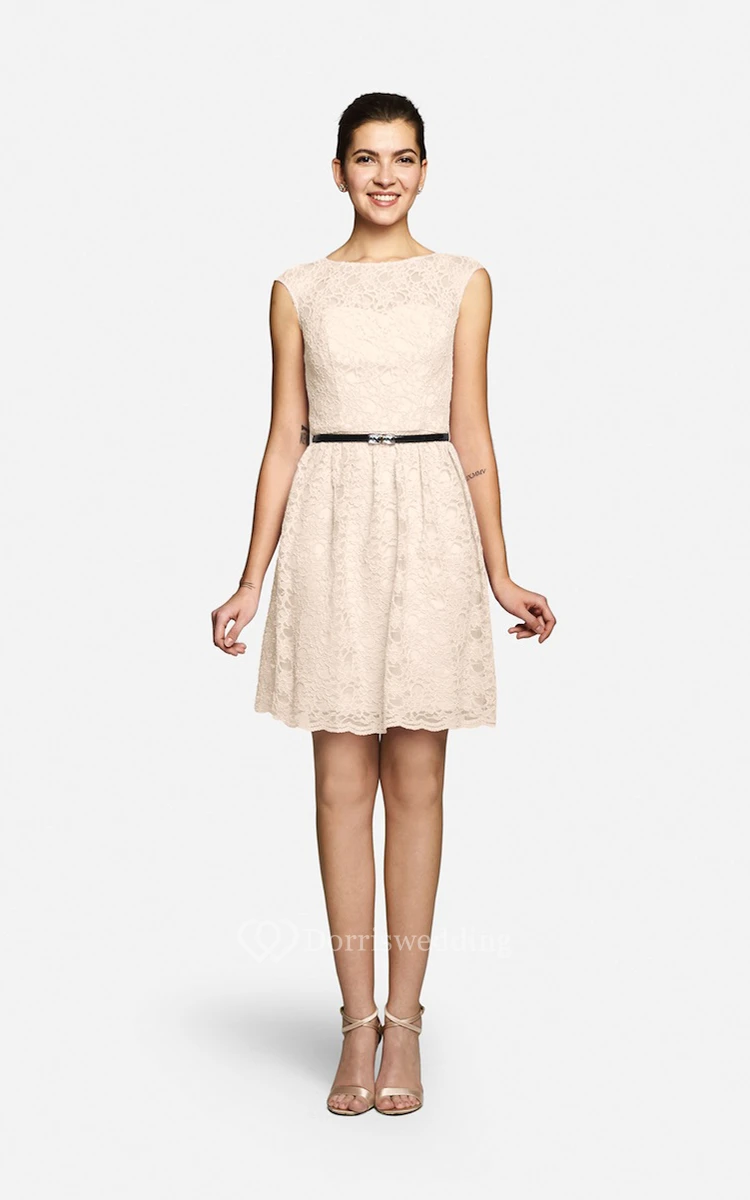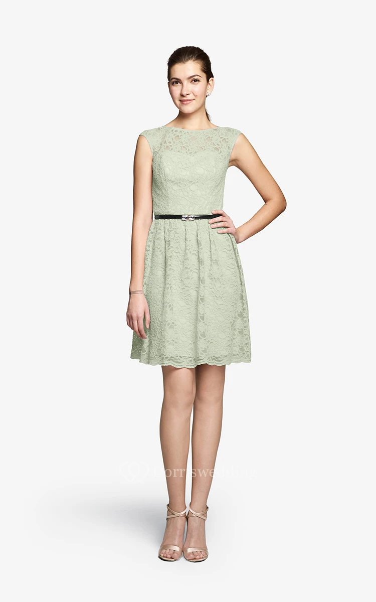 Lace Short Cap-Sleeved Dress With Keyhole Back
