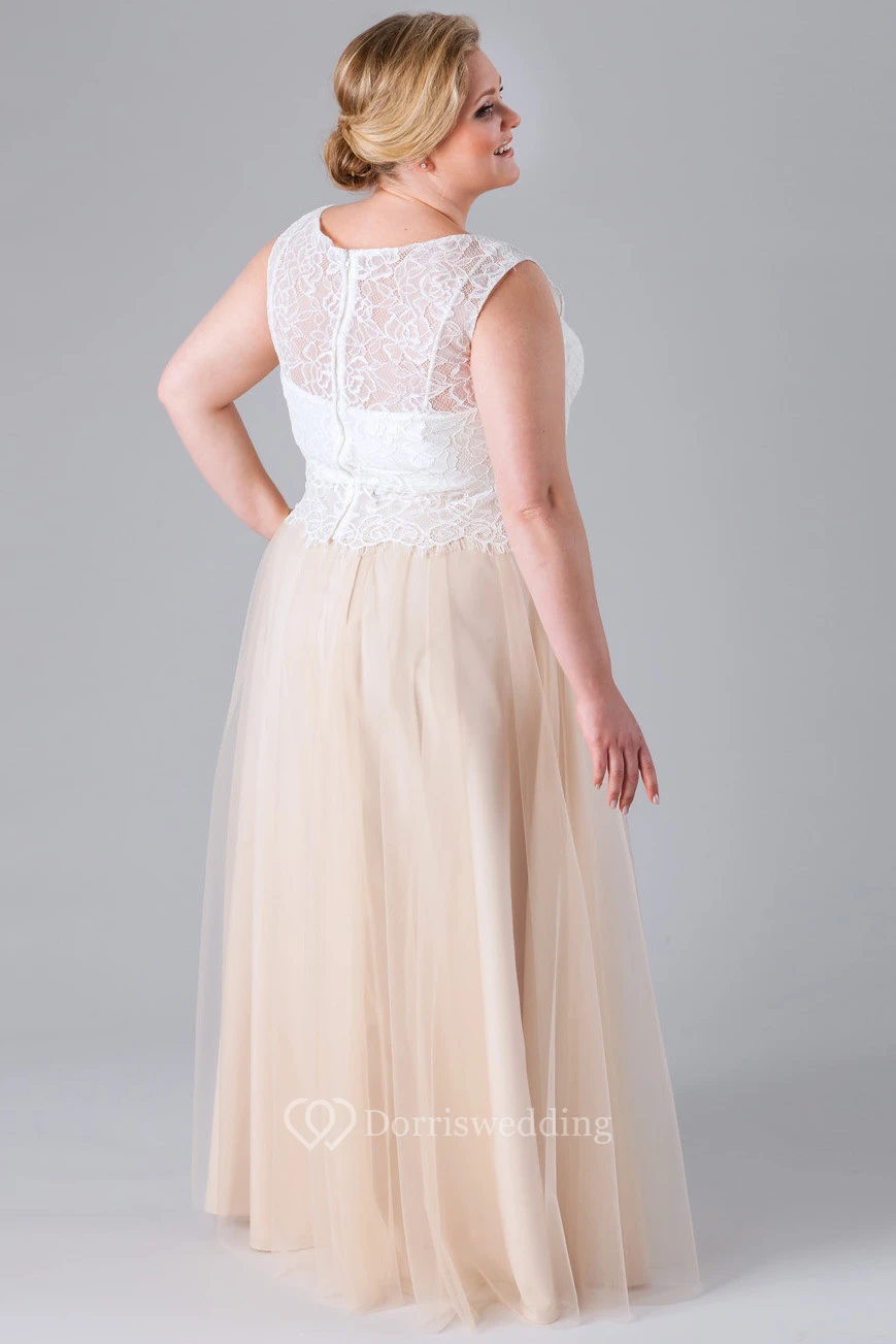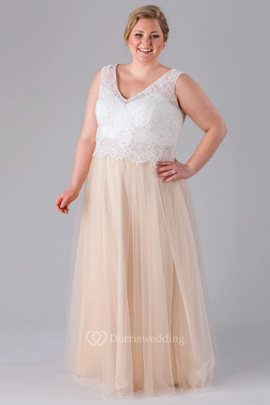 Lace Sleeveless V-Neck Tulle Bridesmaid Dress