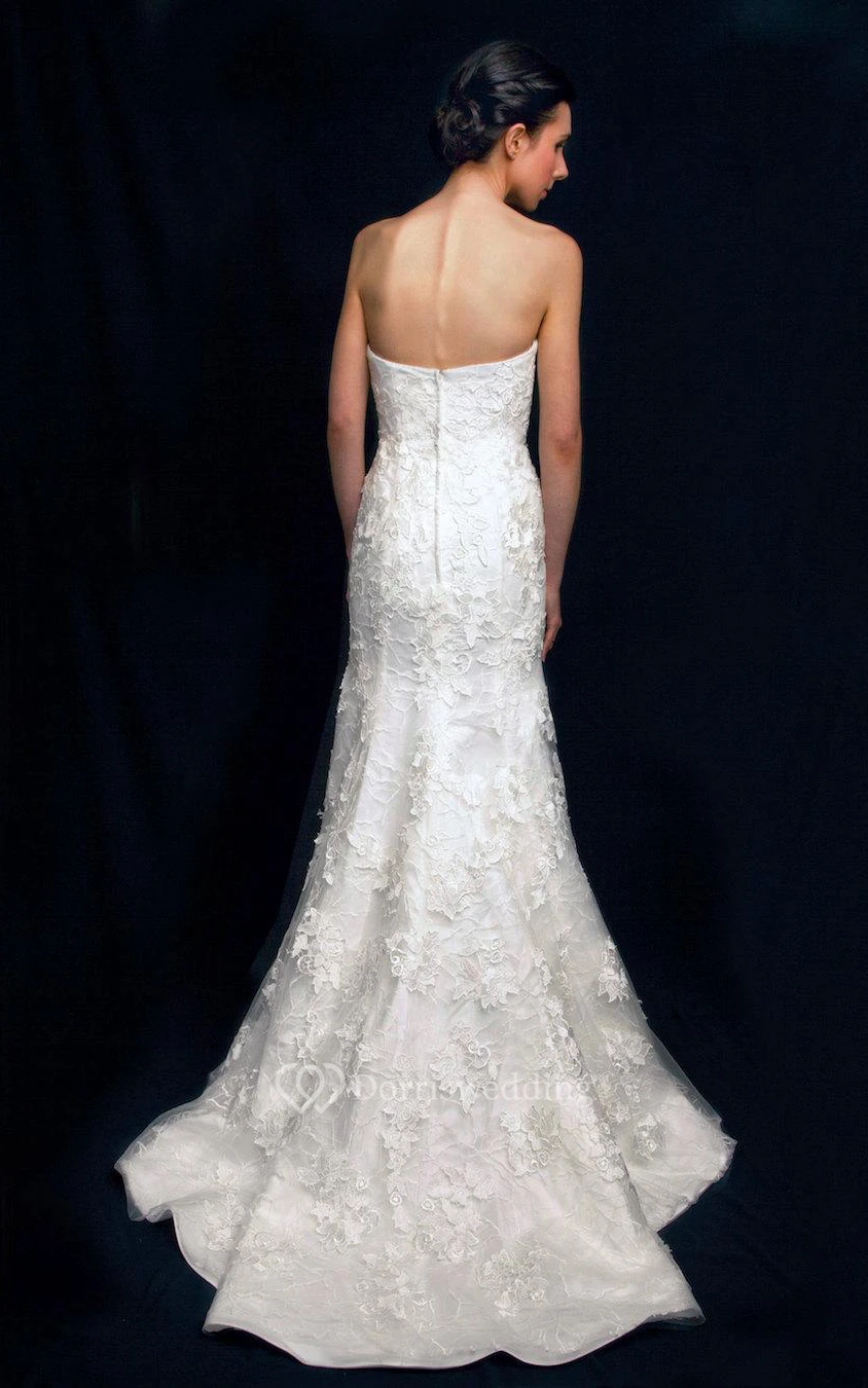 Lace Strapless Fit and Flare Dress With Zipper Back