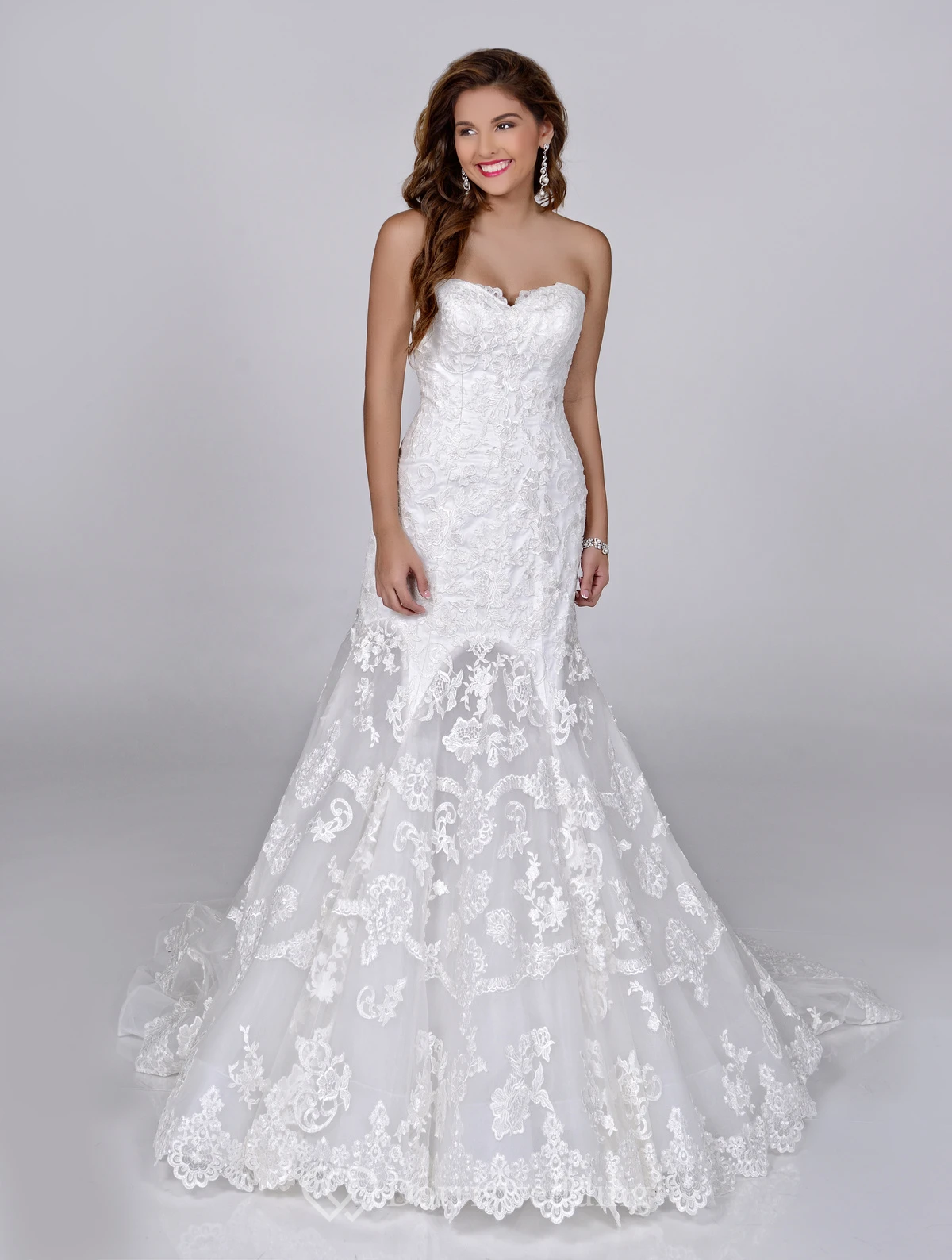Lace Sweetheart Fit And Flare Wedding Dress With Dropped Waist