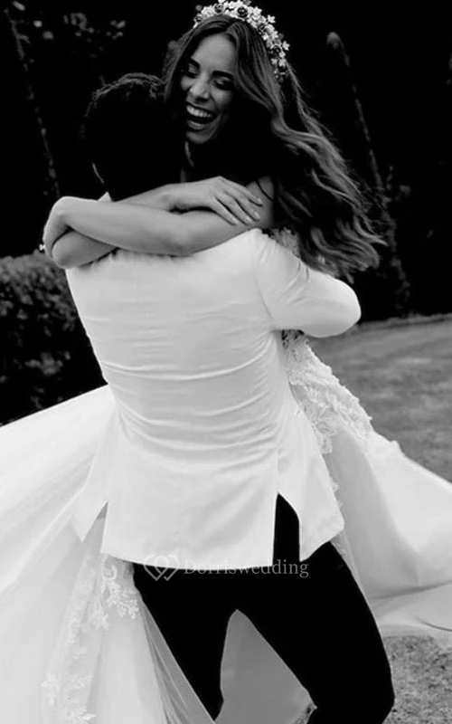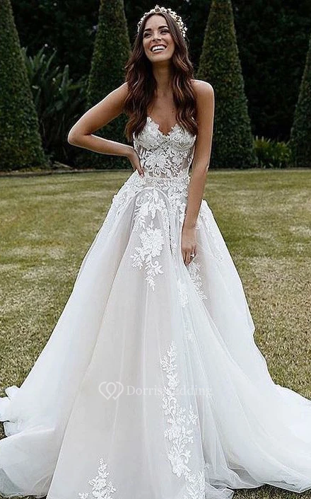 The wedding dress was sewed perfectly, and is quite the elaborate dress at such a reasonable price. The lace and tulle fabric is gorgeous. Thank you so much!