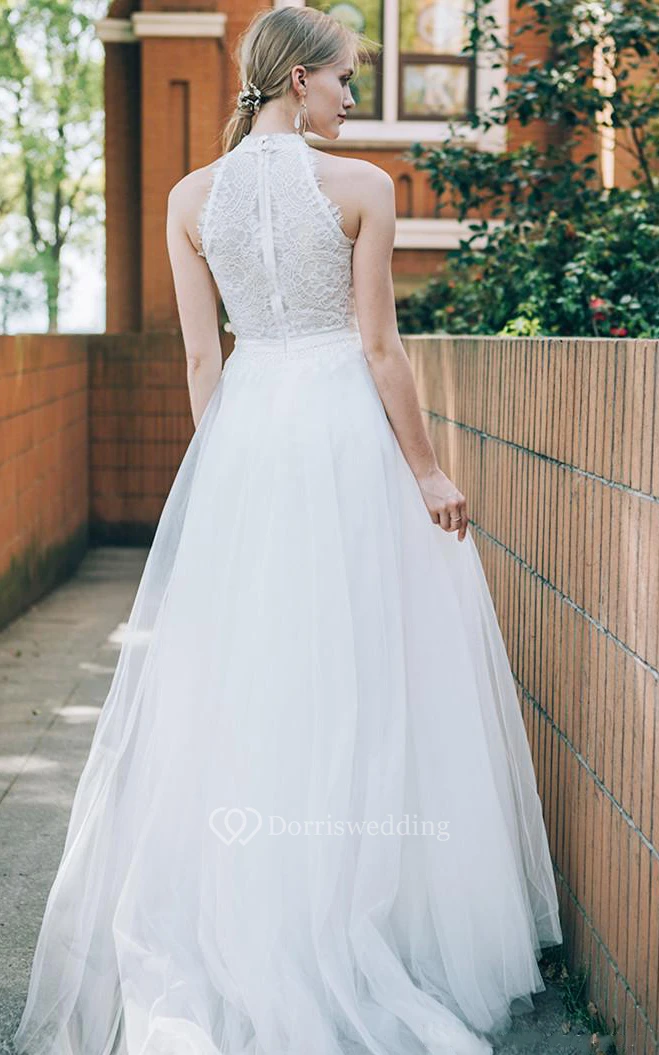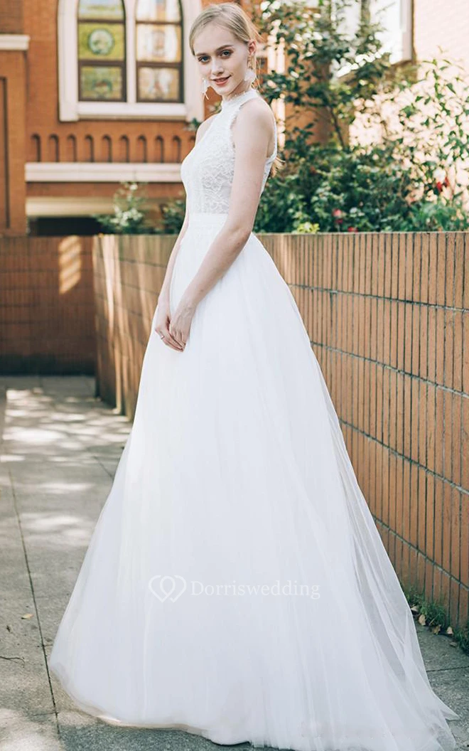 Lace Tulle Floor-length A Line Sleeveless Elegant Ethereal Wedding Dress