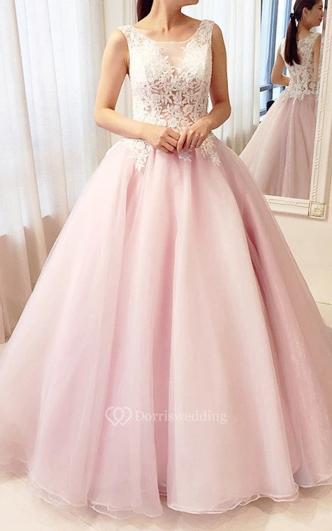Lace Tulle Floor-length Ball Gown Sleeveless Modern Prom Dress with Ruffles