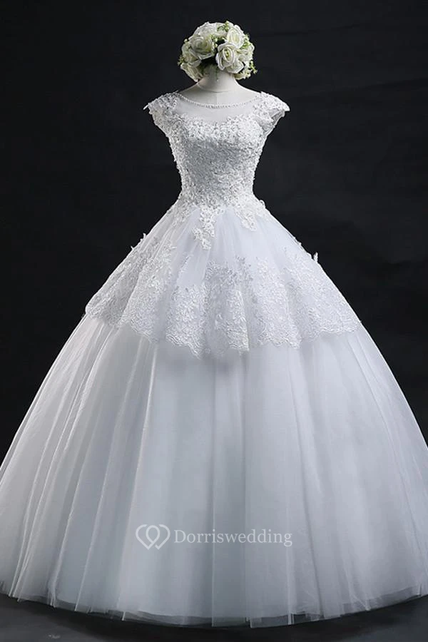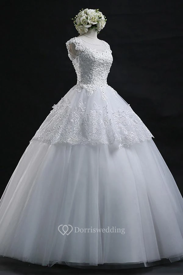Lace-up Lace Tulle Wedding Dress Ball Gown With Appliques