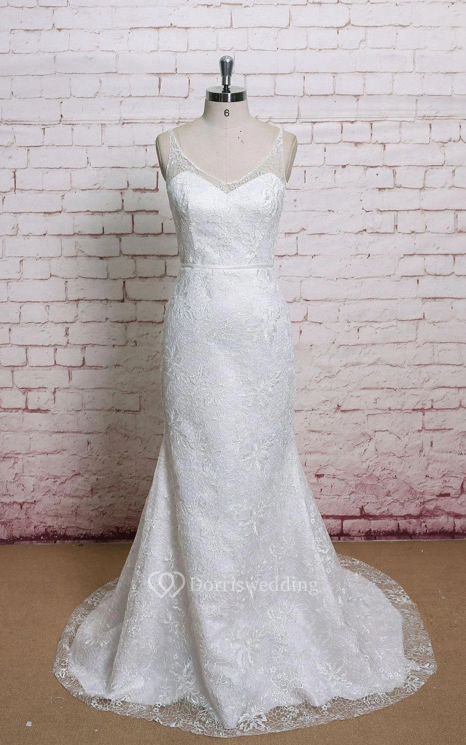 Lace V-Neck Trumpet Sleeveless Dress With Low-V Back