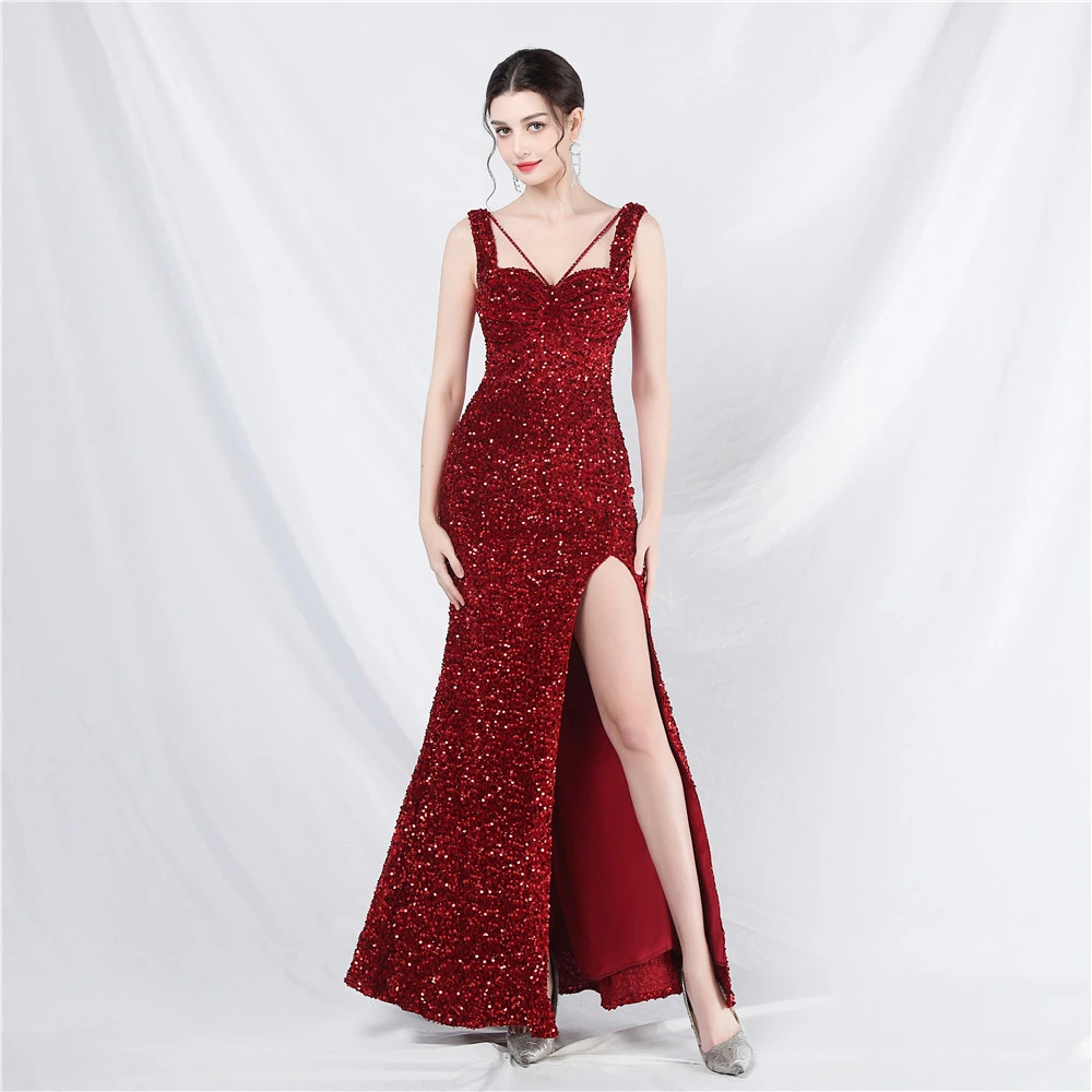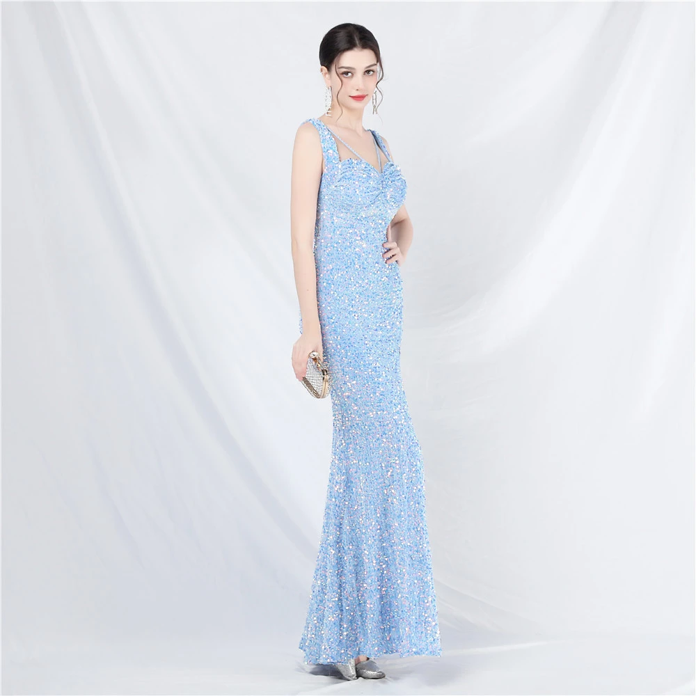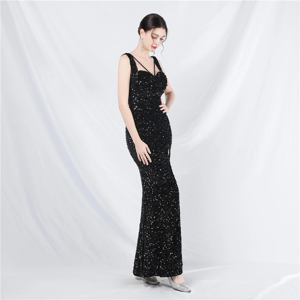 Ladies And Celebrities Stunning Hand-Made Sequined Long Evening Dress
