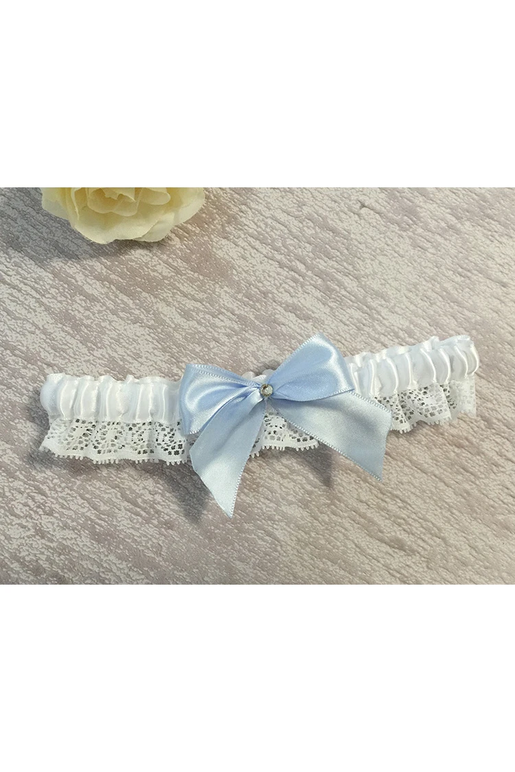 Large Light Blue Bow Lace Elastic Garter Within 16-23inch