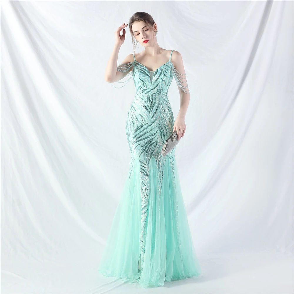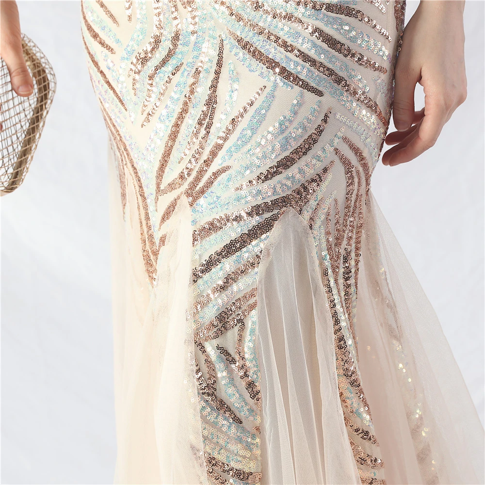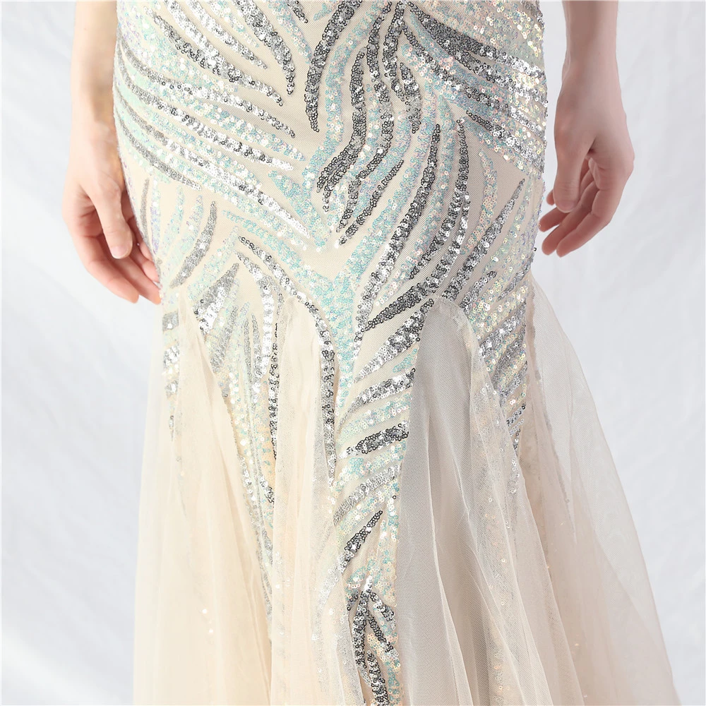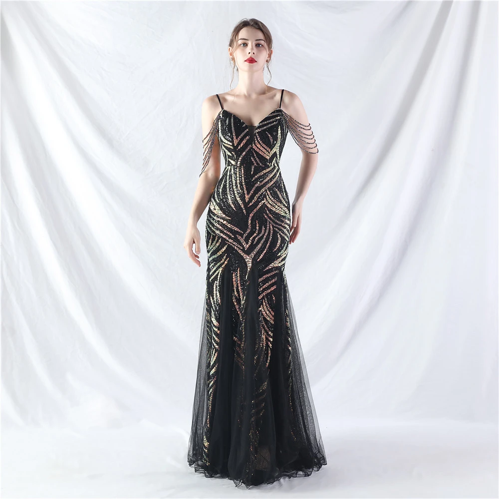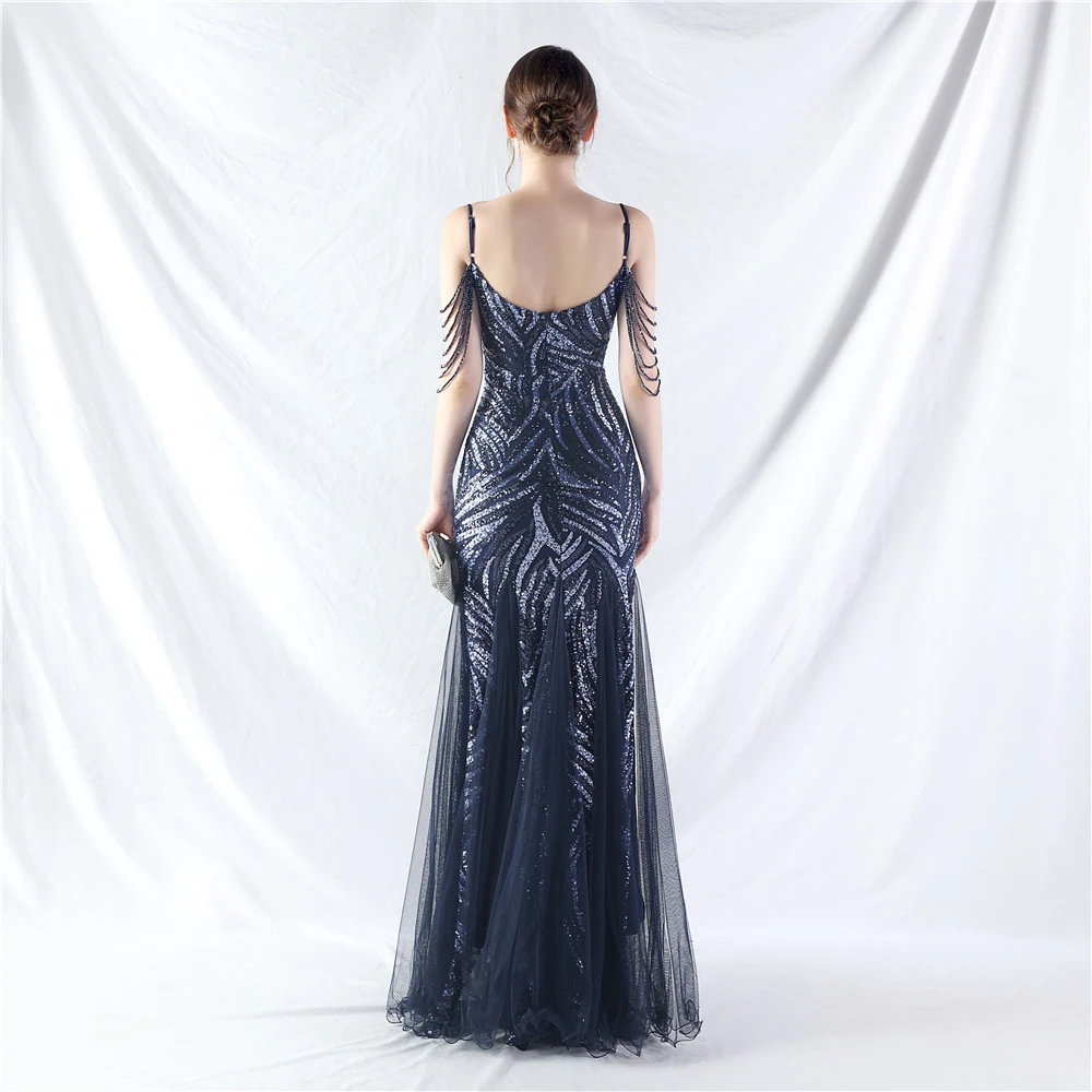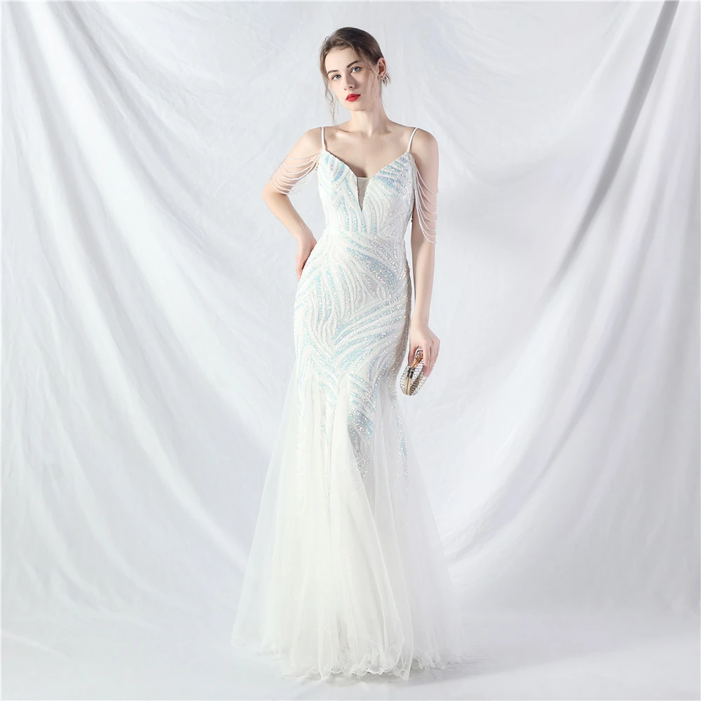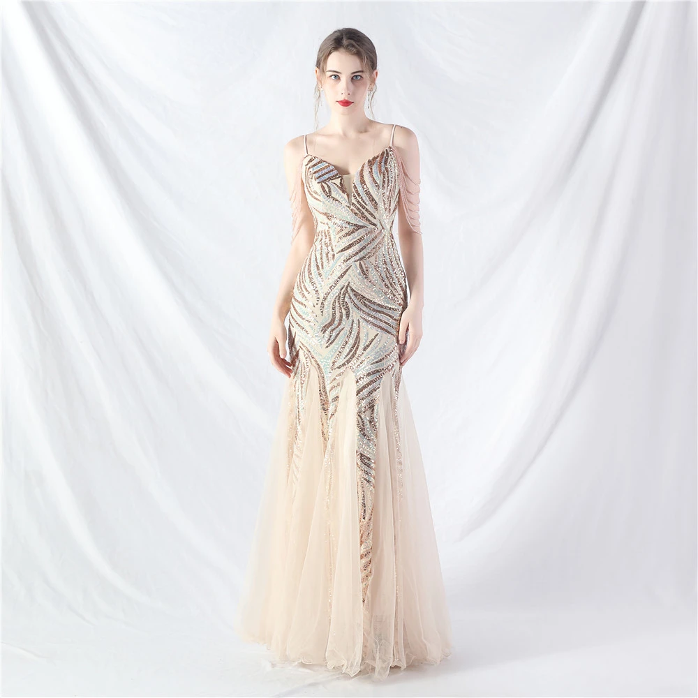 Layered Beads Spliced Mesh High-End Evening Dress