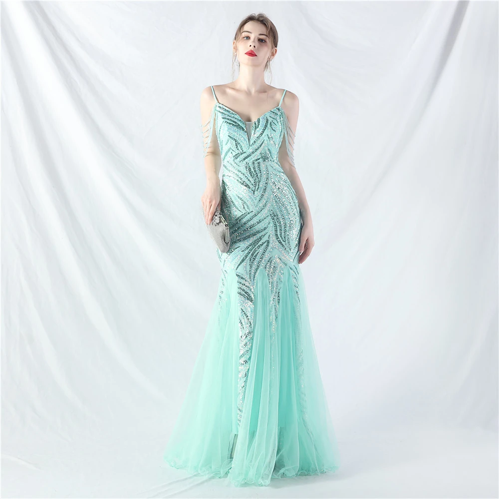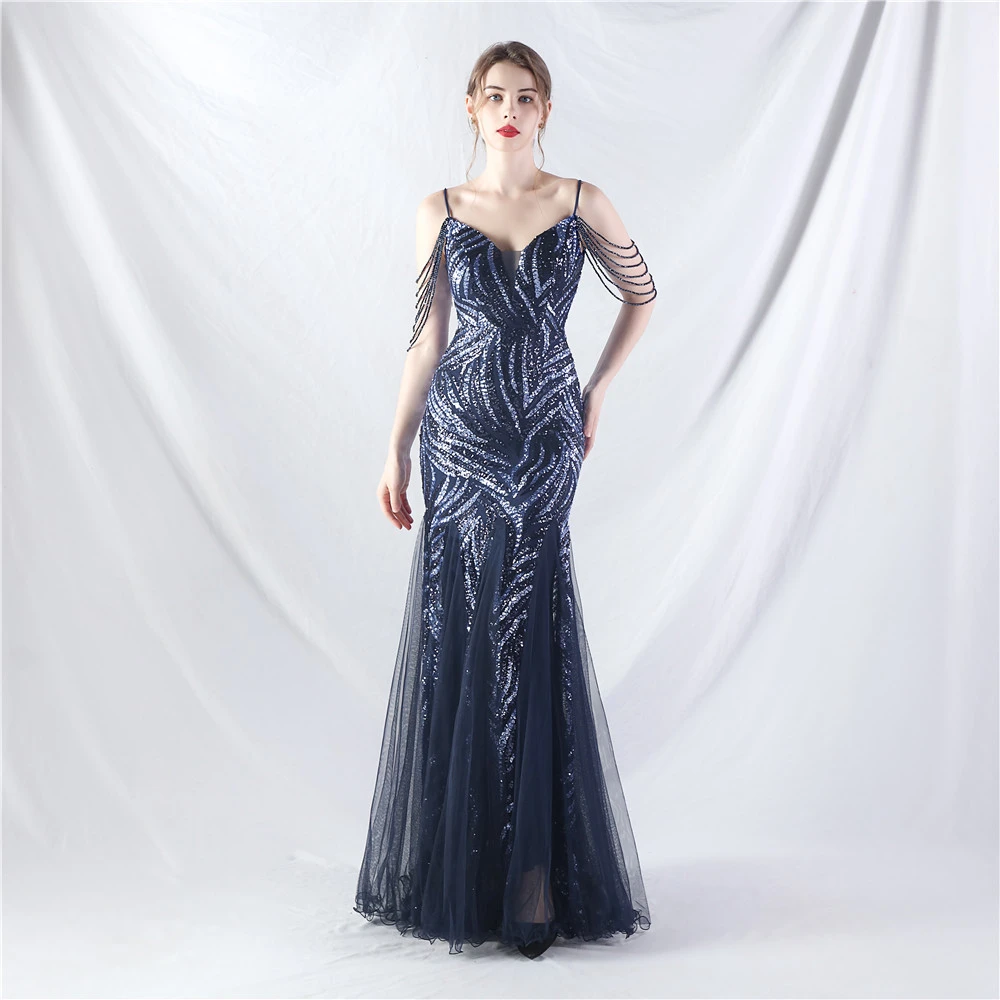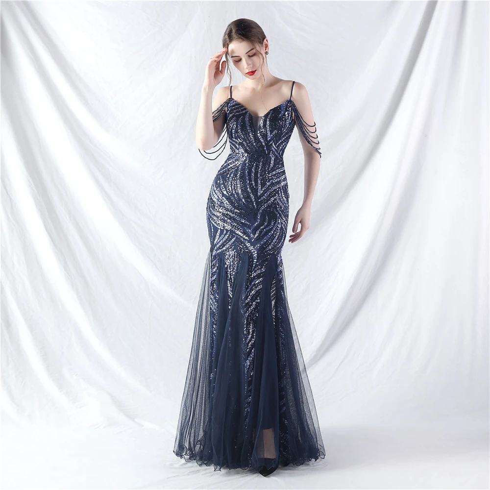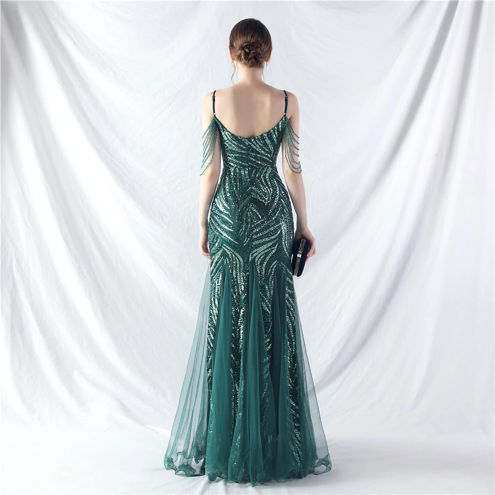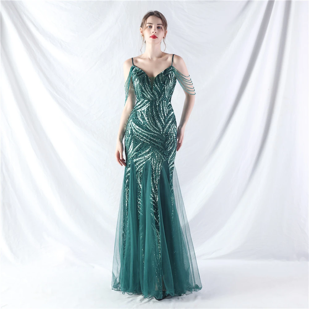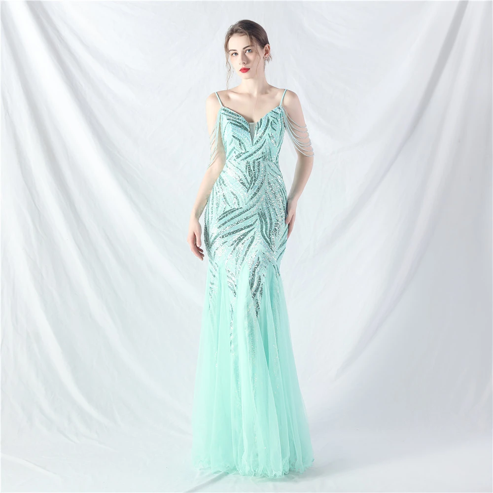 Layered Beads Spliced Mesh High-End Evening Dress