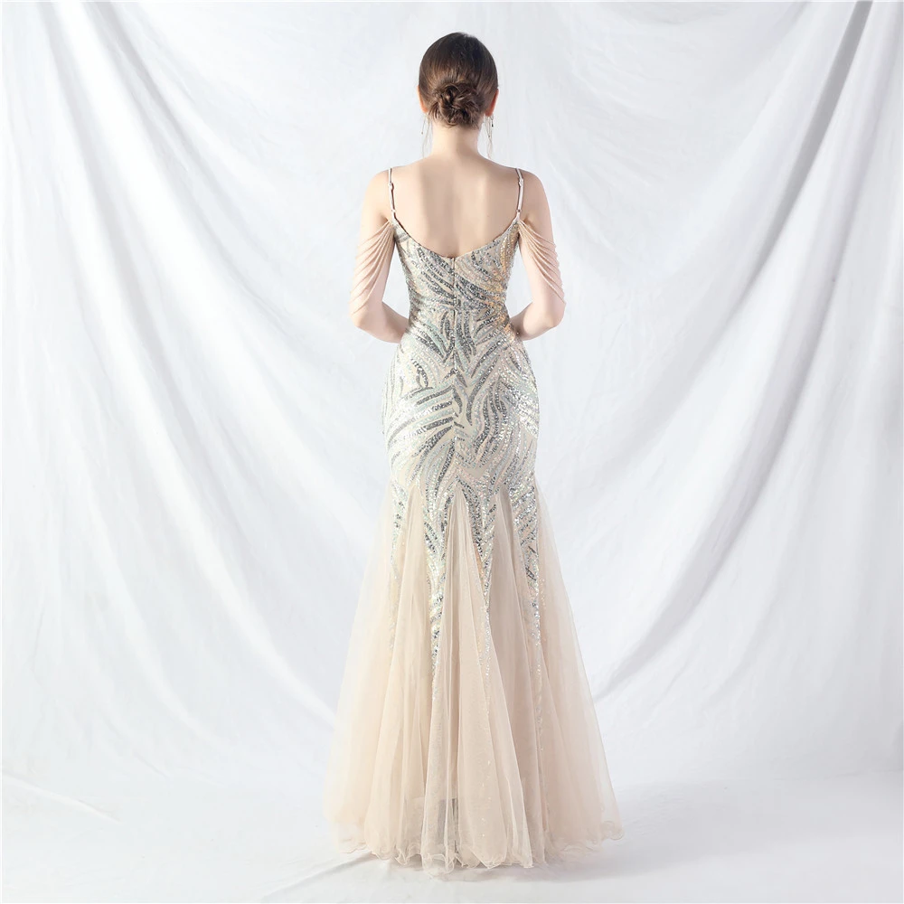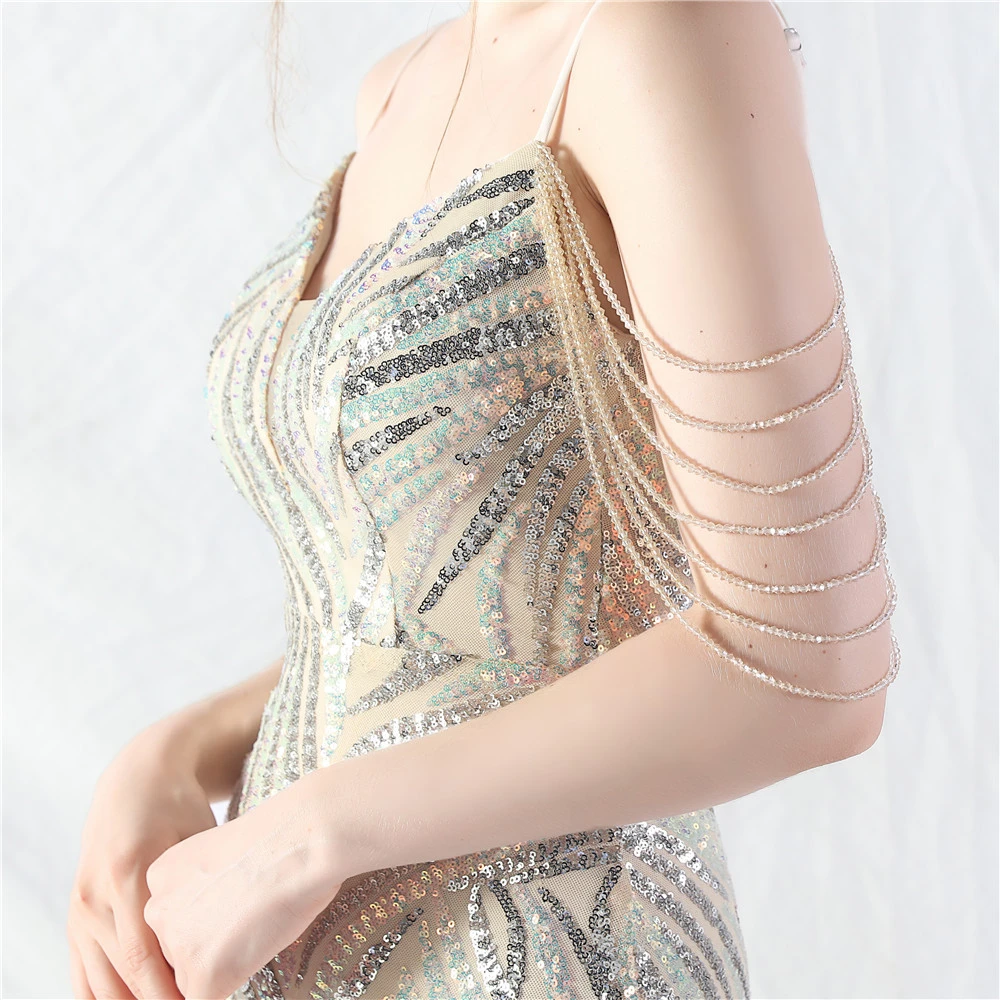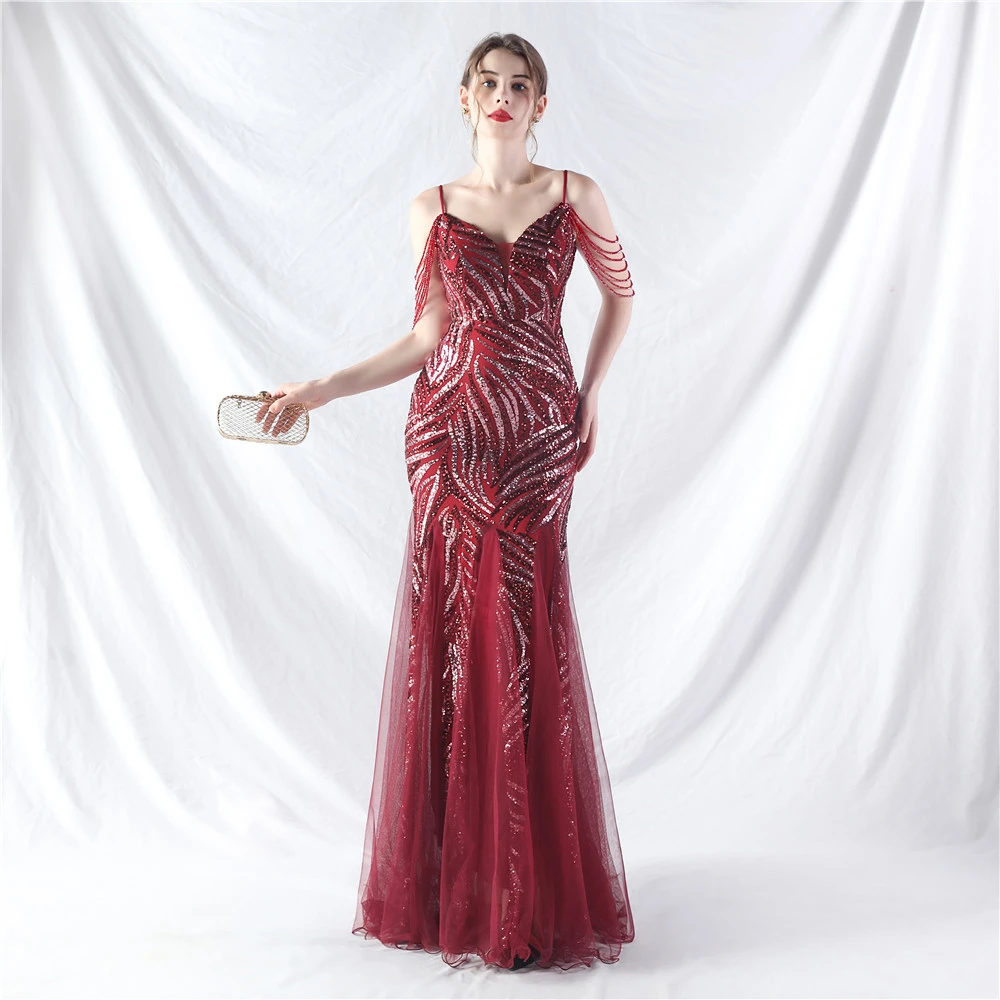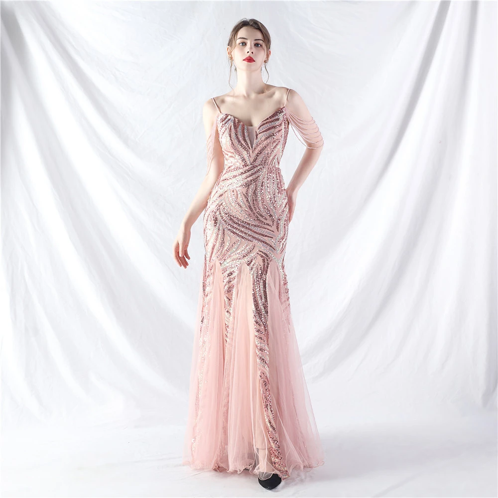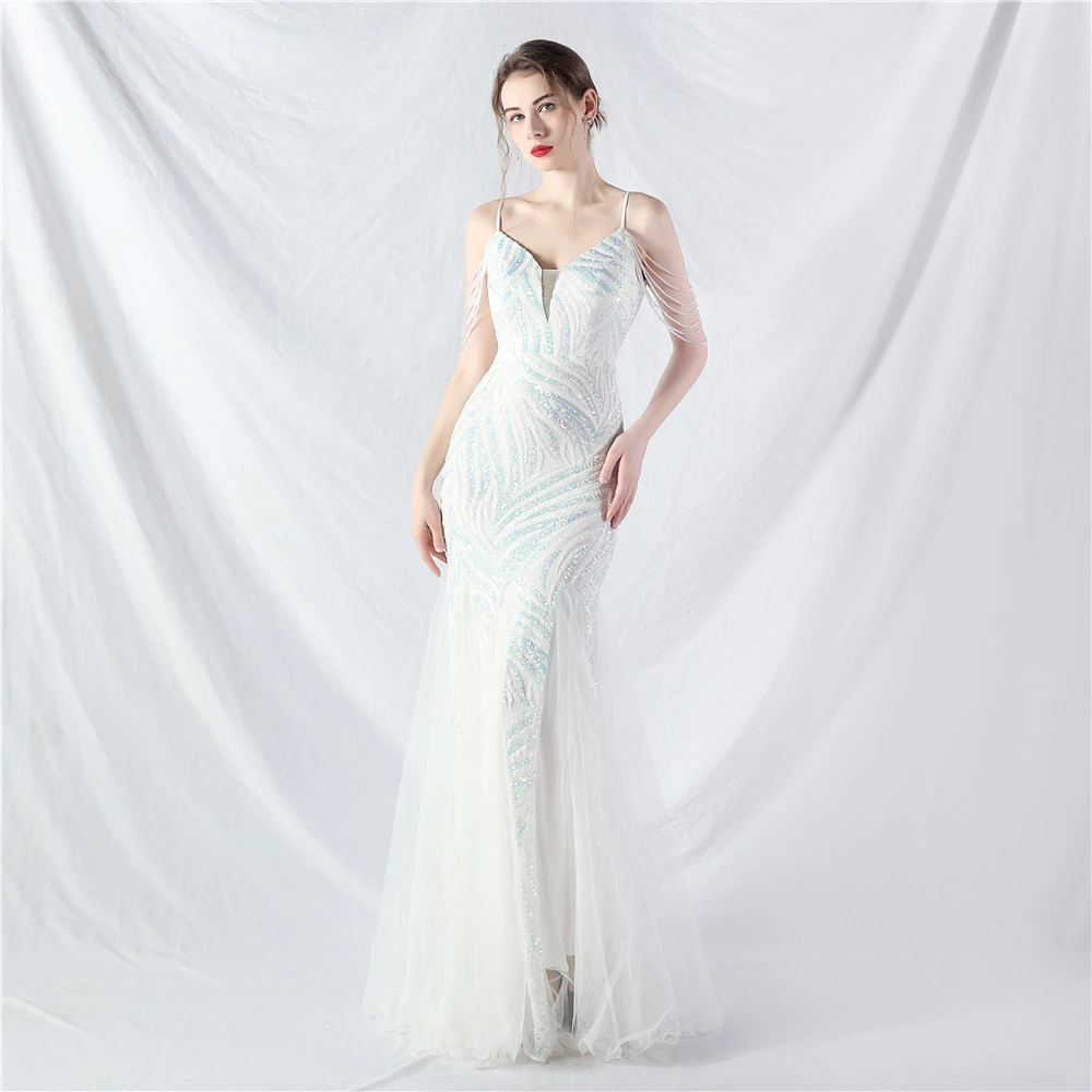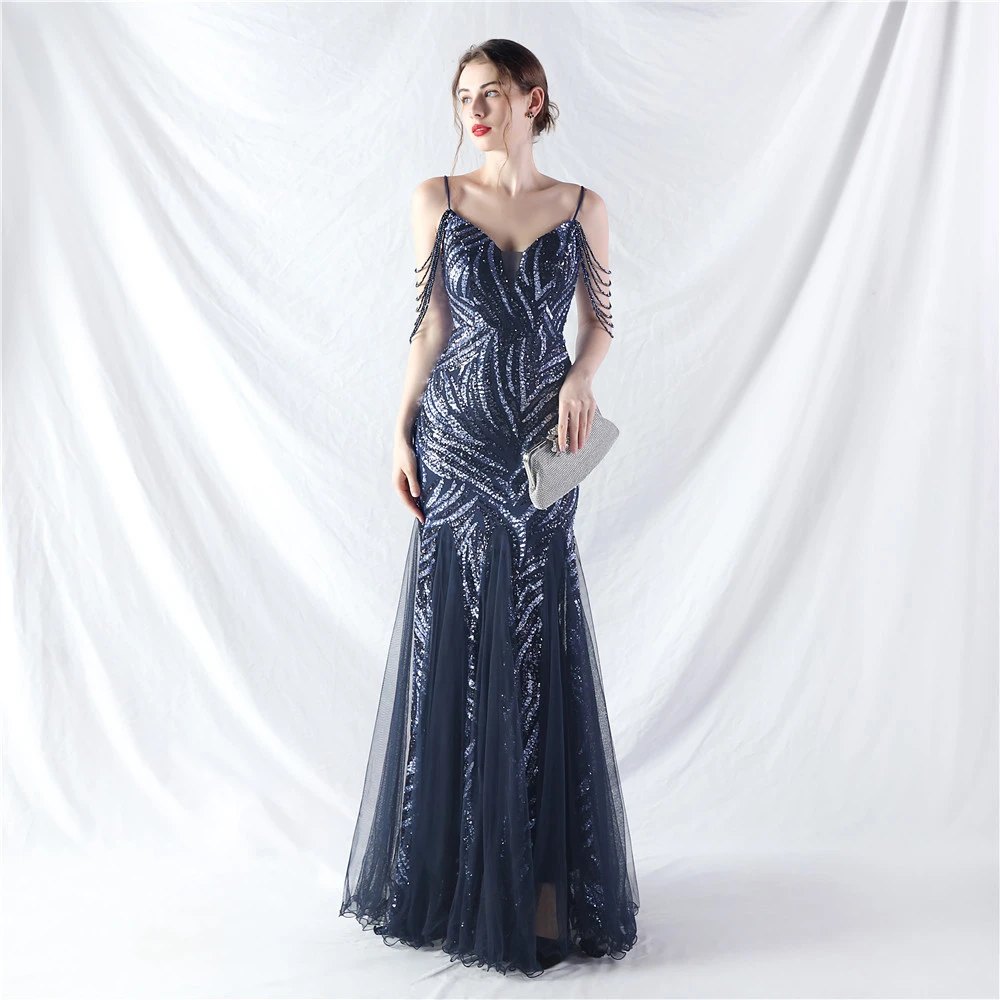 Layered Beads Spliced Mesh High-End Evening Dress