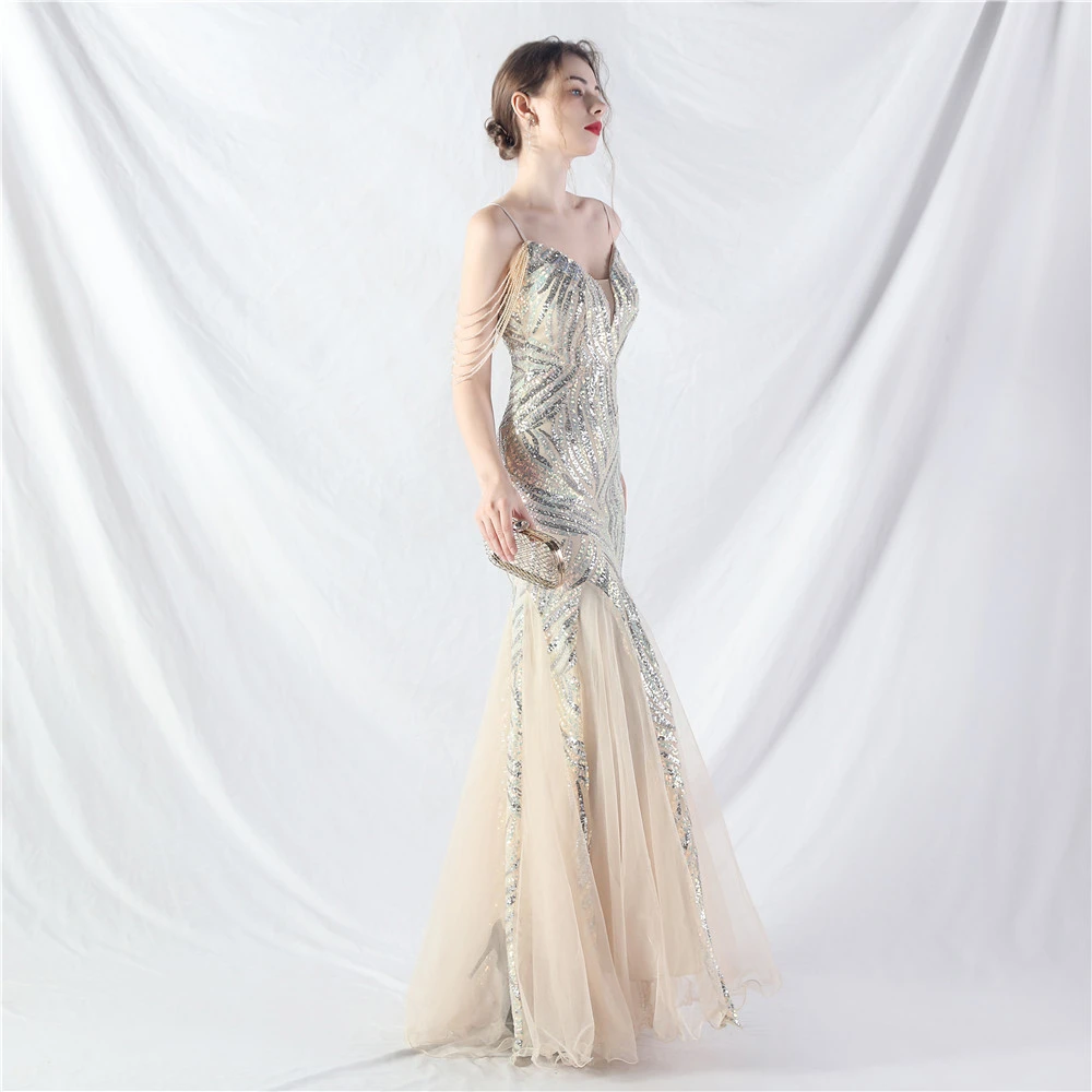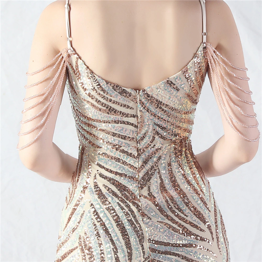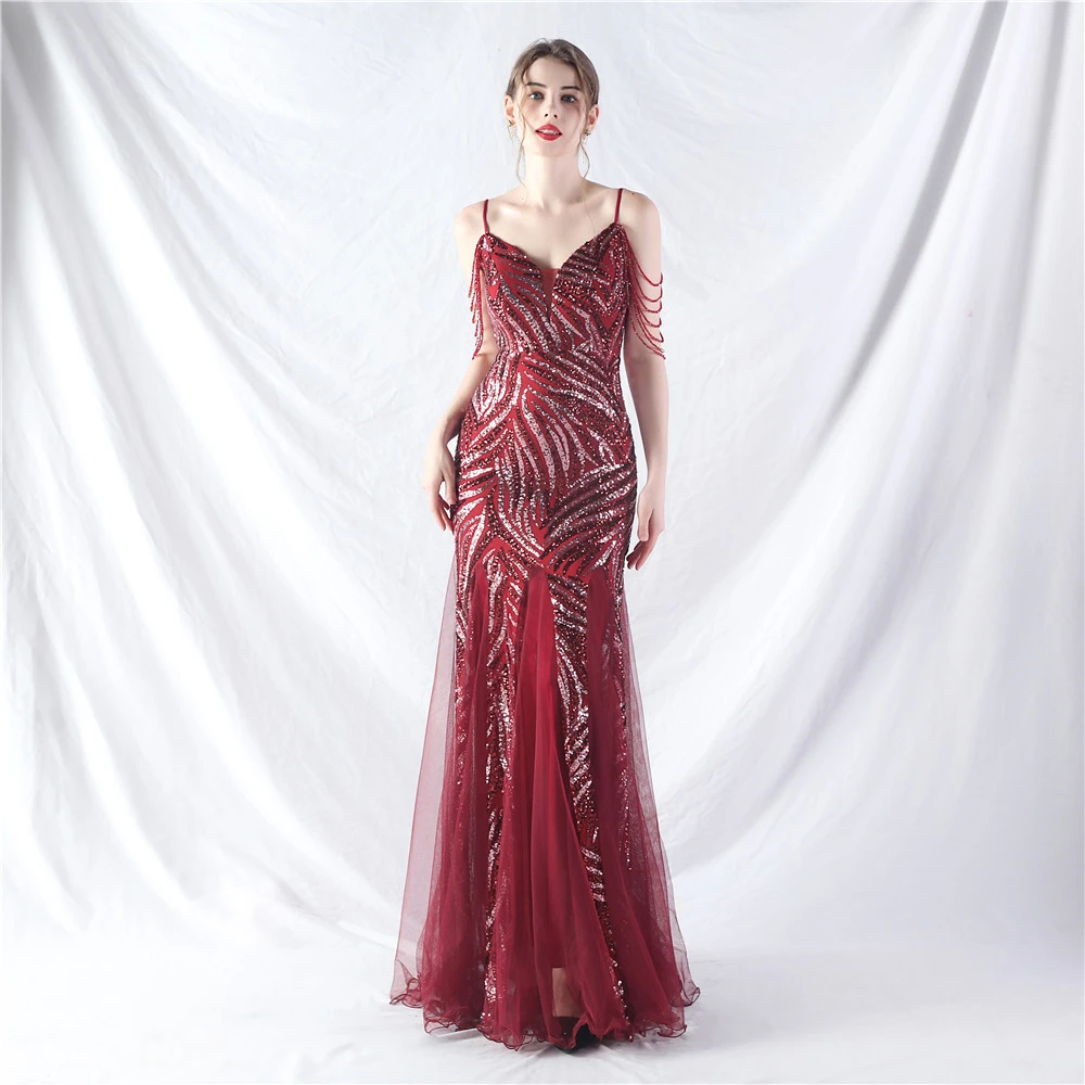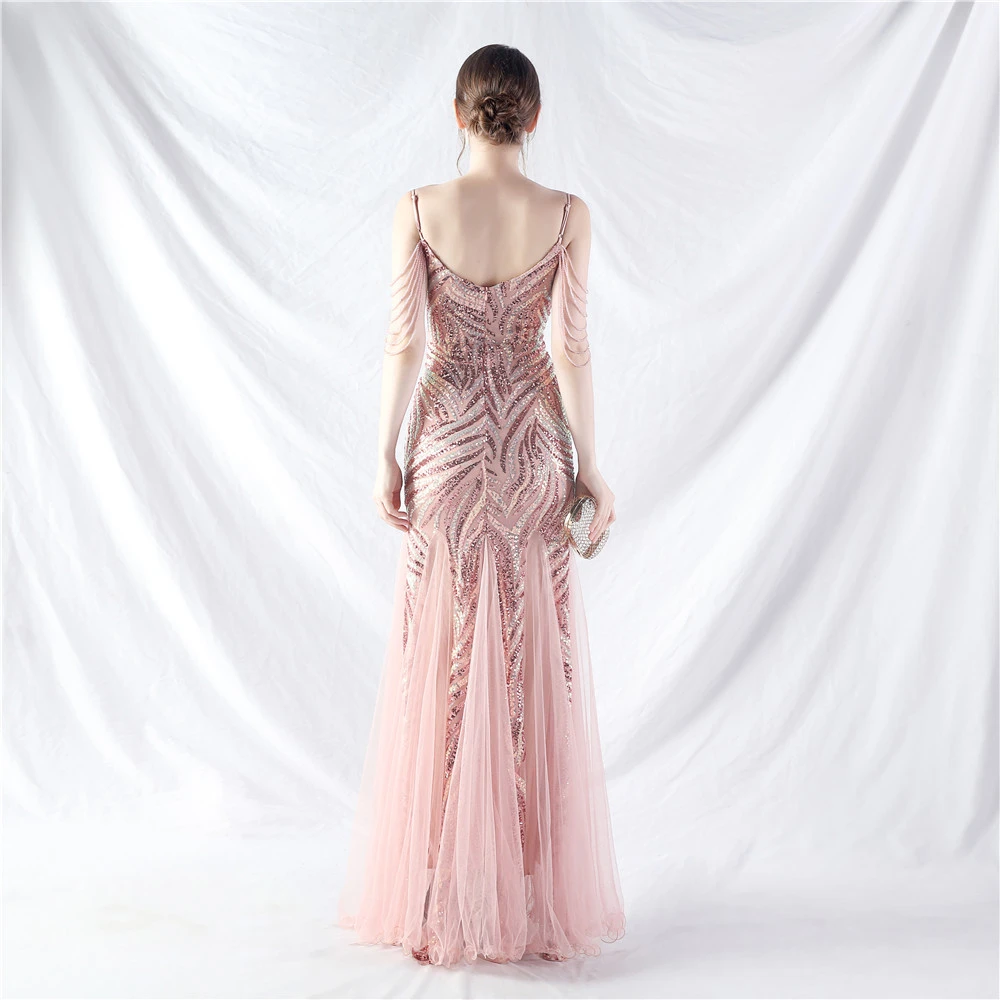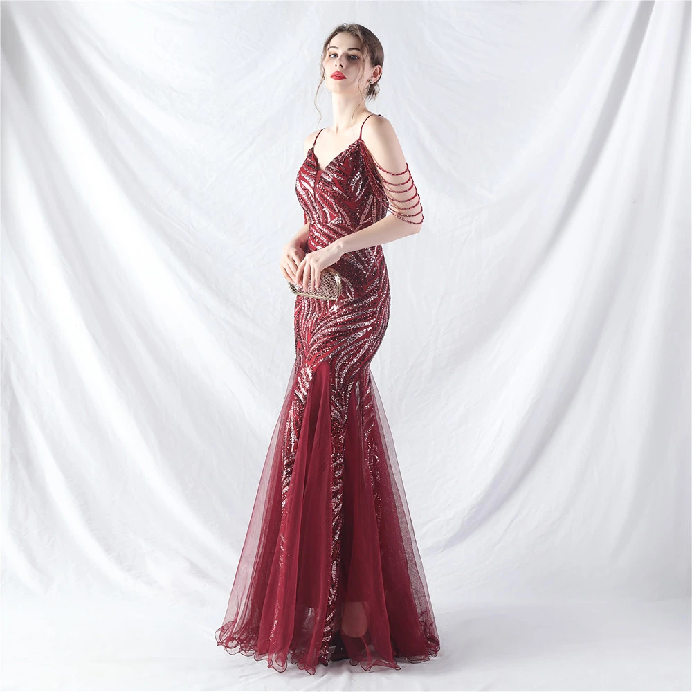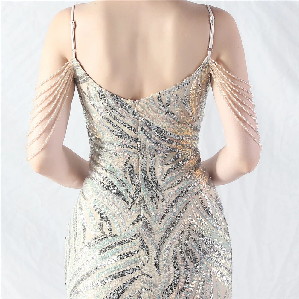 Layered Beads Spliced Mesh High-End Evening Dress