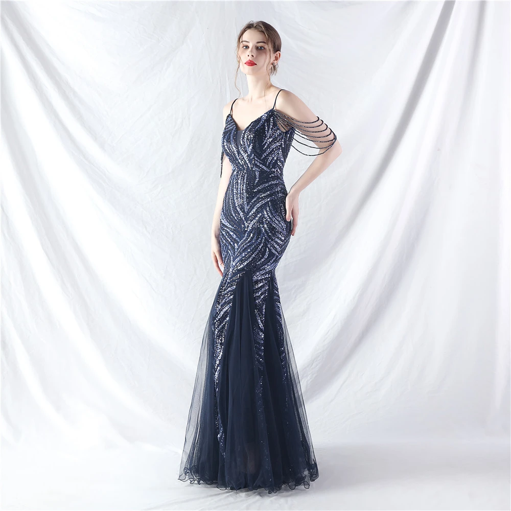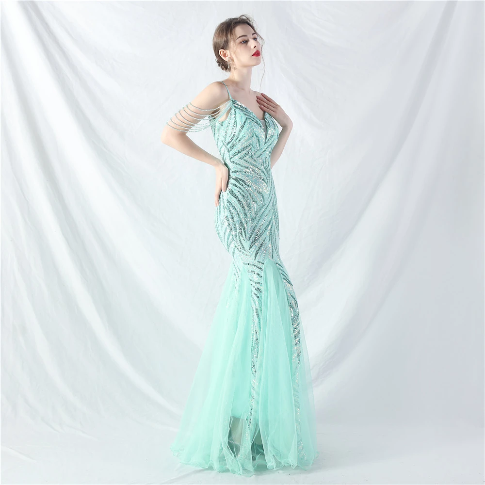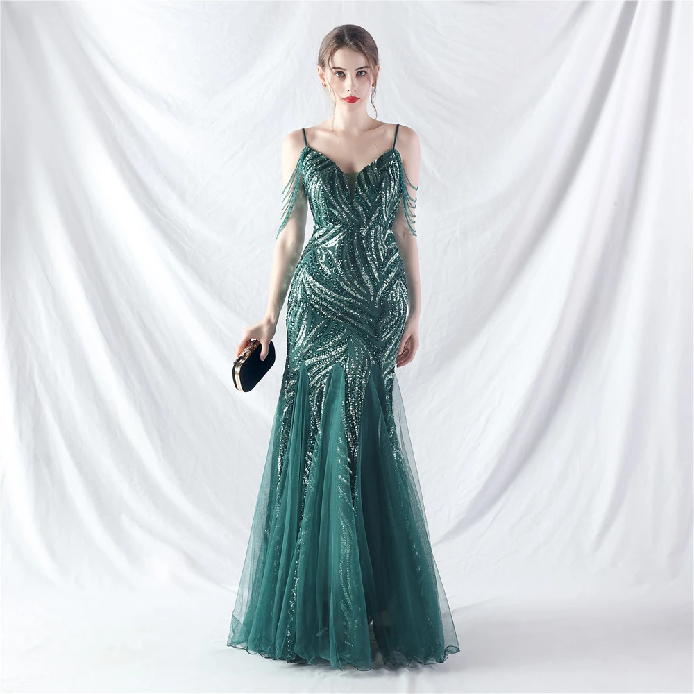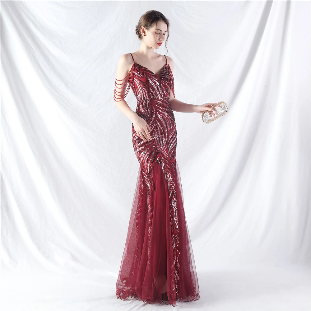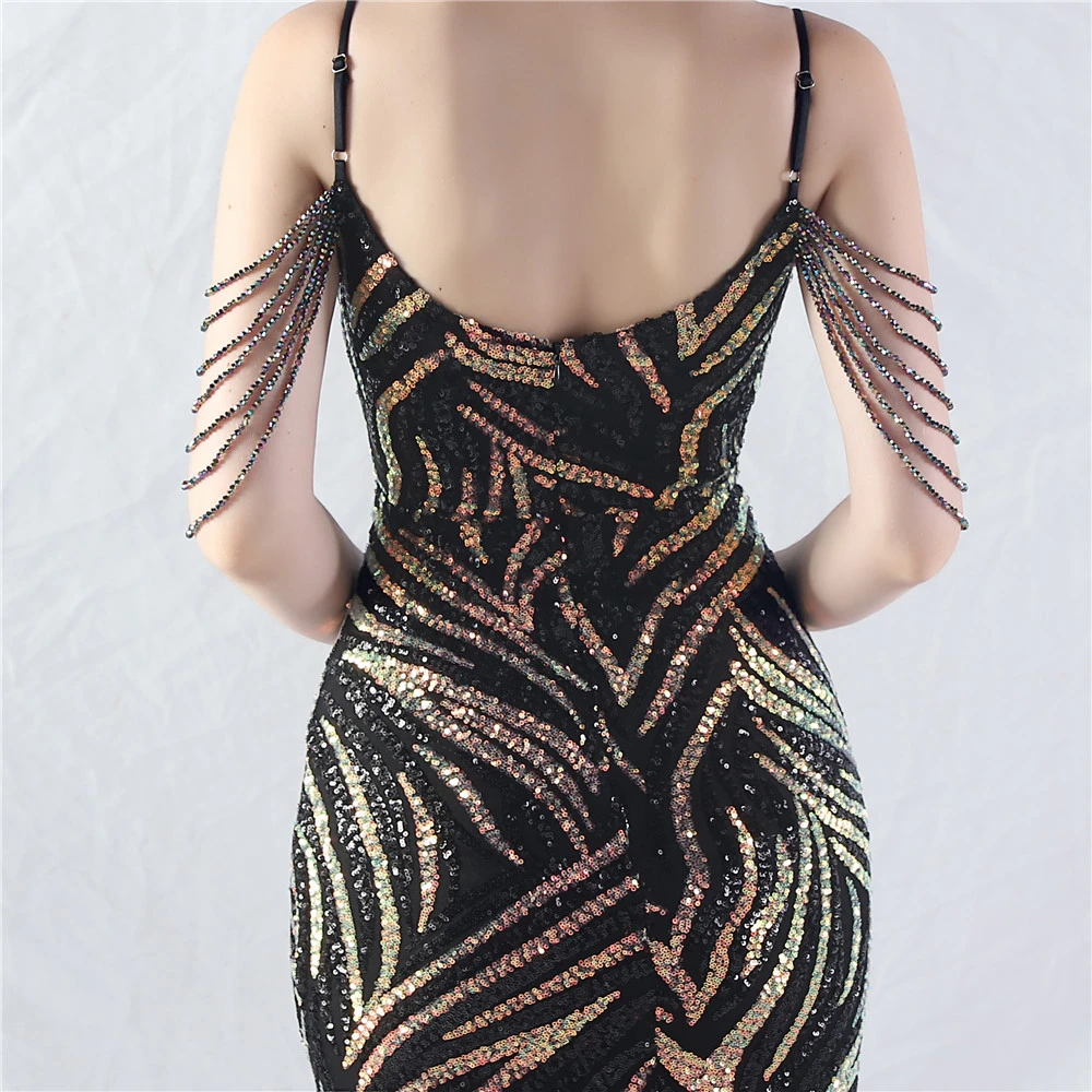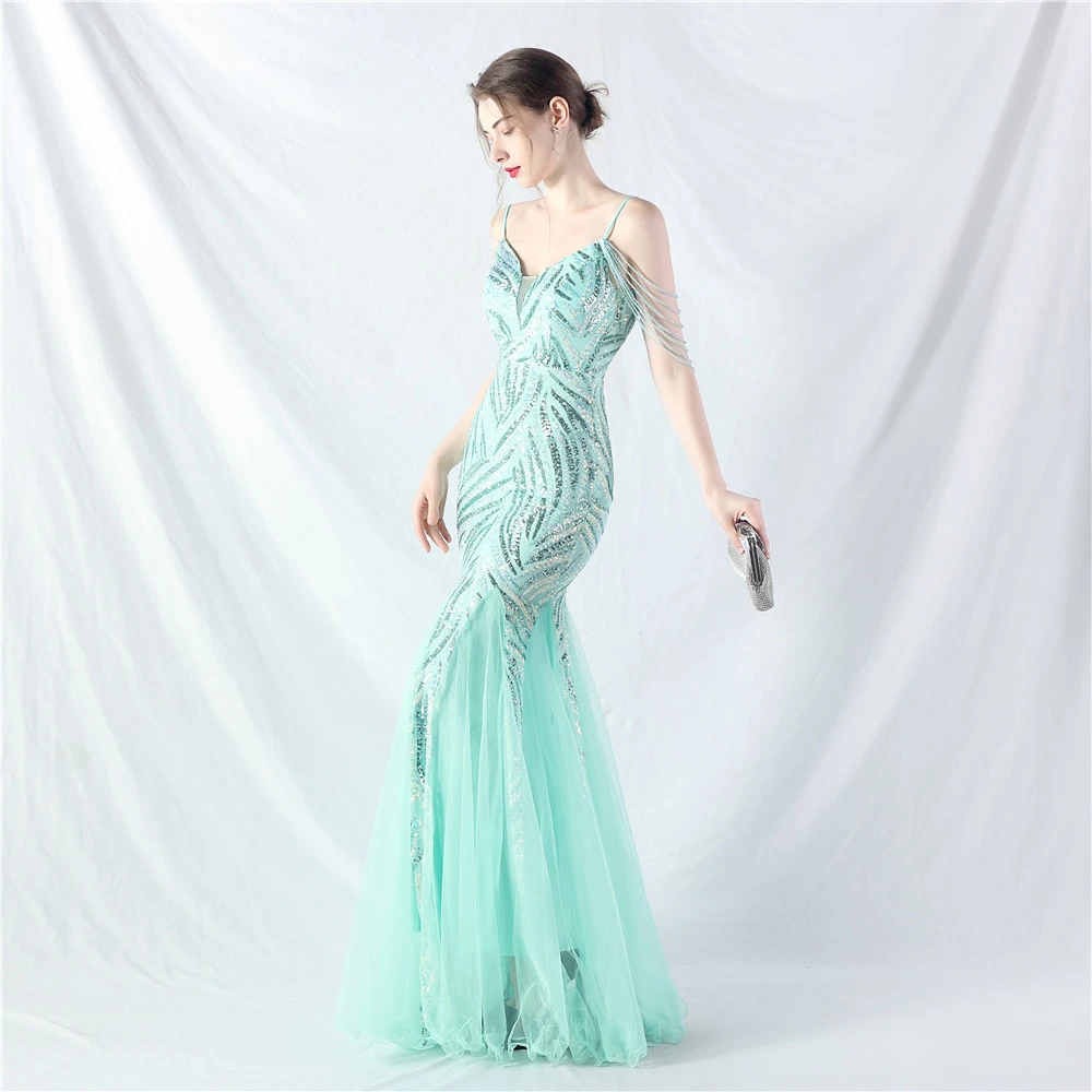 Layered Beads Spliced Mesh High-End Evening Dress