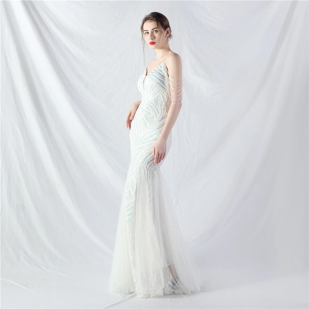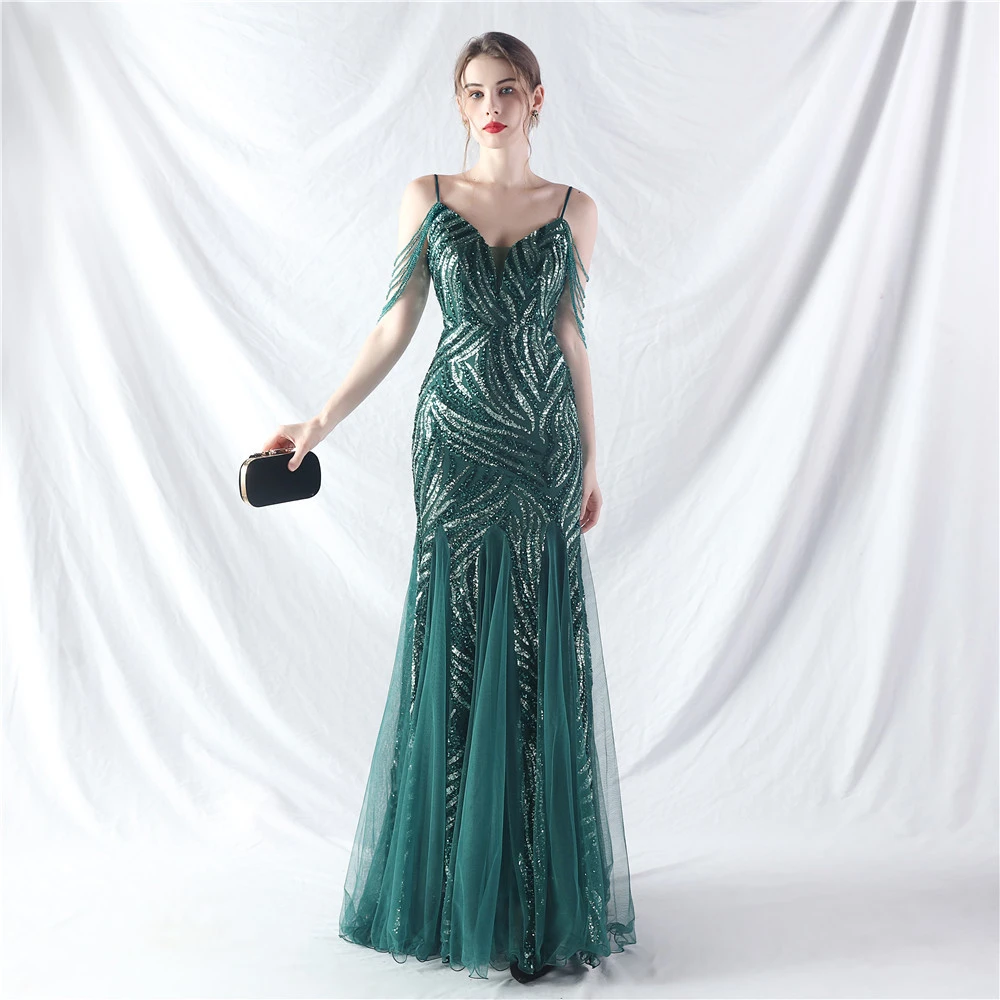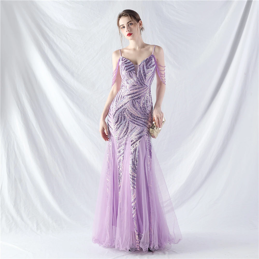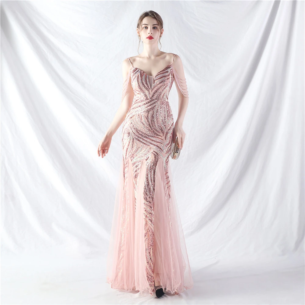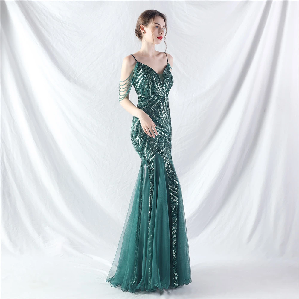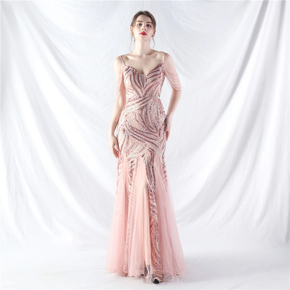 Layered Beads Spliced Mesh High-End Evening Dress
