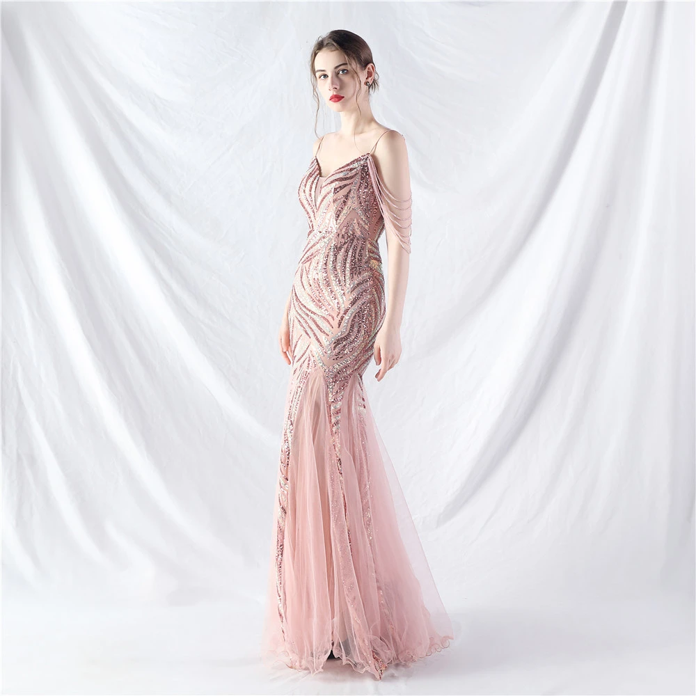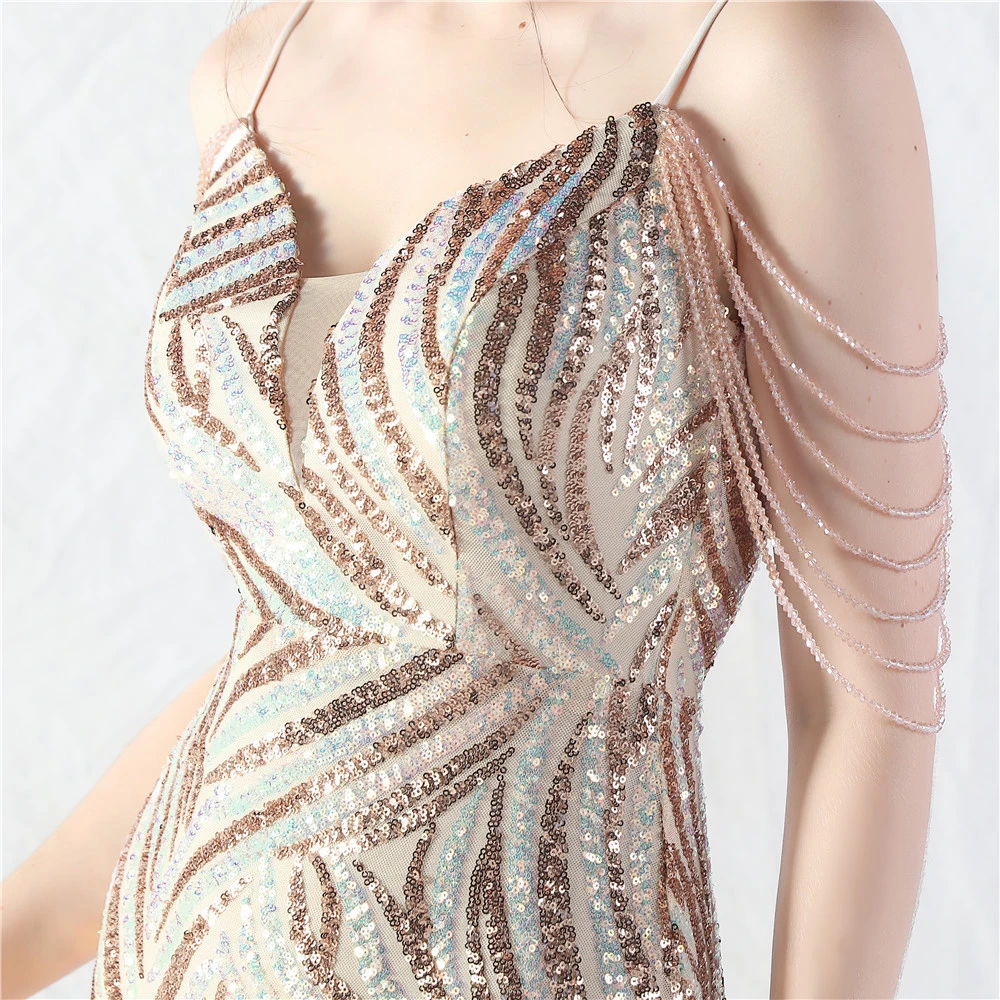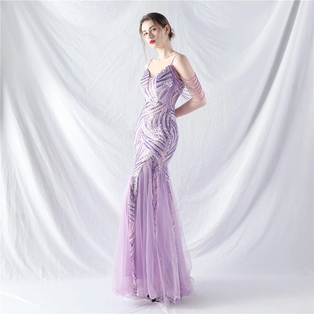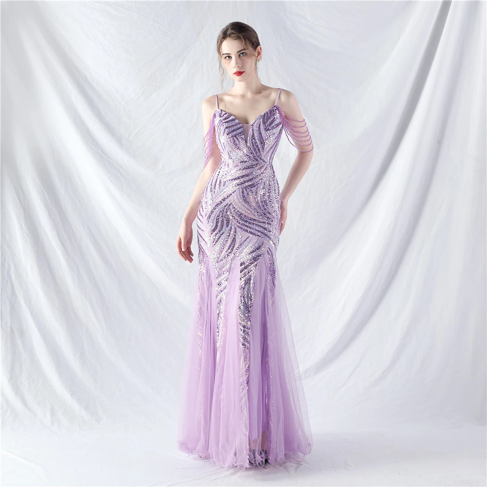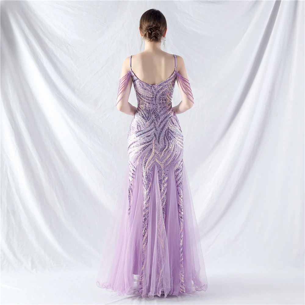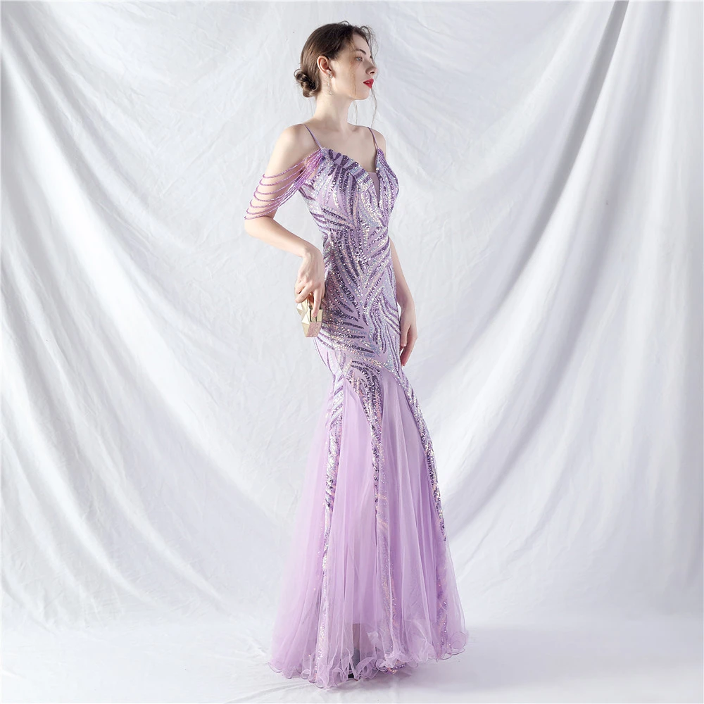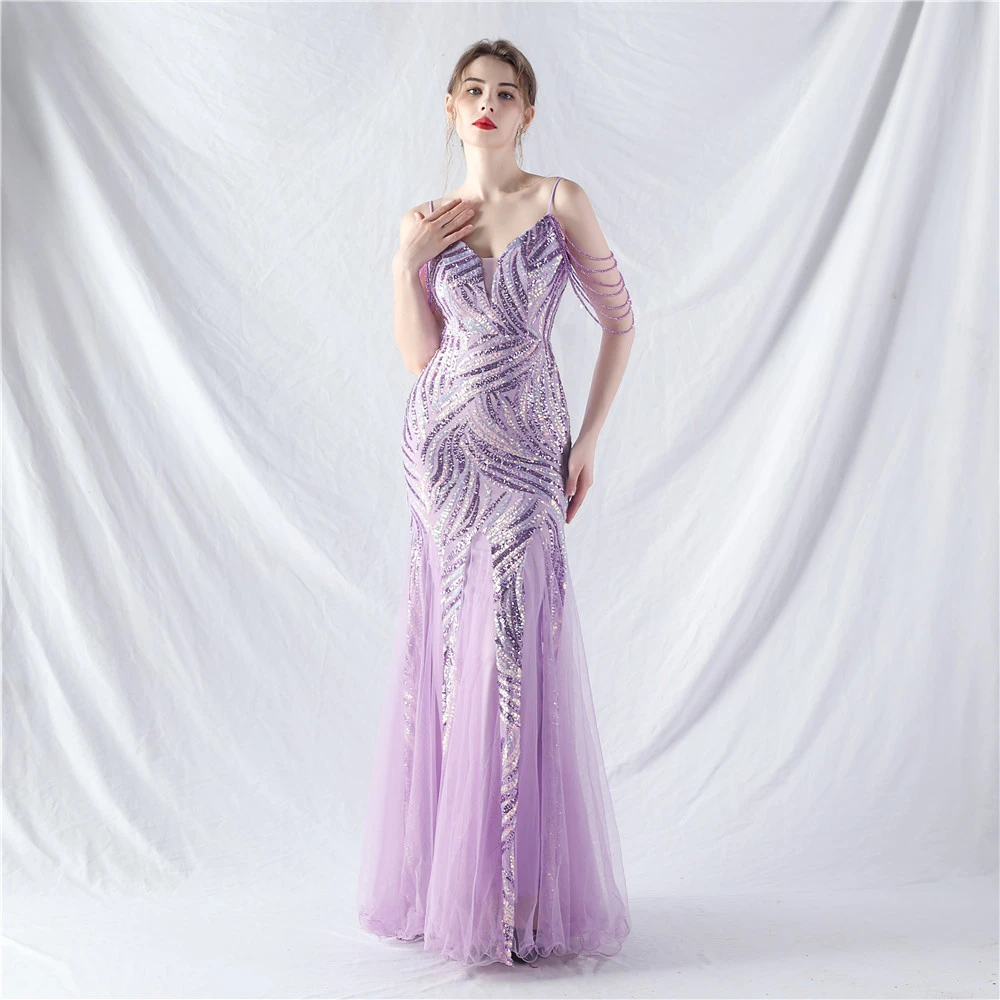 Layered Beads Spliced Mesh High-End Evening Dress