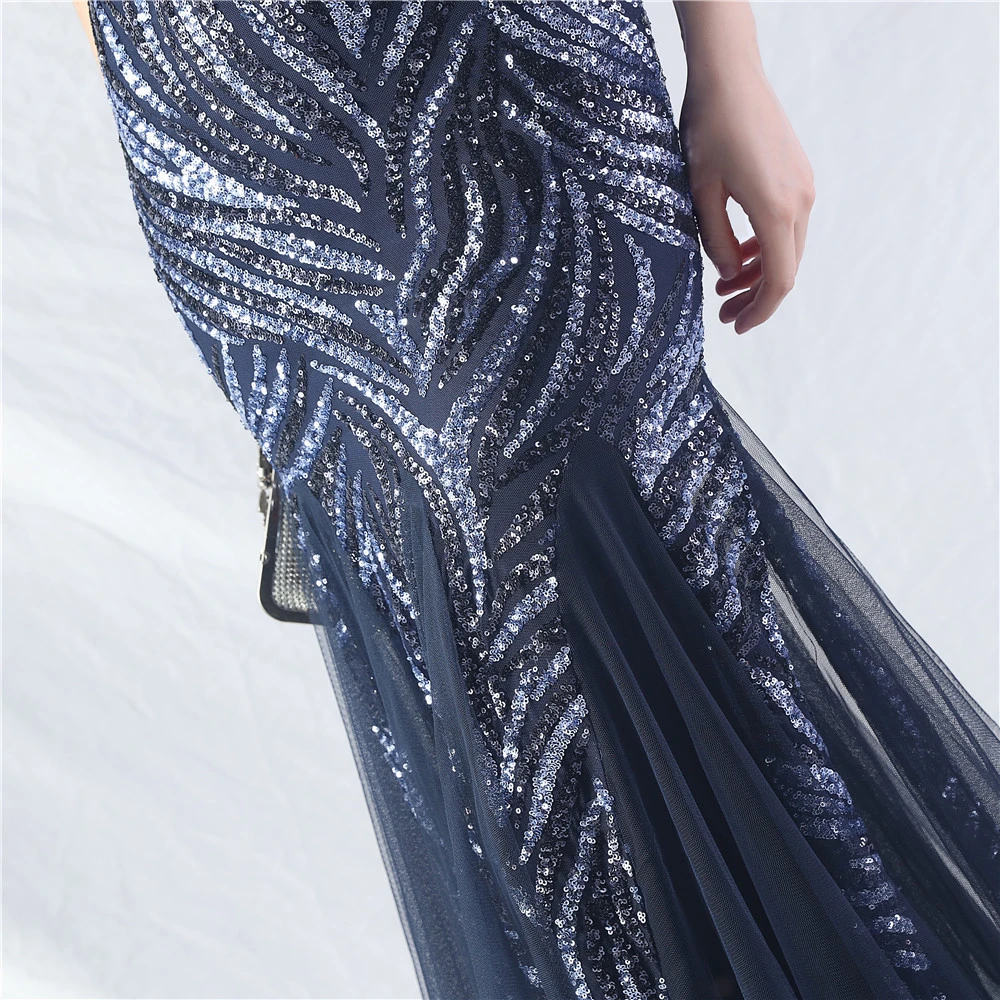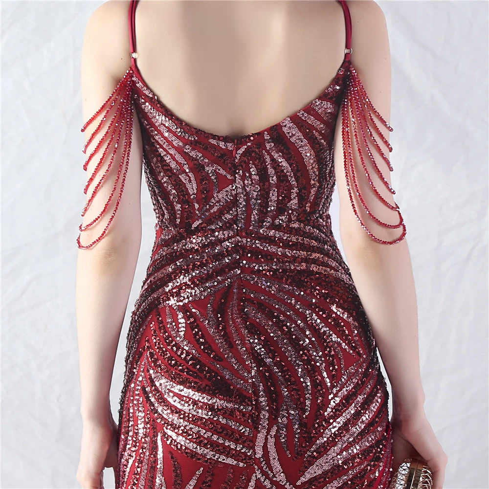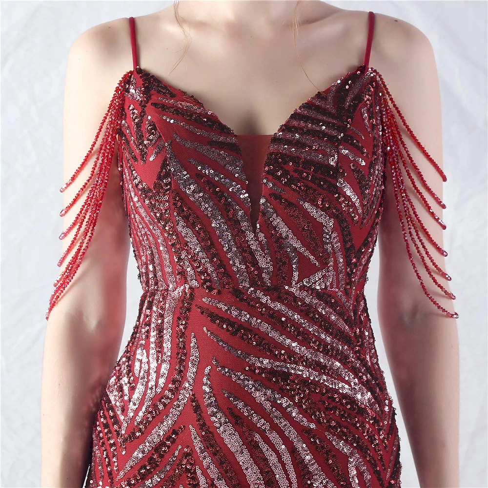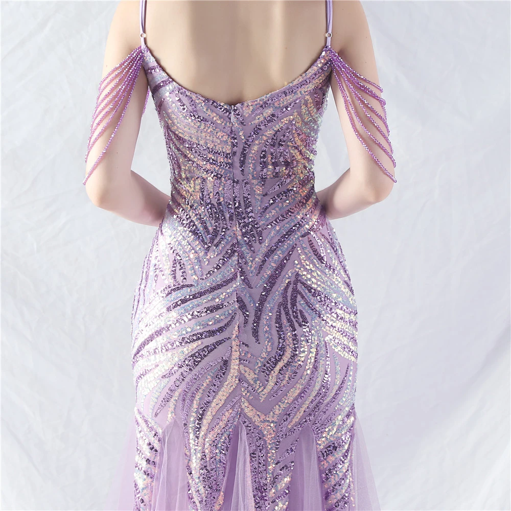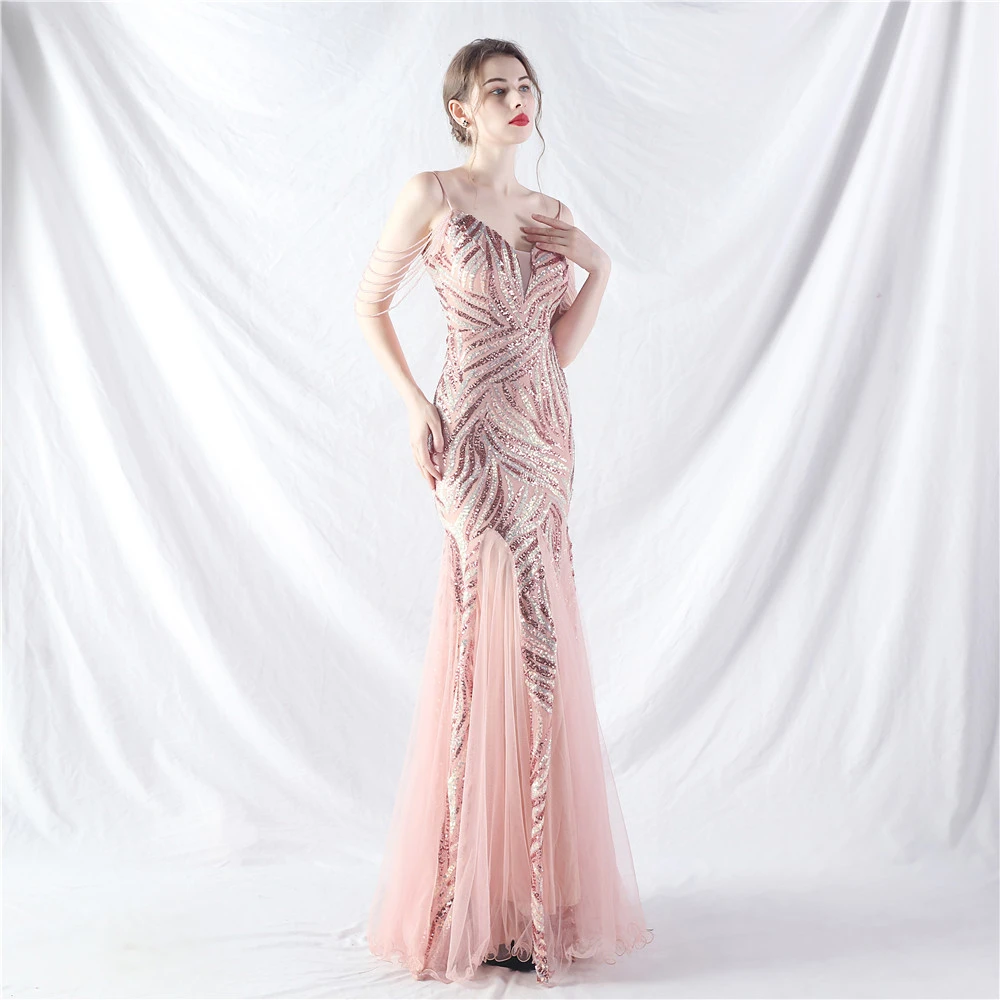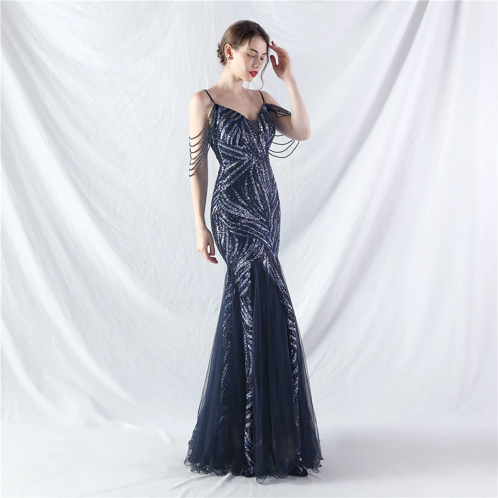 Layered Beads Spliced Mesh High-End Evening Dress