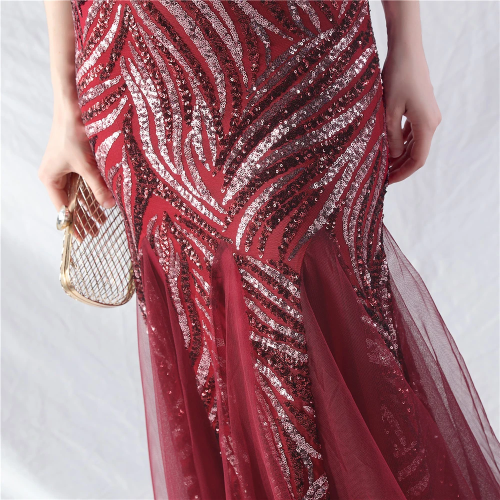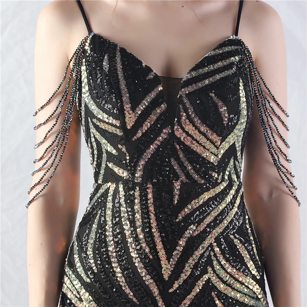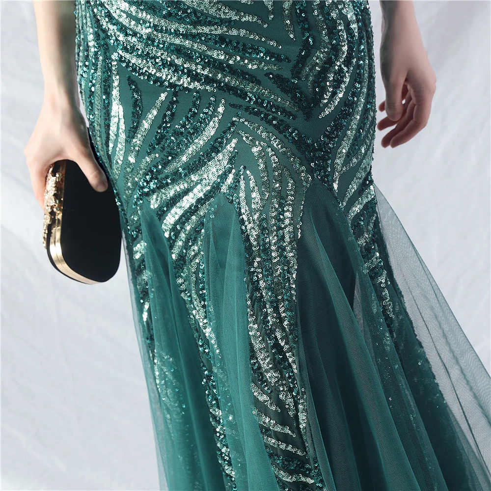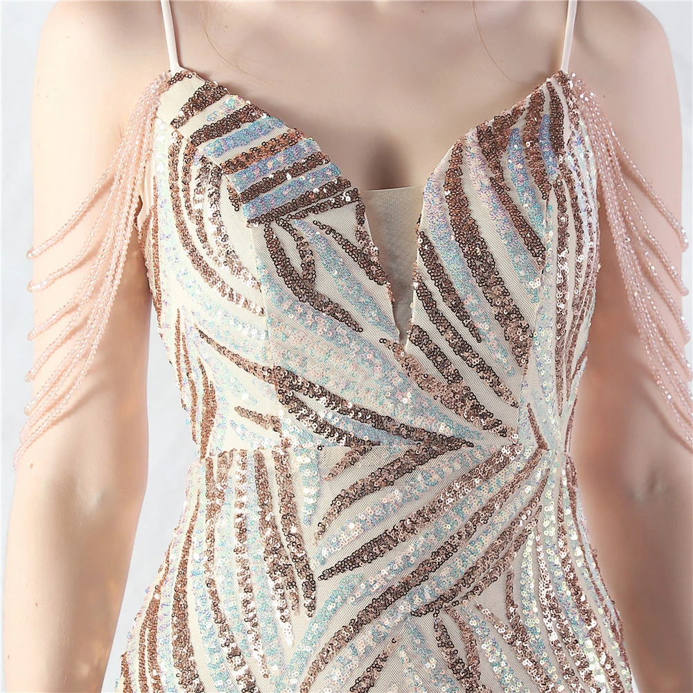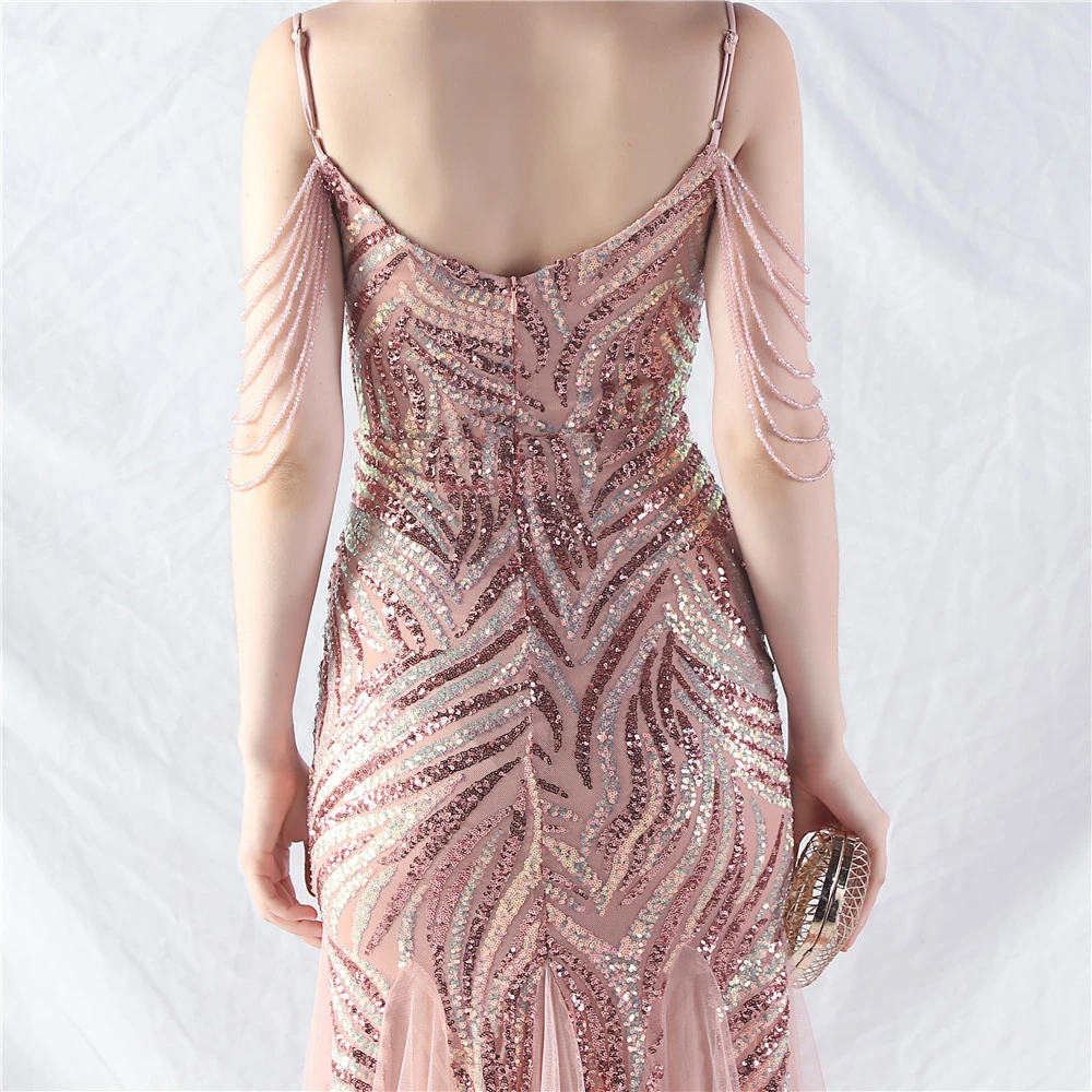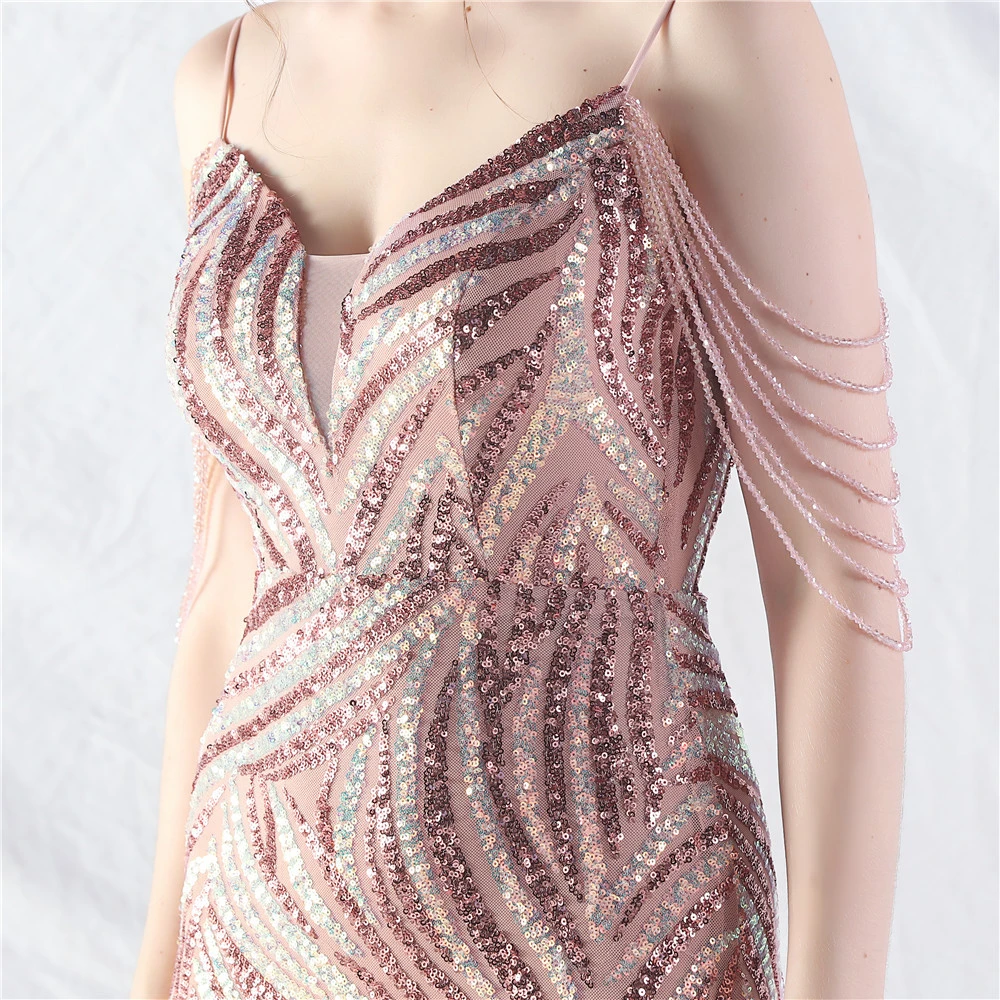Layered Beads Spliced Mesh High-End Evening Dress