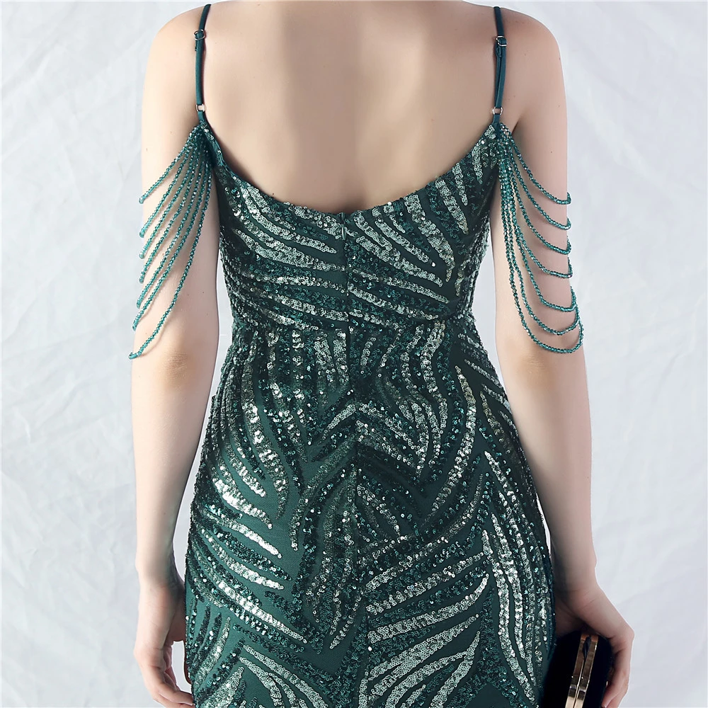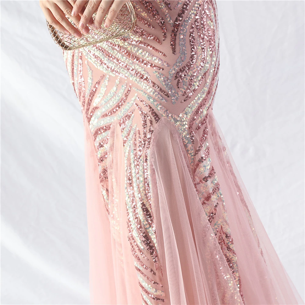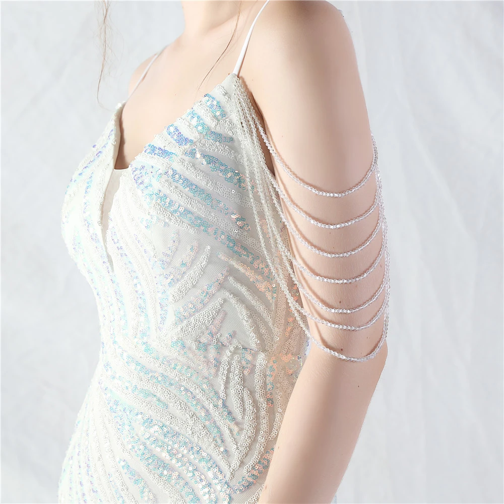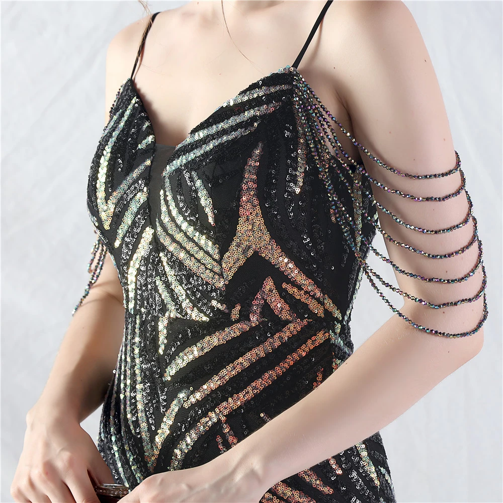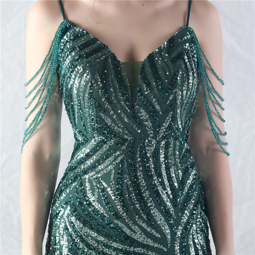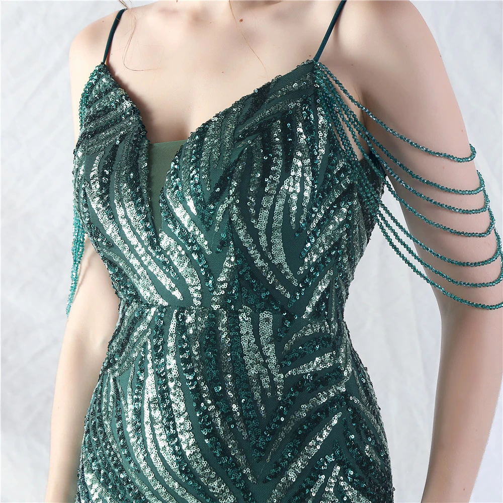 Layered Beads Spliced Mesh High-End Evening Dress
