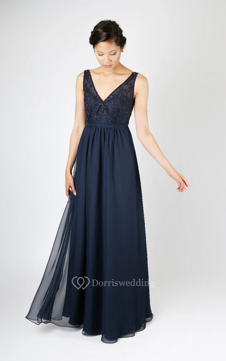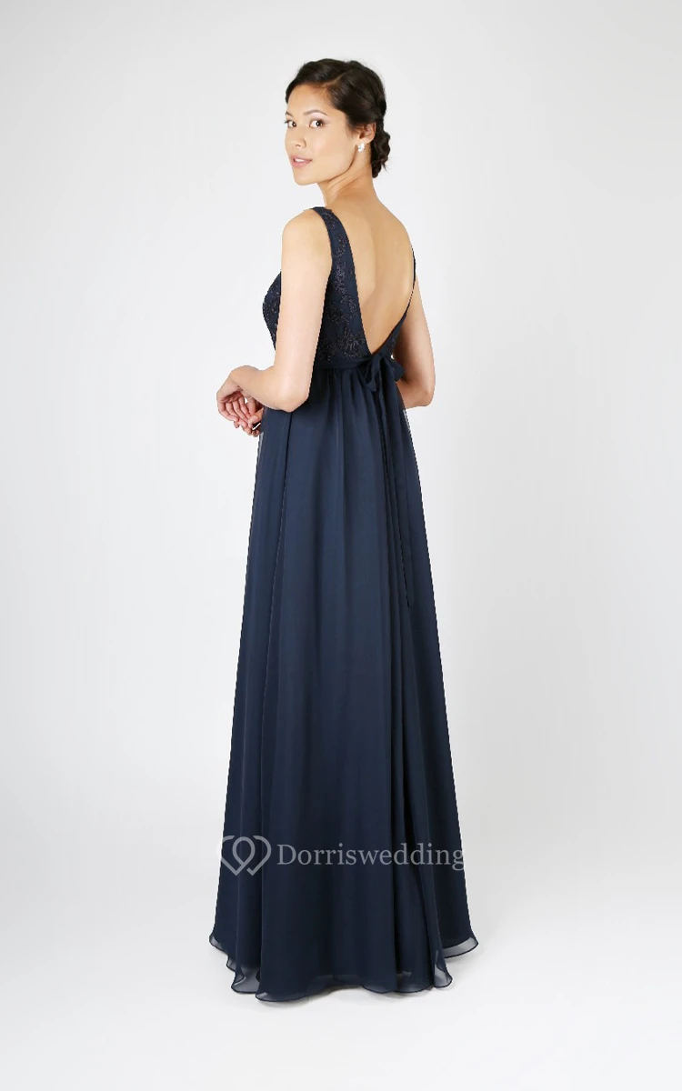 Layered Lace-Detailed A-Line Classical Gown With Deep-V Back