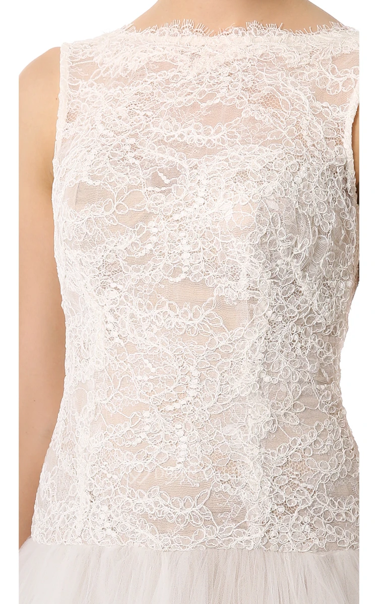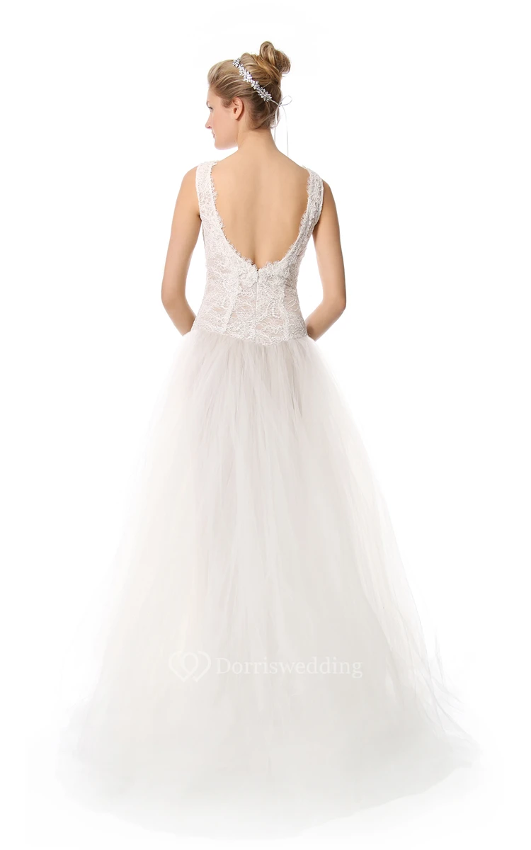 Long Bateau A-line Organza Dress With Low-V Back Style