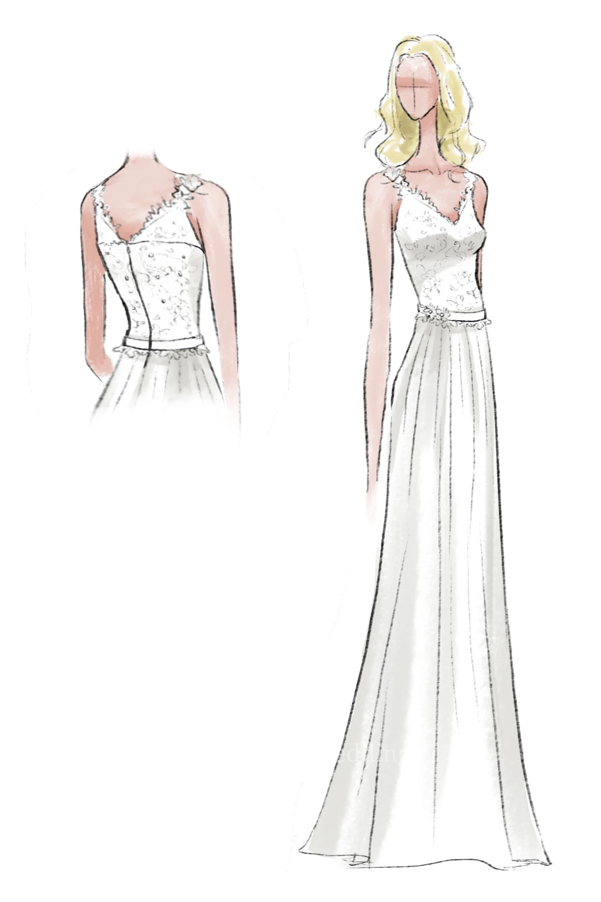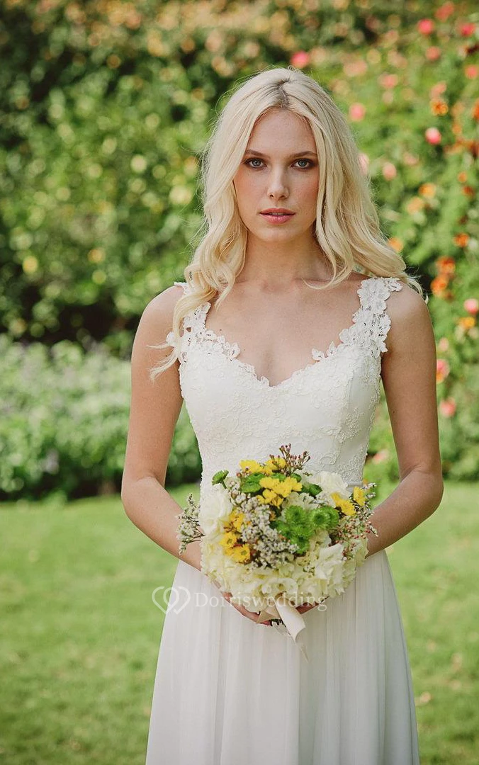 Long Chiffon Lace Weddig Vow Renewal Dress With Beading Flower