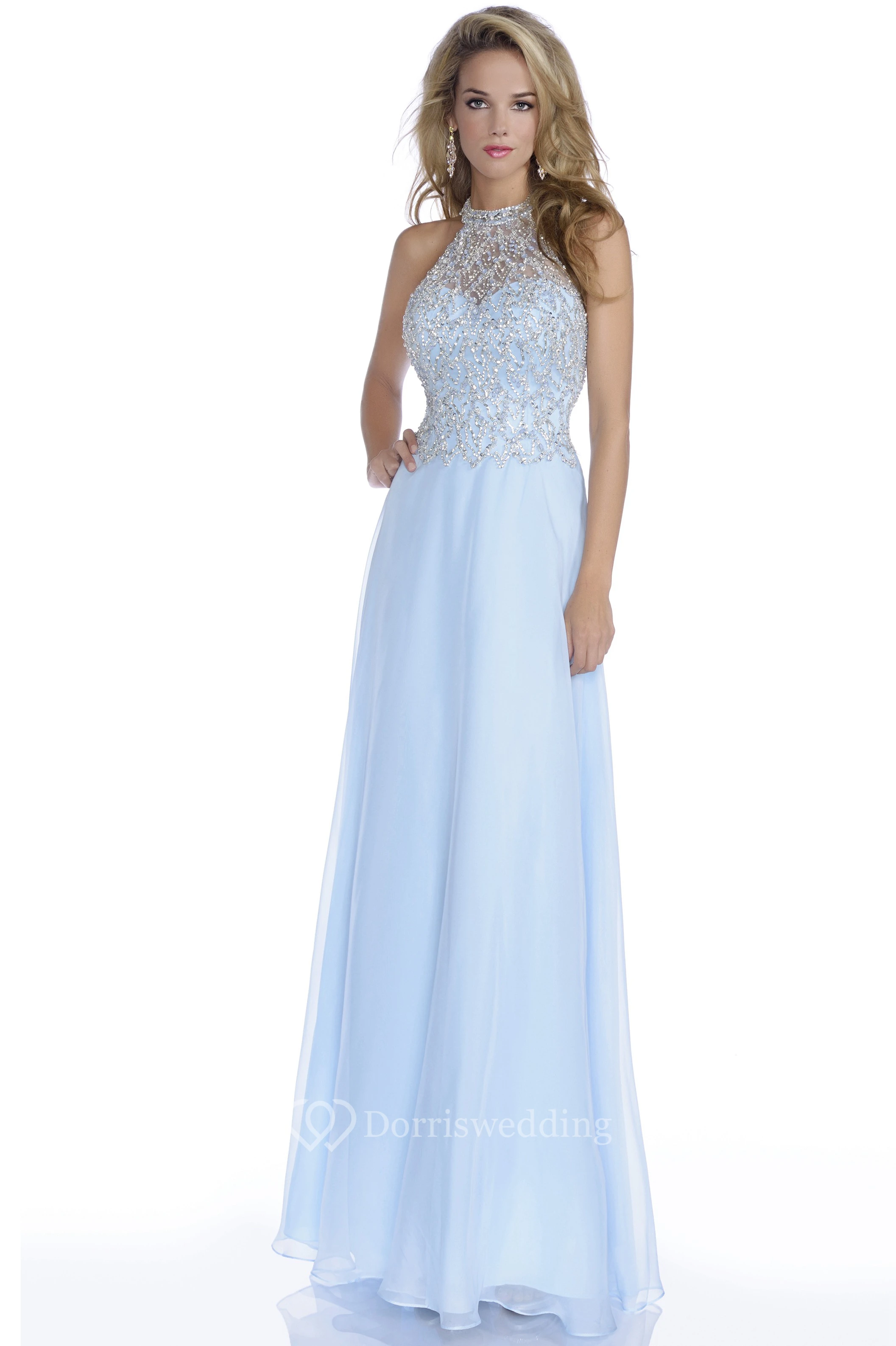 Long Chiffon Prom Dress With Jeweled Bodice And Open Back