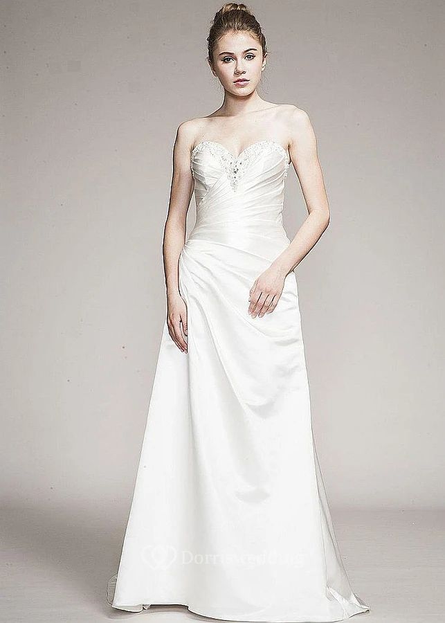 Long Draped Sweetheart Satin Wedding Dress With Beading